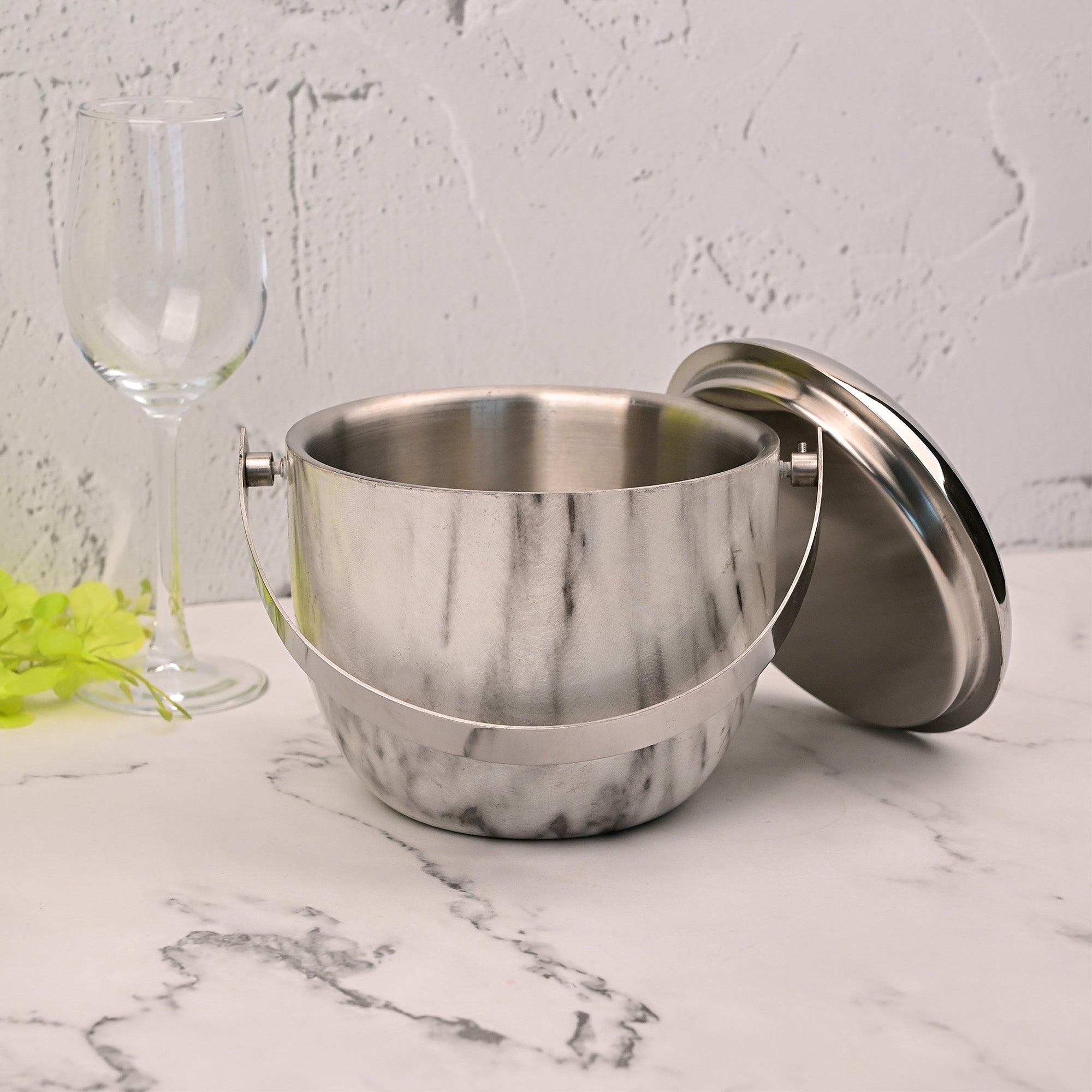 COD availableElevate your entertaining experience with our Elegant Steel Ice Bucket, a stunning silver metal bowl that seamlessly combines functionality and sophistication. Crafted with a sleek handle for effortless serving, this exquisite piece is perfect for chilling your finest wines or sparkling beverages, making it an essential addition to any luxurious gathering. Its polished finish reflects light beautifully, adding a touch of glamour to your table setting while ensuring your drinks remain perfectly chilled.