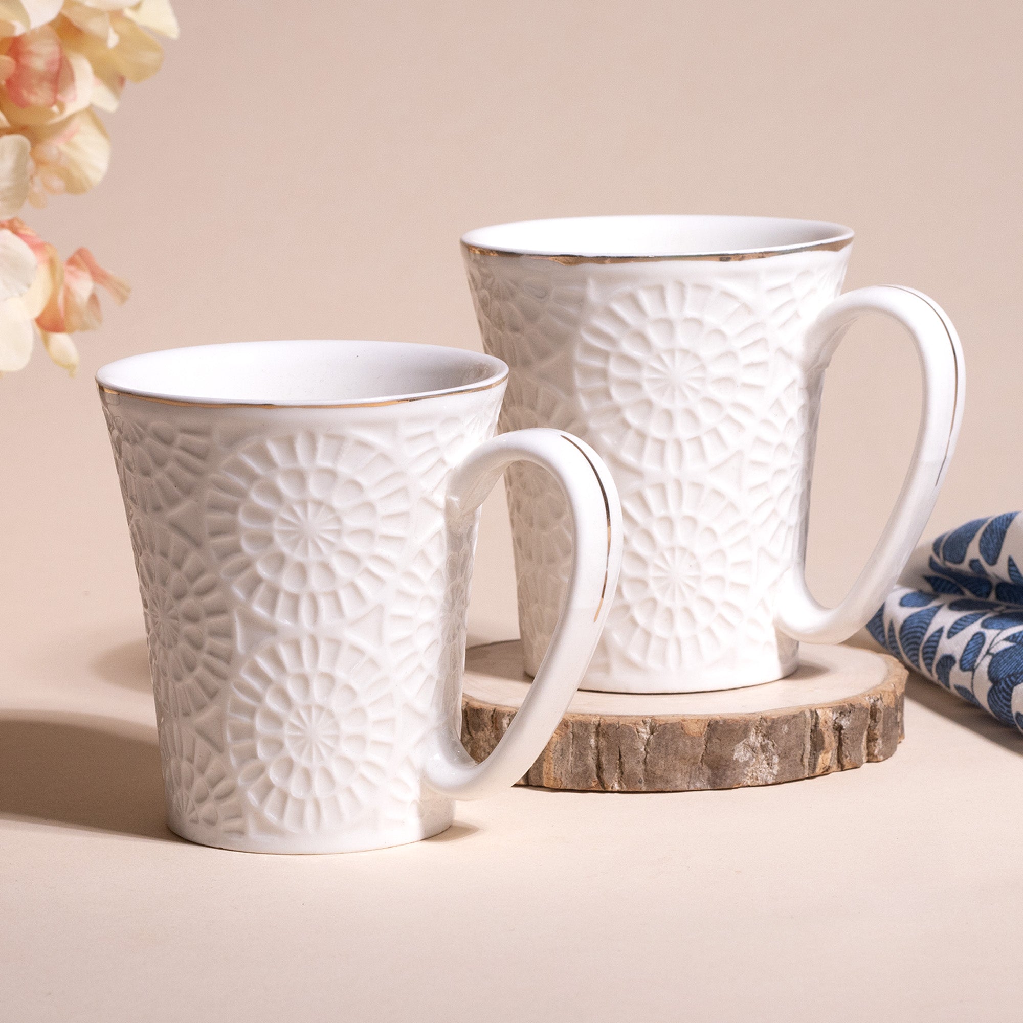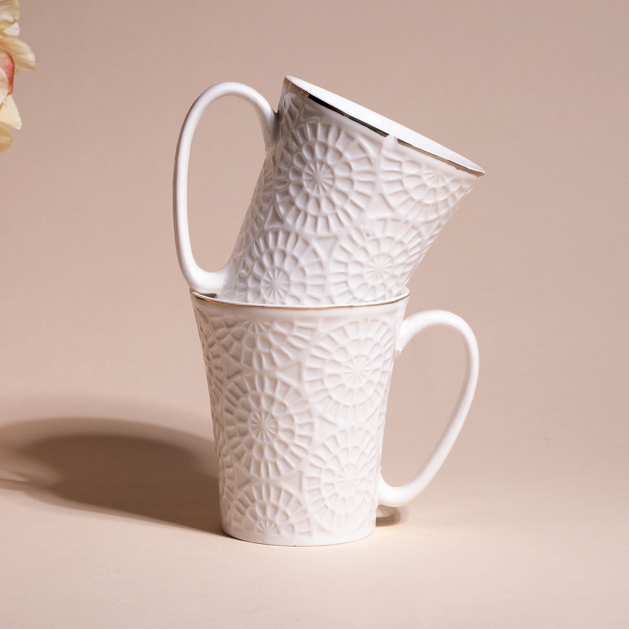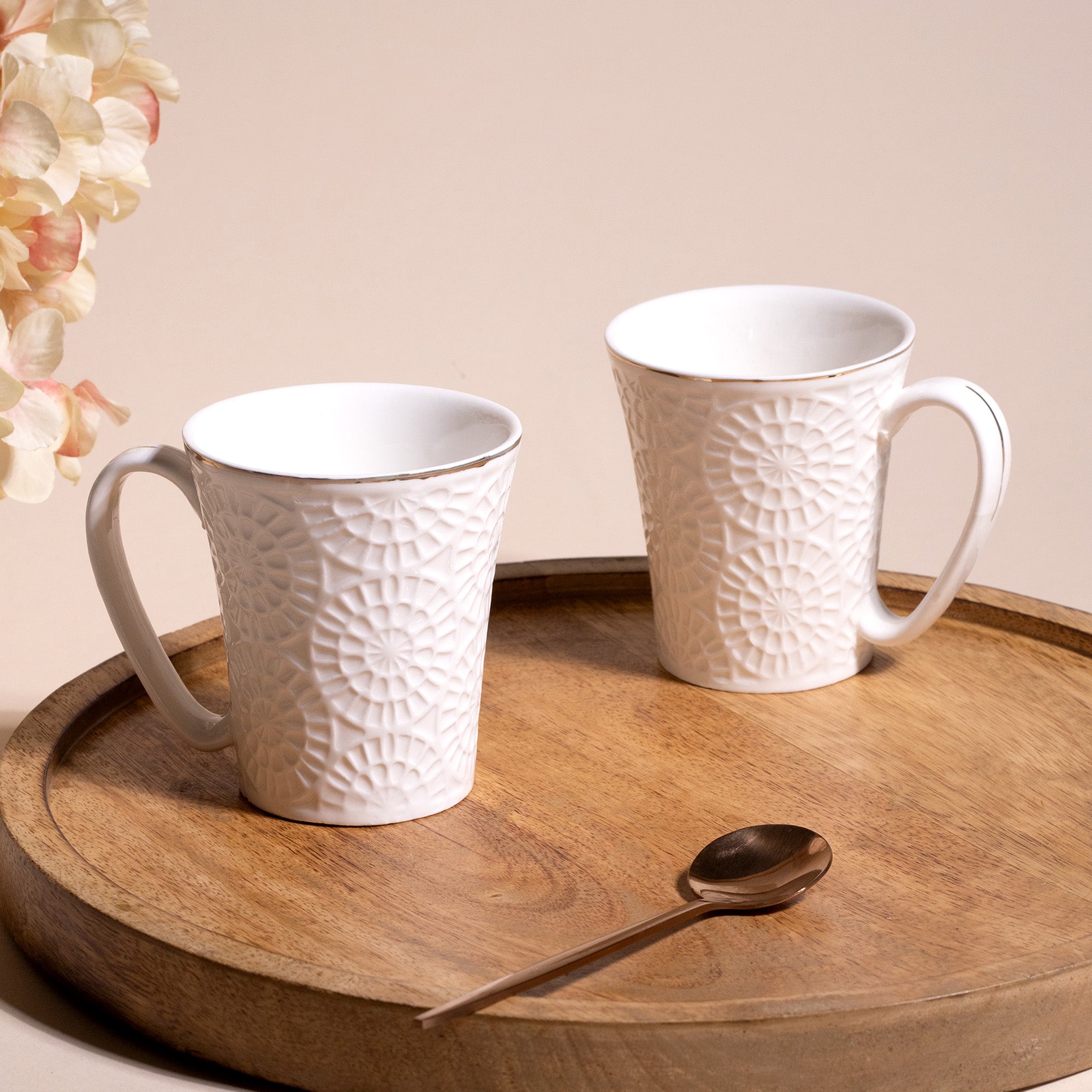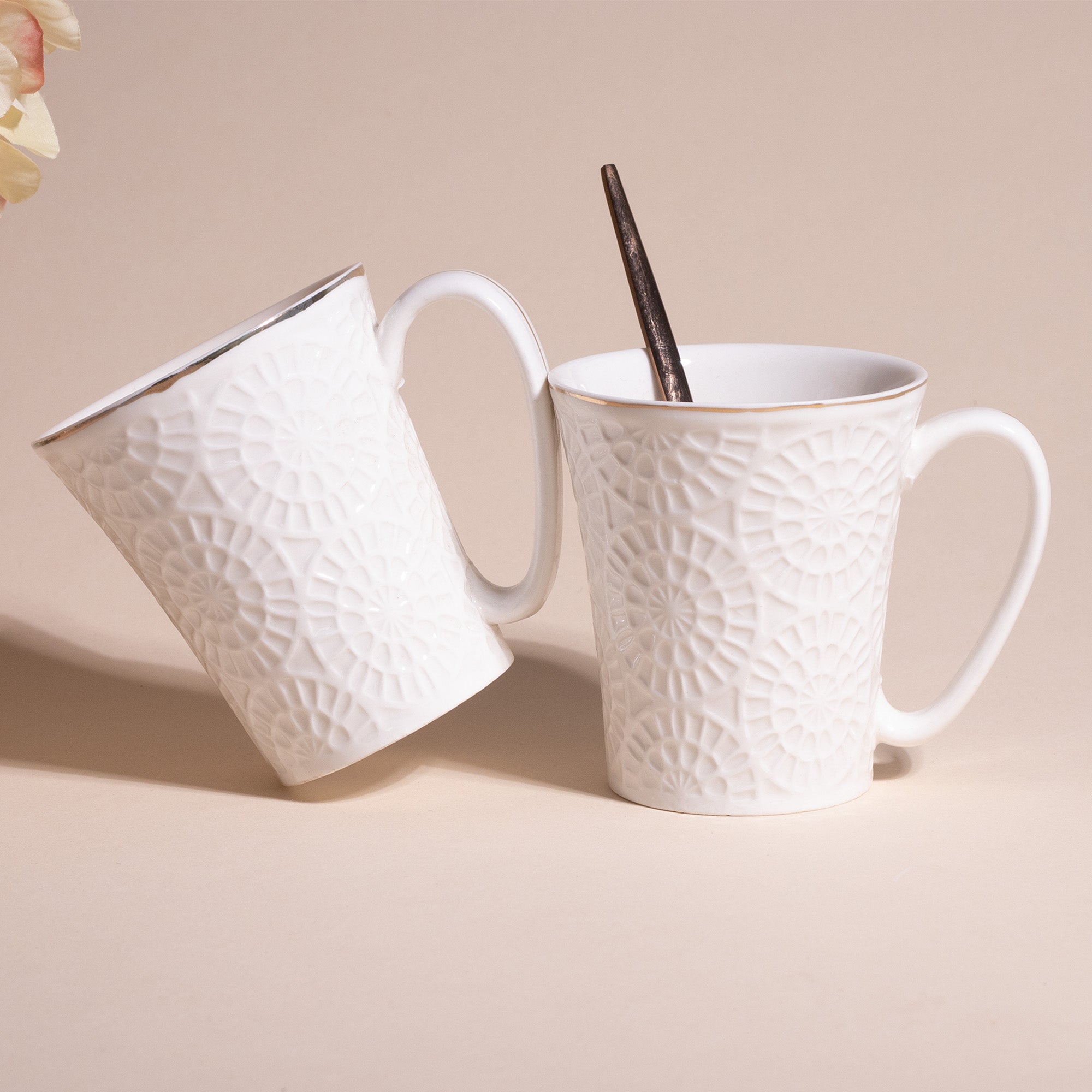 Embossed Pure White Tea Cups (Set of 2)