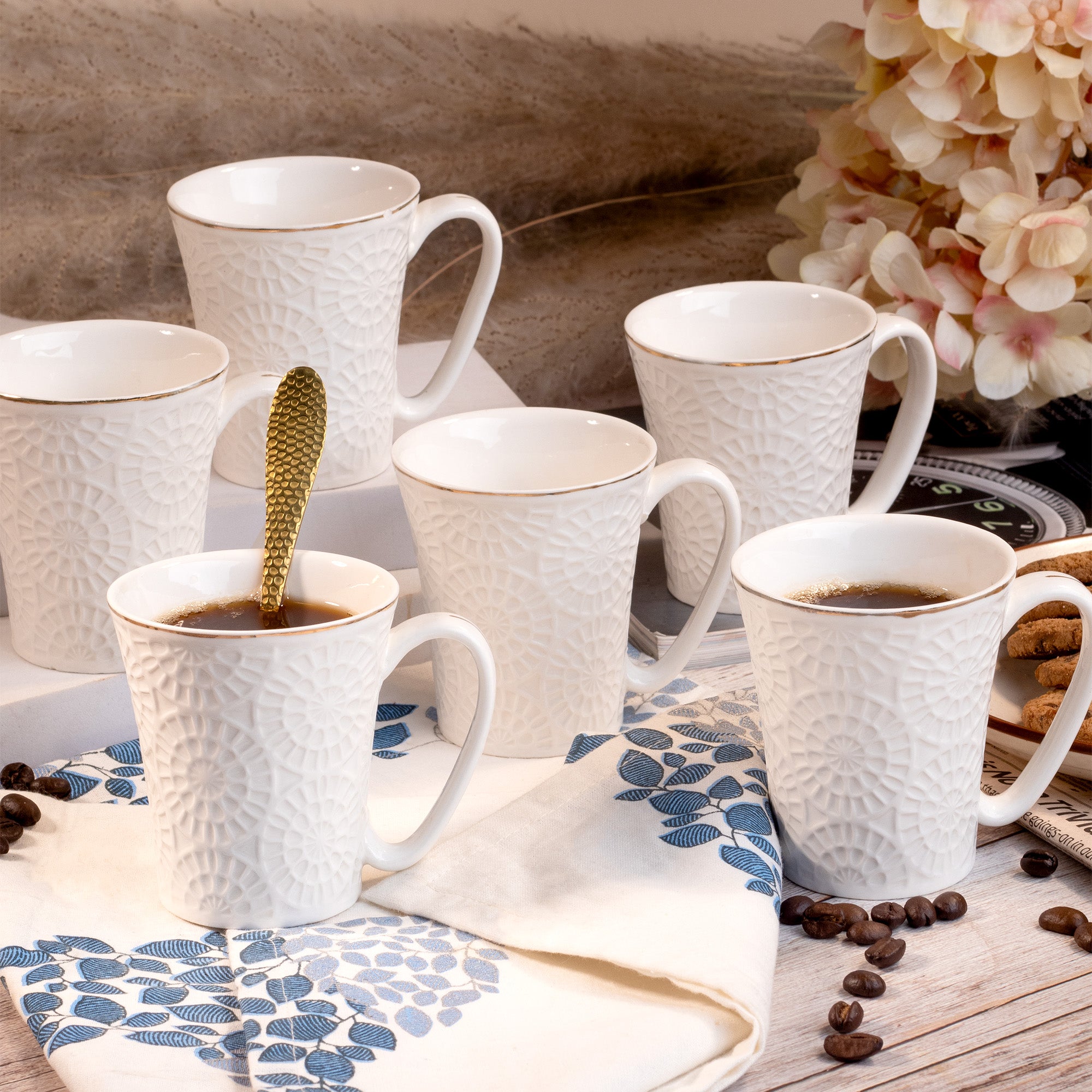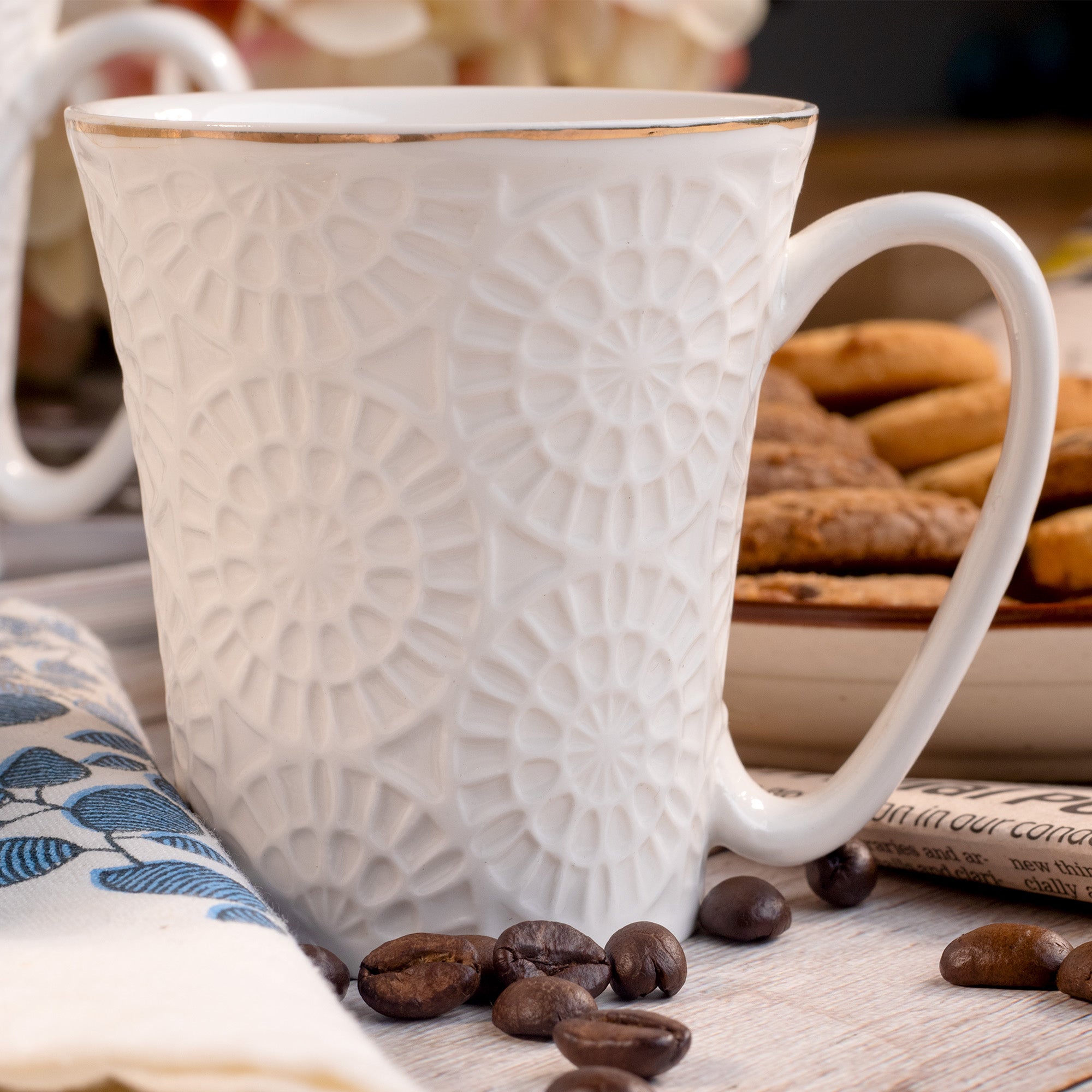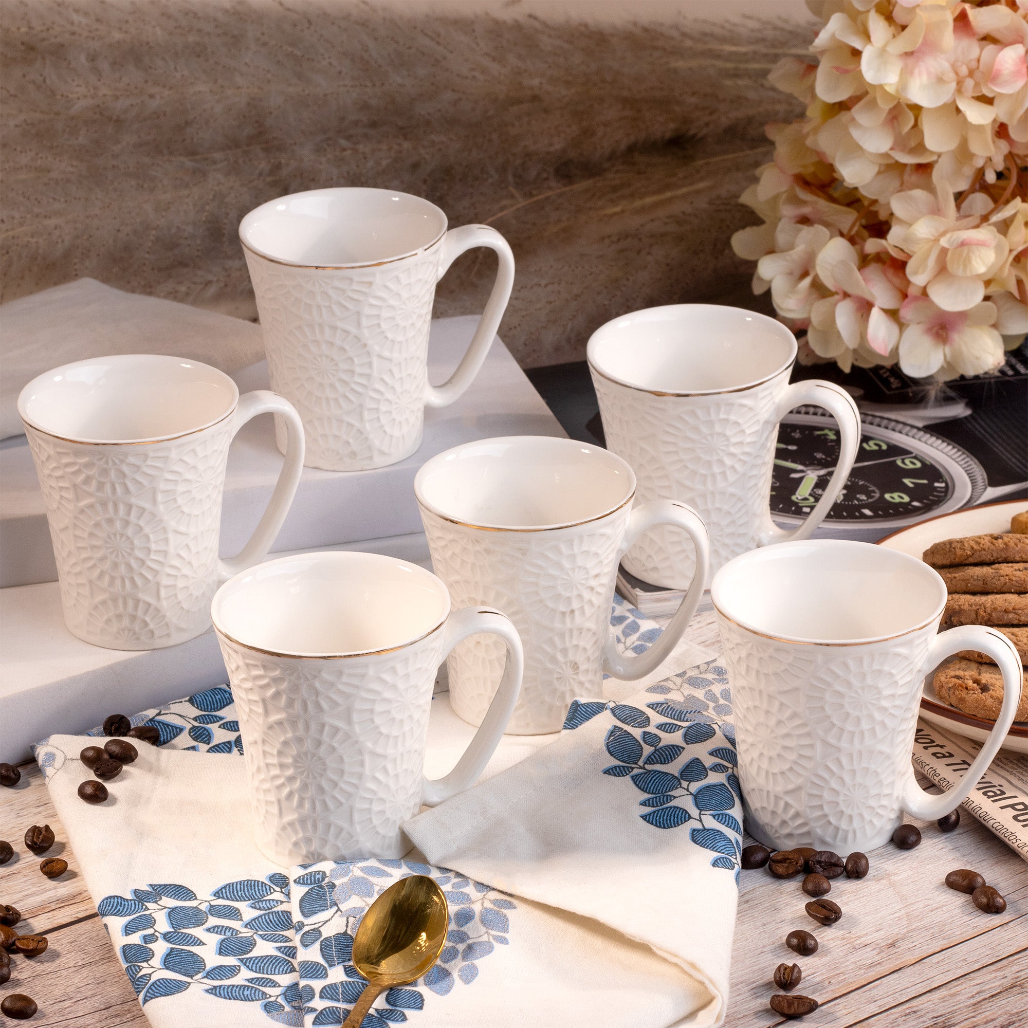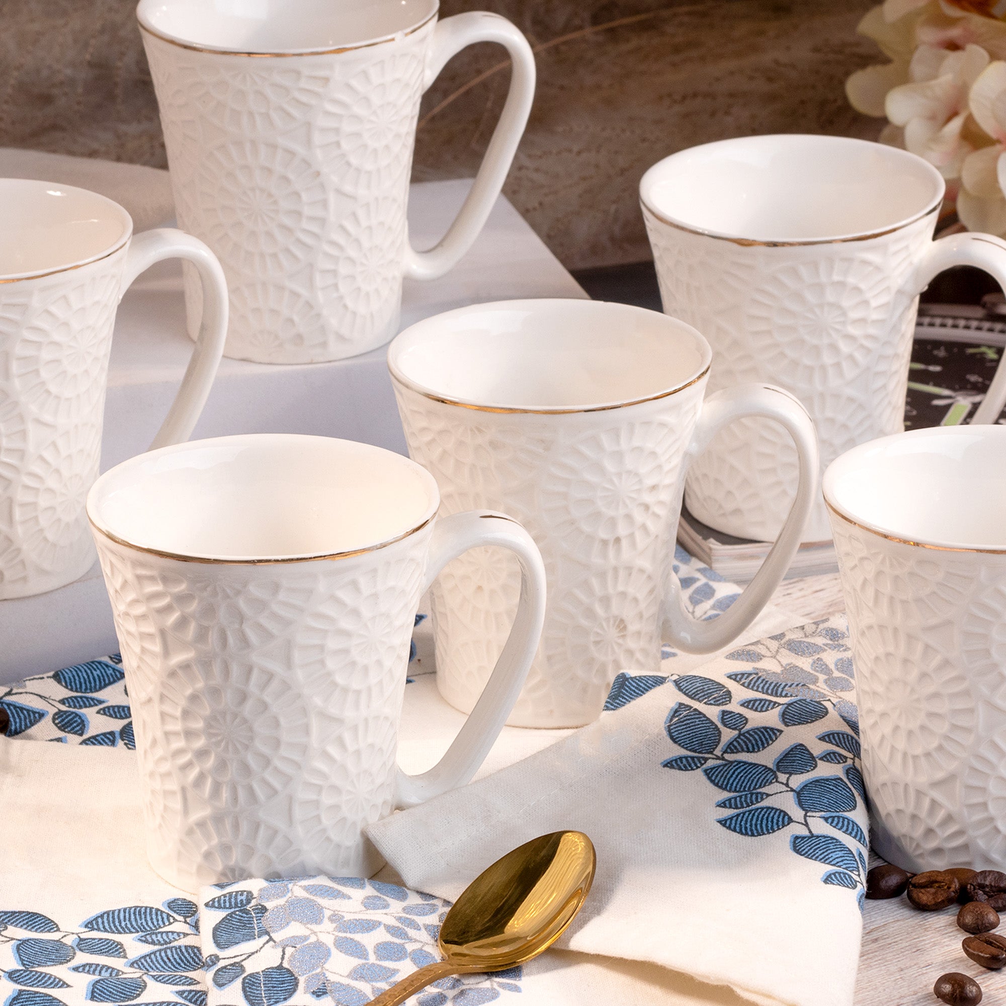 COD availableExperience the uniqueness dominating your tea nook as you pick this Embossed Tea Cup Set. Crafted with ceramic, you do not just pick a drinkware with high-quality and durability, but also make a responsible choice by picking a sustainable product. While the embossed patterns add uniqueness to the table, the golden rim brings back the nostalgia. Also, the handles of this cup are comfortable and strong, ensuring a spill-free tea time for you.