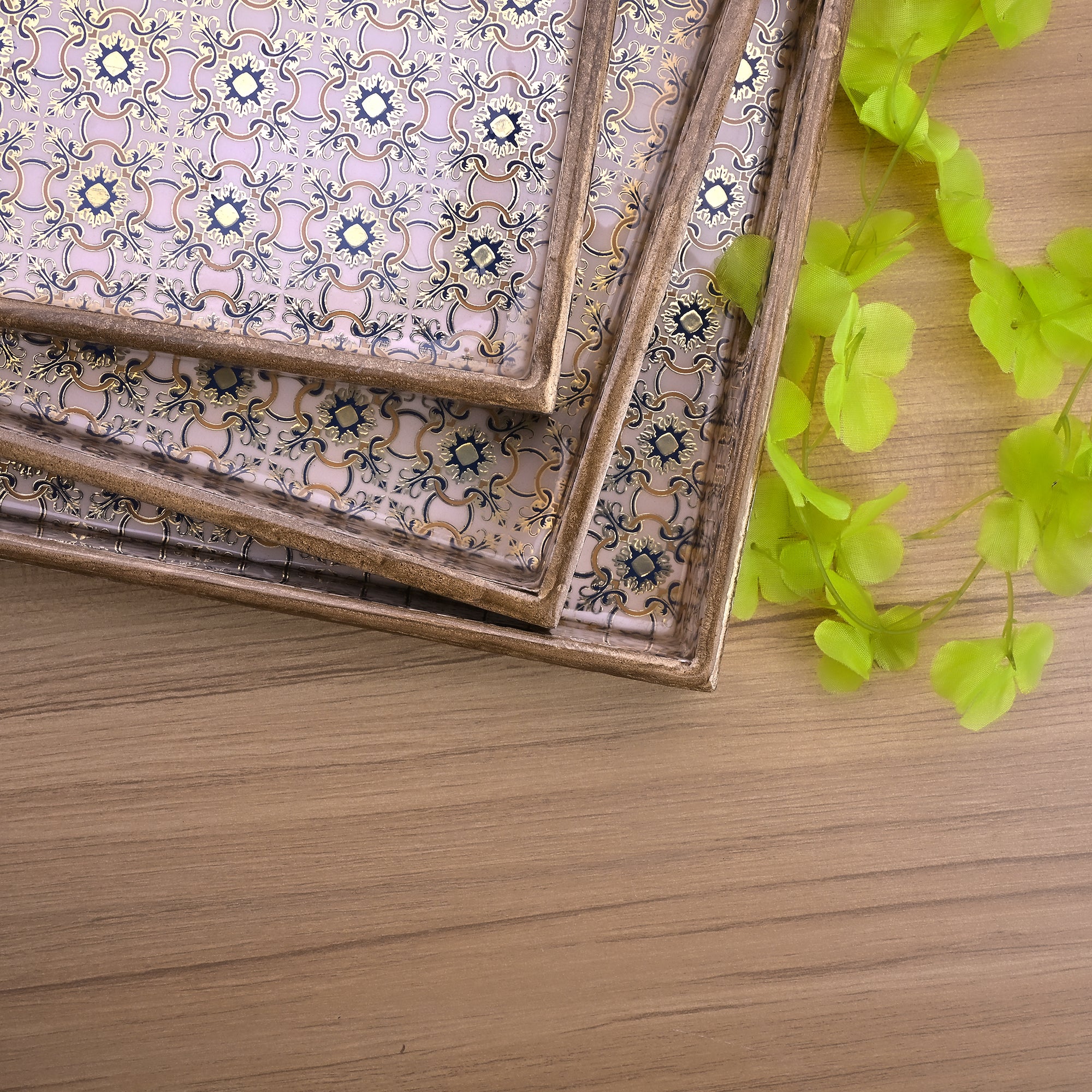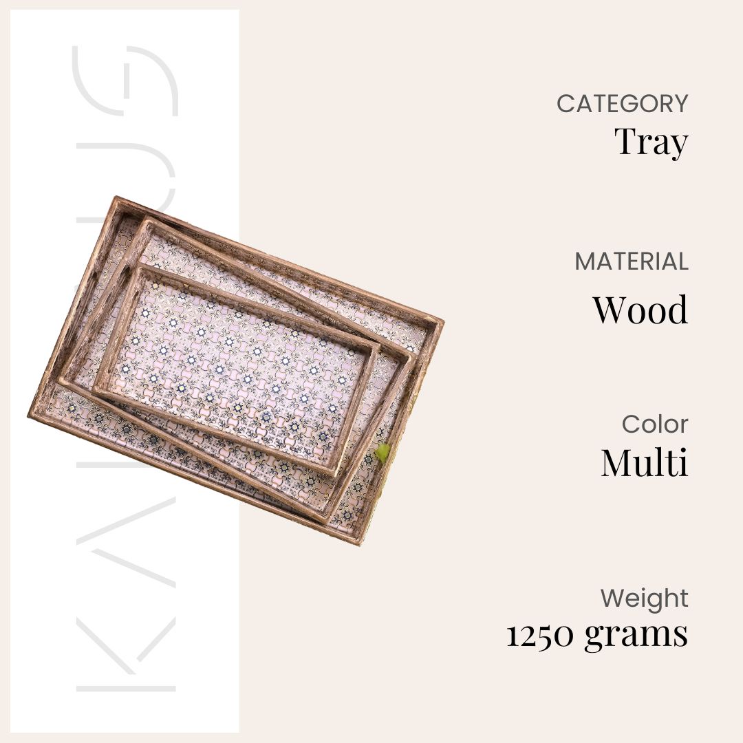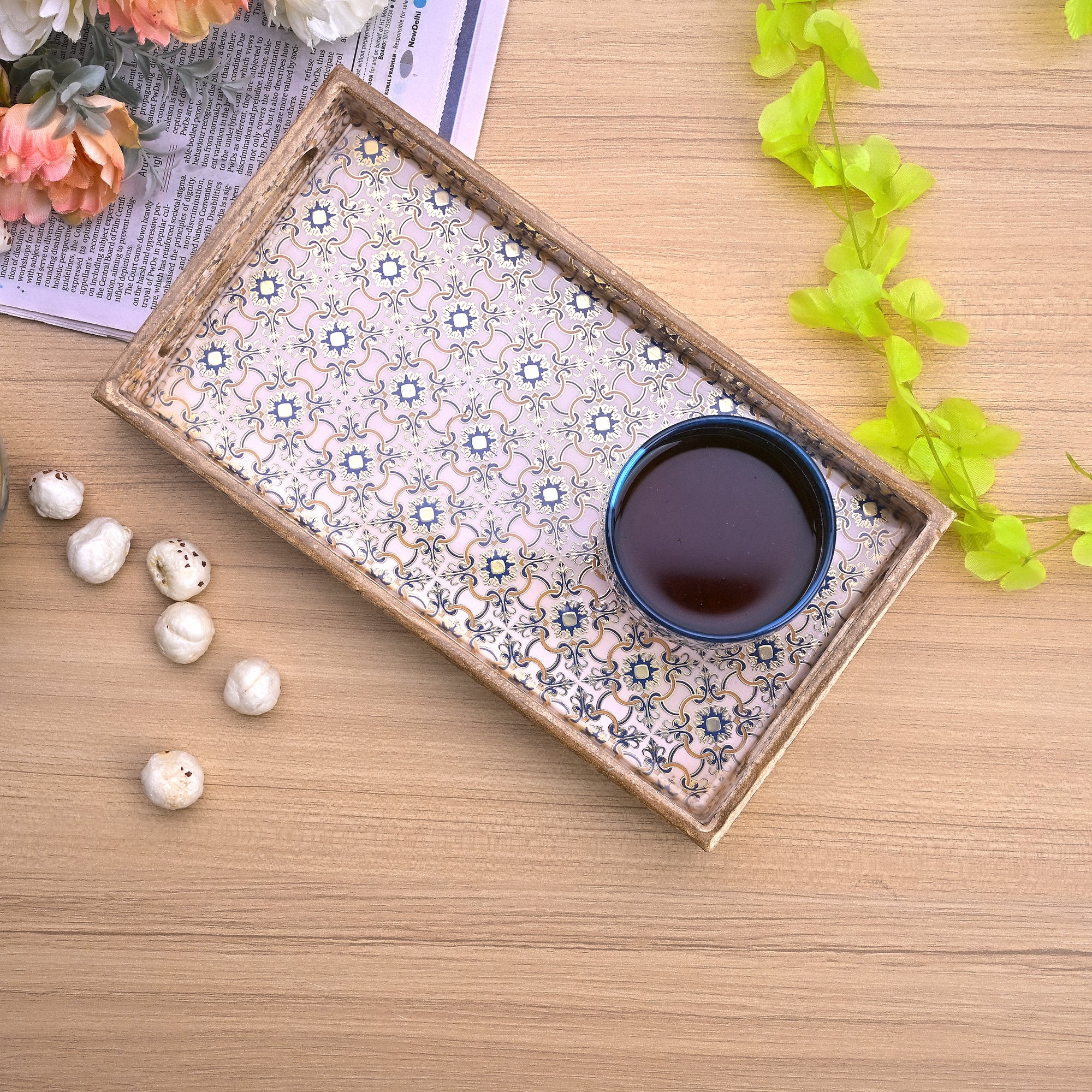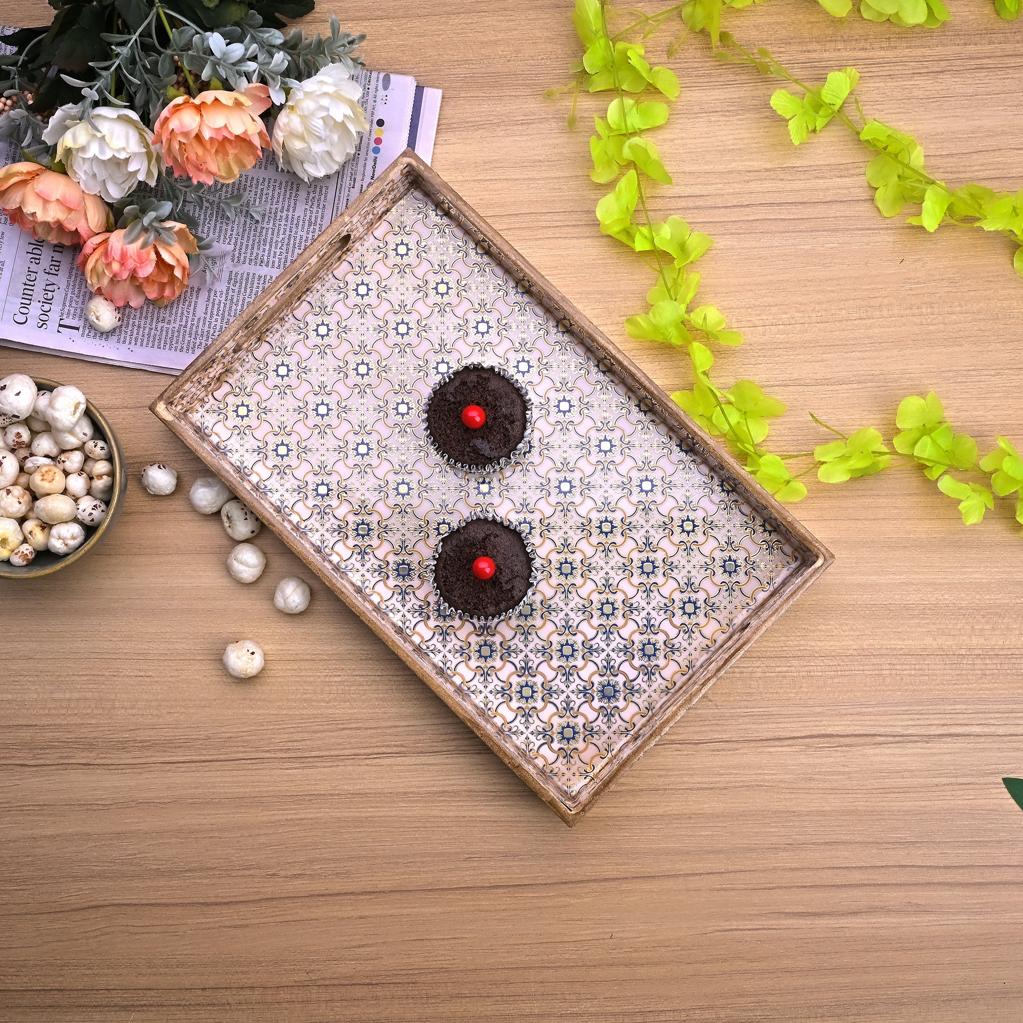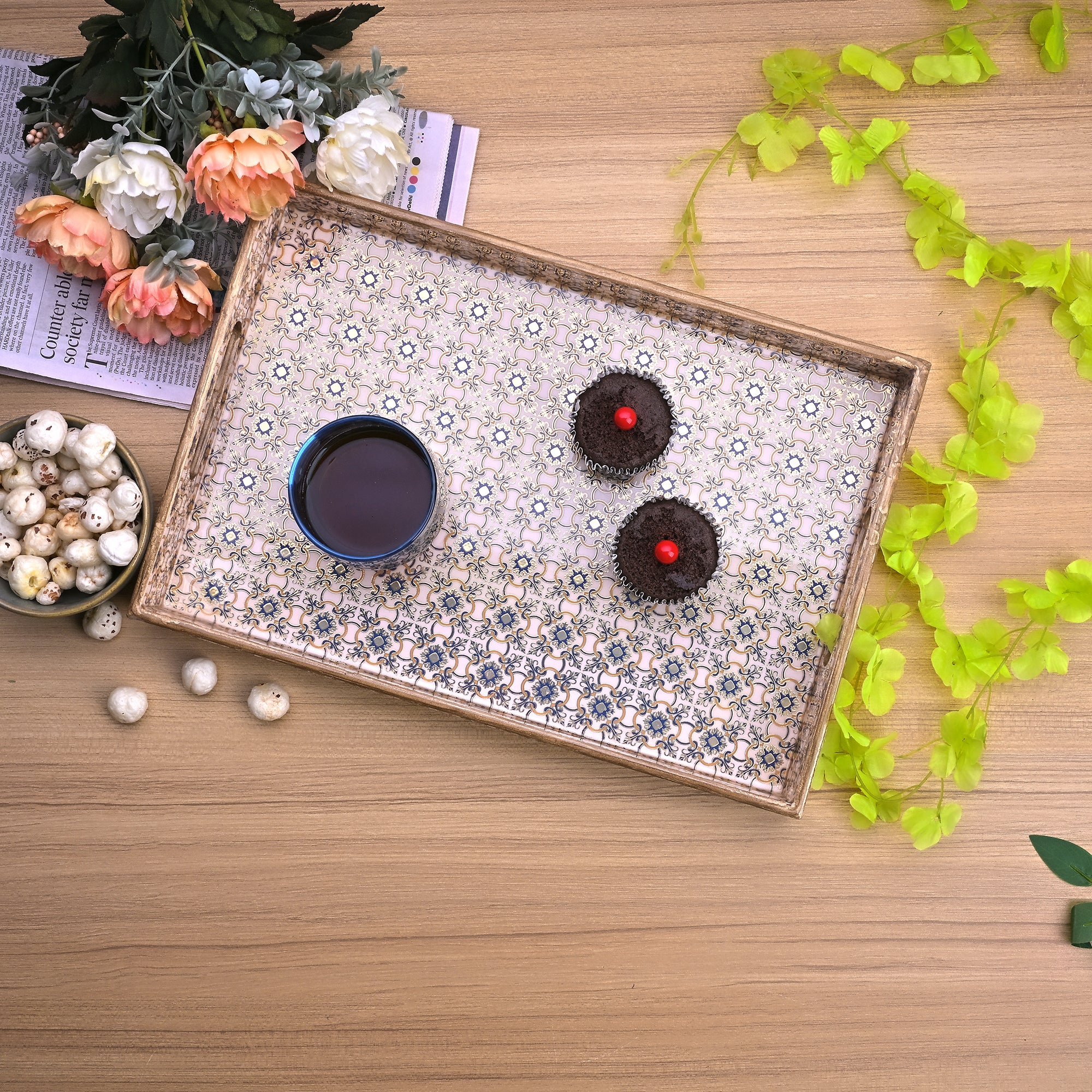 COD availableConvert your table into a creation of charm and character with this Ethnic Floral Serving Tray. This detailed pattern combined with the charming wood and gold accents creates not only a functional piece but also a stylish display piece. Whether you are serving guests or indulging in your lovely morning tea, this tray adds a lovely iconic presence to your serving. The tray comes in a variety of sizes and allows for flexible serving options for your lovely guests or special occasions.