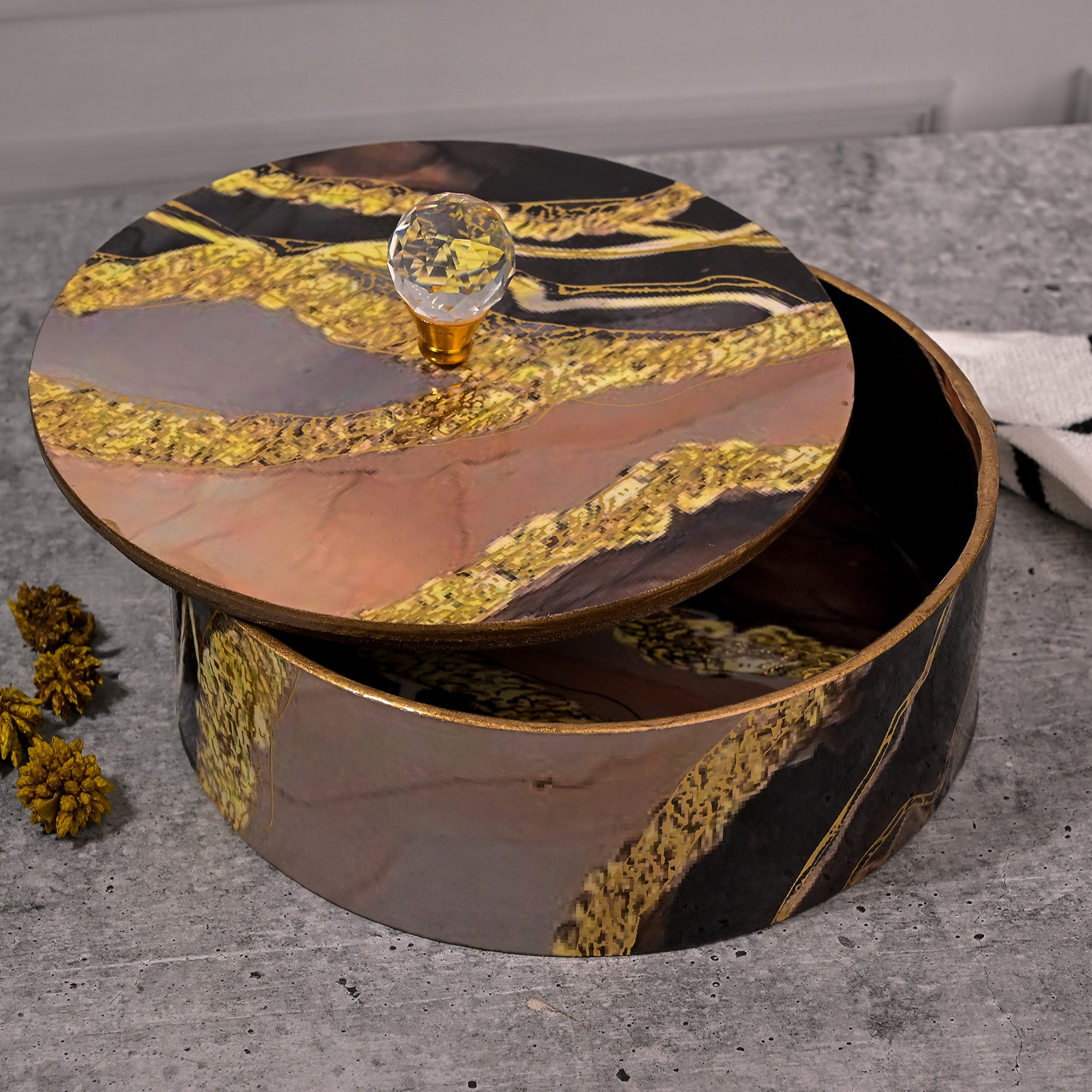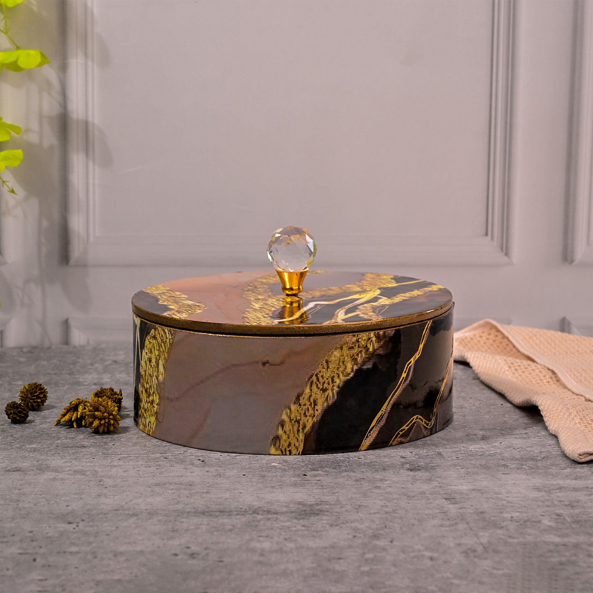 COD availableThis Exquisite Black and Golden Storage Box features a stunning diamond accent on the lid, making it a luxurious addition to any decor. Crafted with high-quality materials, it offers both style and functionality, providing ample space for organizing your treasured items. The sophisticated design ensures it complements various interior styles while serving as a striking centerpiece in any room.
