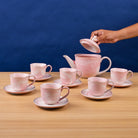 COD availableStraight inspired by your cutesy moodboard, this Faded Pink Tea Kettle Set is designed to elevate your teatime experience. The adorable set has a smooth marble-like finish with soothing pink hues to bring a luxurious touch to your days and dawns. The kettle comes with a comfortable handle and lid to preserve the warmth and aromas. Compatible with both daily use and special occasions, this tea cup set is a perfect purchase.