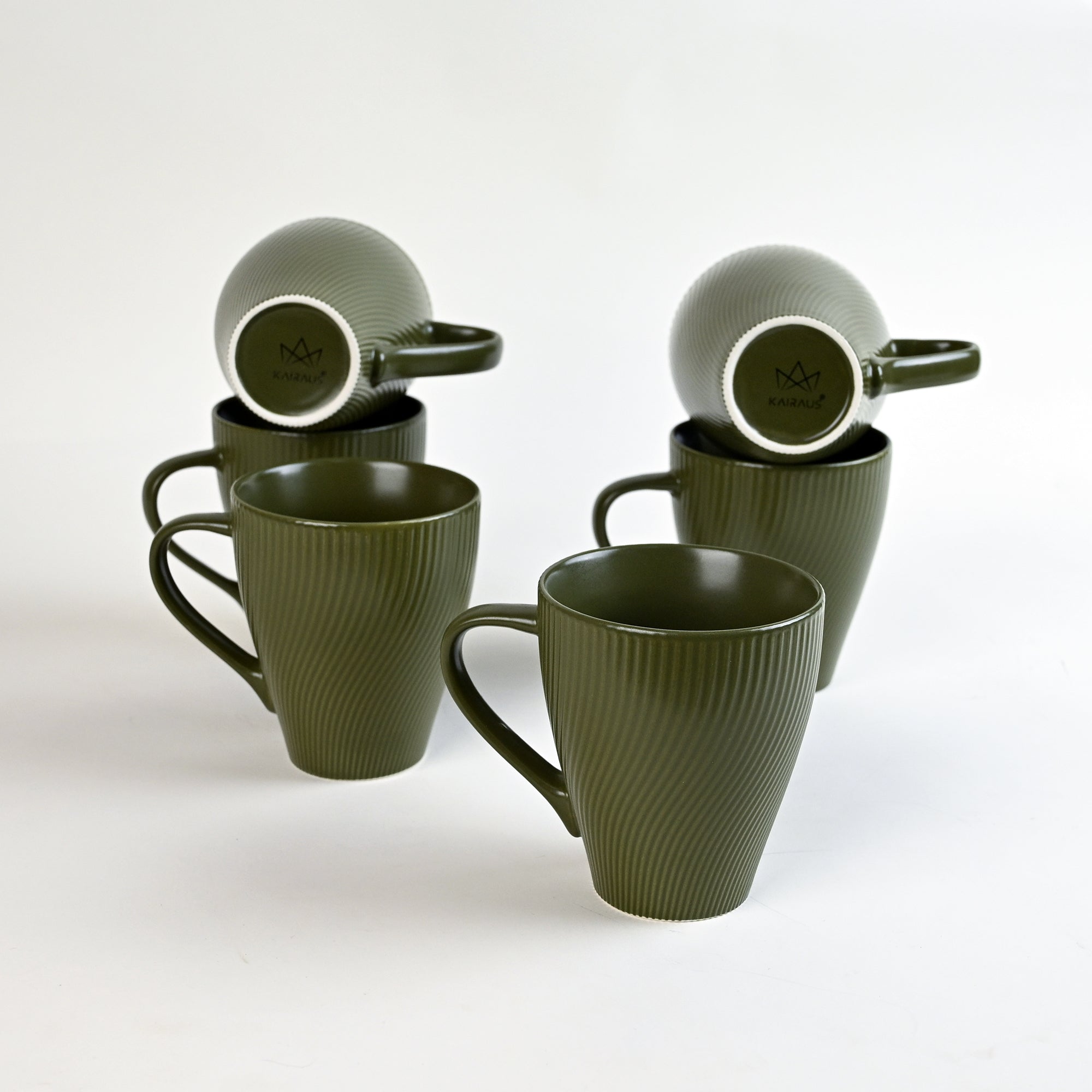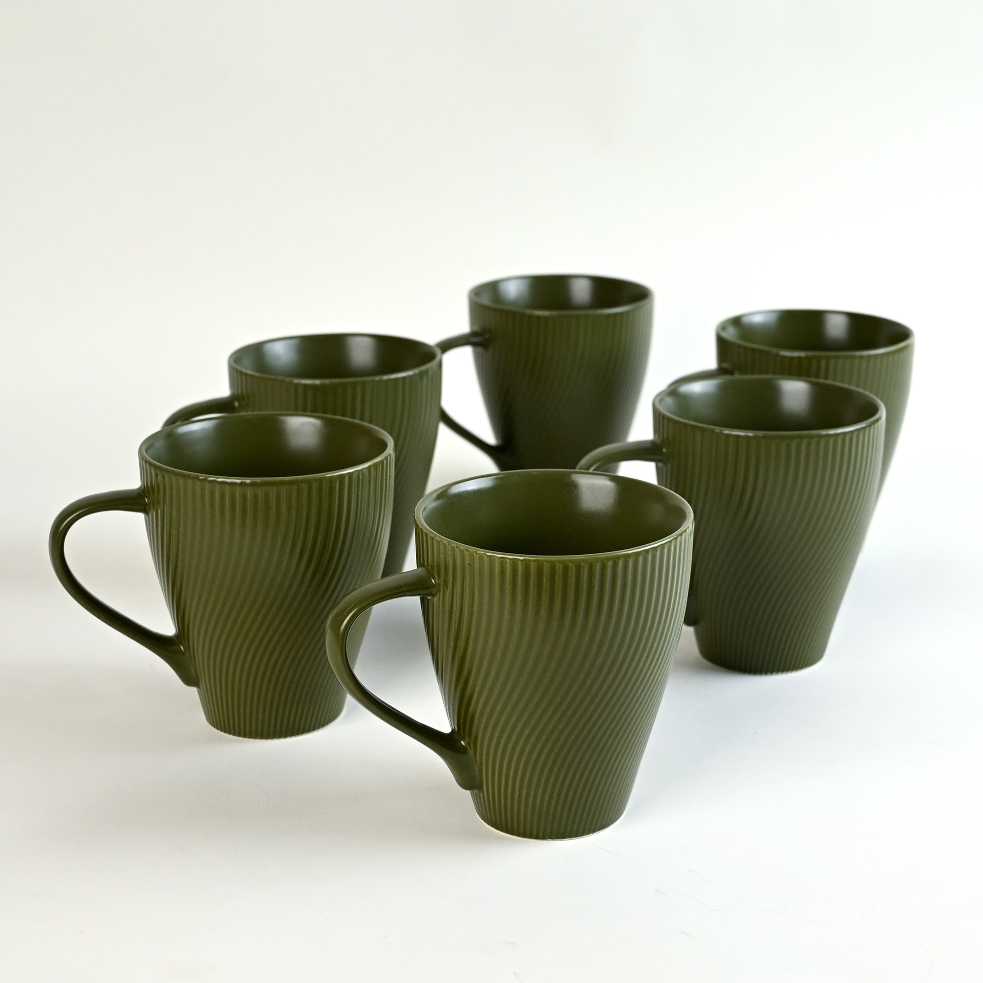 Fern Green Unique New Bone China Coffee Mug (Set of 6)