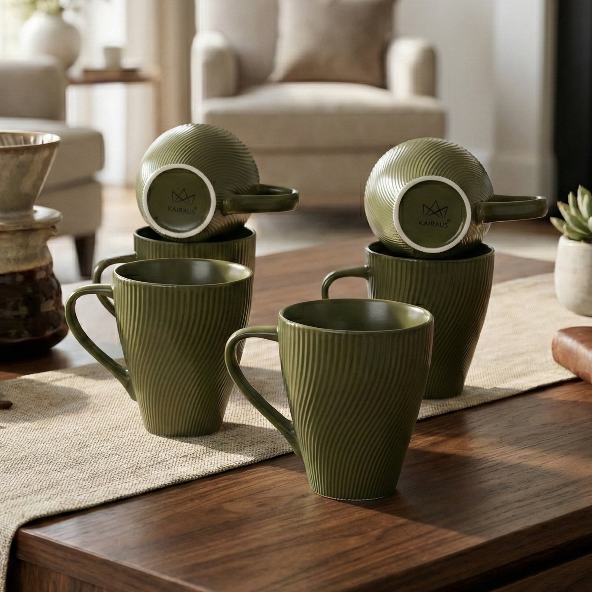 COD availableFeels like a tickling leaf, our Fern Green Unique New Bone China Coffee Mug Set is a nature's peck to your coffee nook. It is made from new bone china, which means without bone-ash, making it a completely sustainable luxury statement for your coffee moments. Beyond its look, it serves durability and strength just like traditional bone china. As you hold this perfectly dimensioned coffee mug, your palm would feel the artisanal wonders through its vertically embossed strips. A perfect addition for your coffee nook!