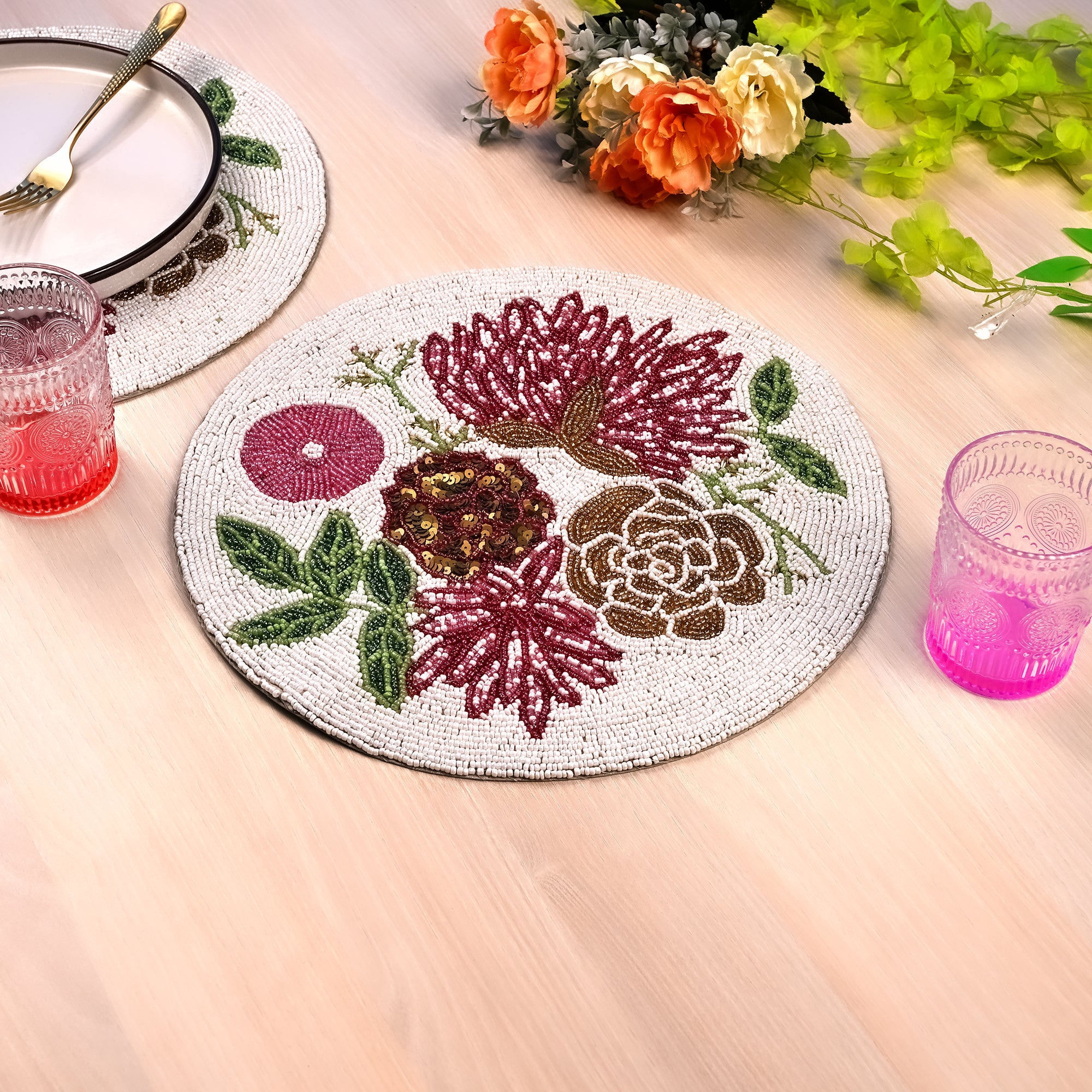COD availableTransform your dining space with the enchanting Garden of Roses Floral Fantasy Beaded Mat. Adorned with delicate white beads and a charming floral design, this mat adds a touch of elegance and whimsy to any table setting. Perfect for both casual meals and special occasions, it not only protects your surfaces but also serves as a stunning centerpiece that sparks conversation. This mat reflects artisanal quality and attention to detail, making it a beautiful addition to your home décor. Elevate your dining experience with this exquisite blend of style and sophistication!