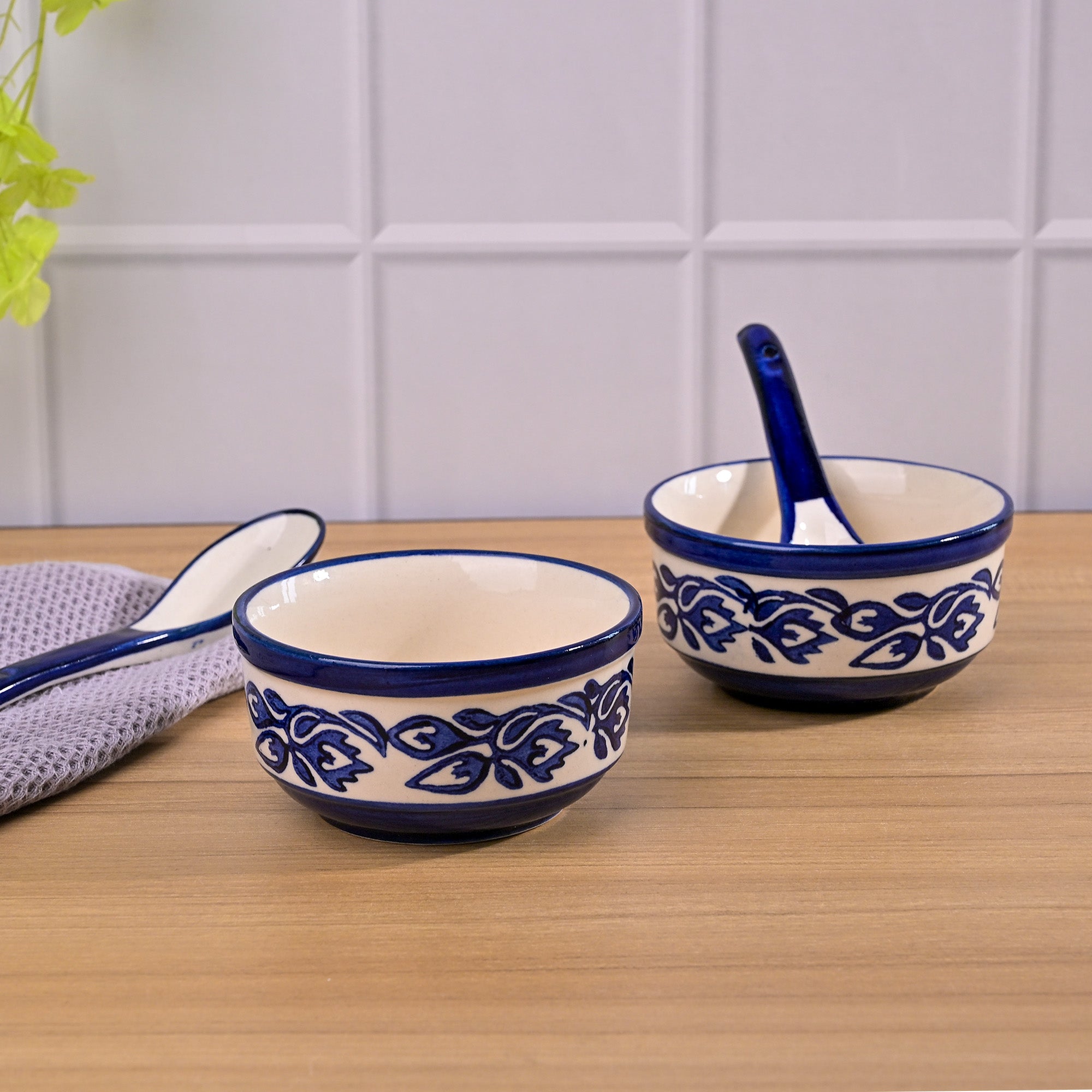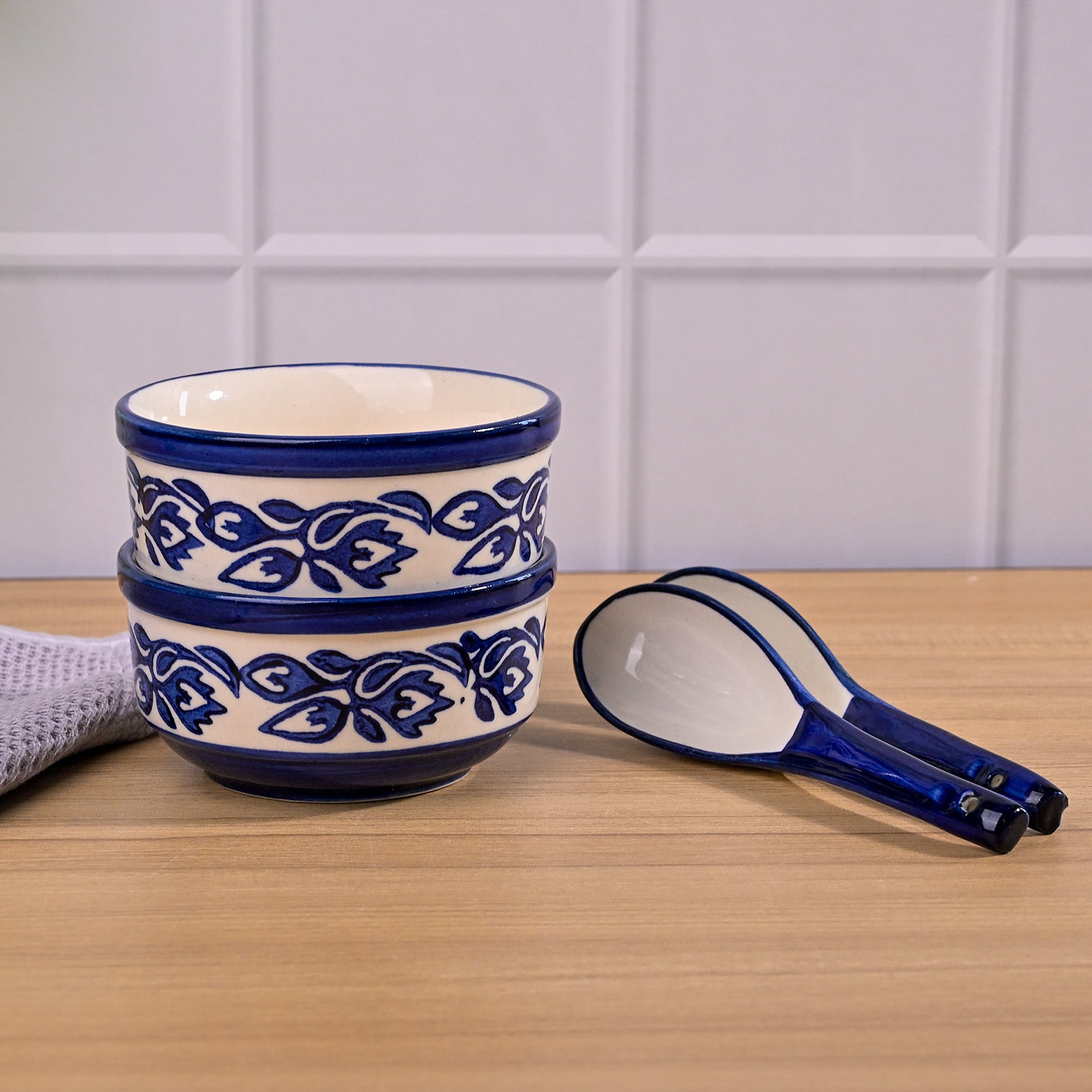 COD availableYour simple table deserves a vibrant touch that transforms the entire dining space. Kairaus brings this beautifully designed Floral Printed Porcelain Bowl set to do just that. With its glossy finish and hand-printed blue and white flower design, this bowl set is truly unforgettable at first glimpse. Made from porcelain, it offers both durability and a long-lasting shine. The best part? It comes with matching spoons making it even more versatile. And it's not just limited to soup- you can use these bowls for fruits, snacks, sweets or whatever you like.
