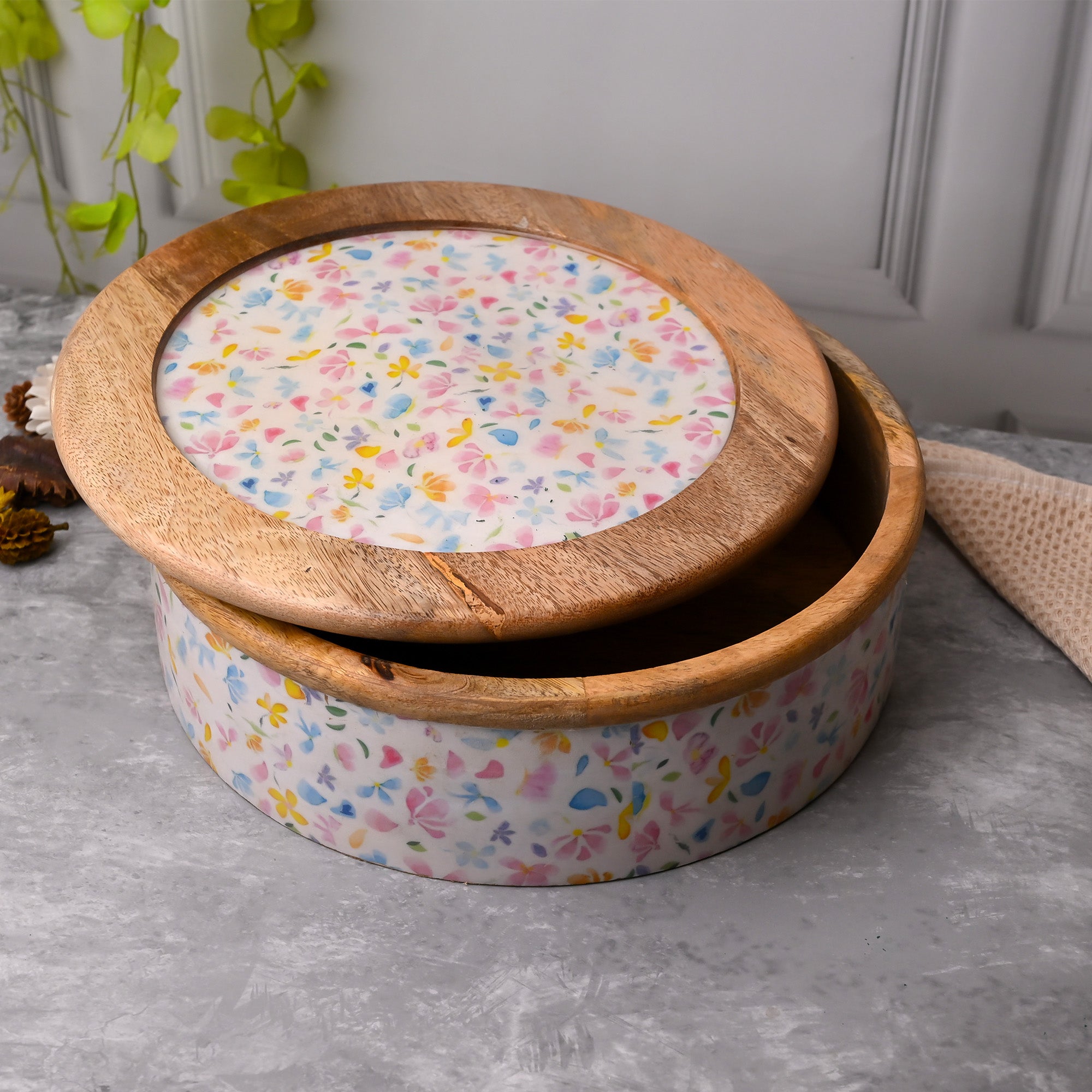 COD availableFall in love with an exquisite wooden casserole made with premium quality and a stylish silhouette. Our Floral Wooden Exquisite Casserole is a perfect storage accent for your buttery tortillas and fluffy puris. Made with premium quality wood and lacquer touch, this casserole is strong, durable, and extremely stylish, uplifting your culinary look. The patterned layer over the body works exactly like a cherry on the cake, minimal yet effective. Perfect for your culinary storage.