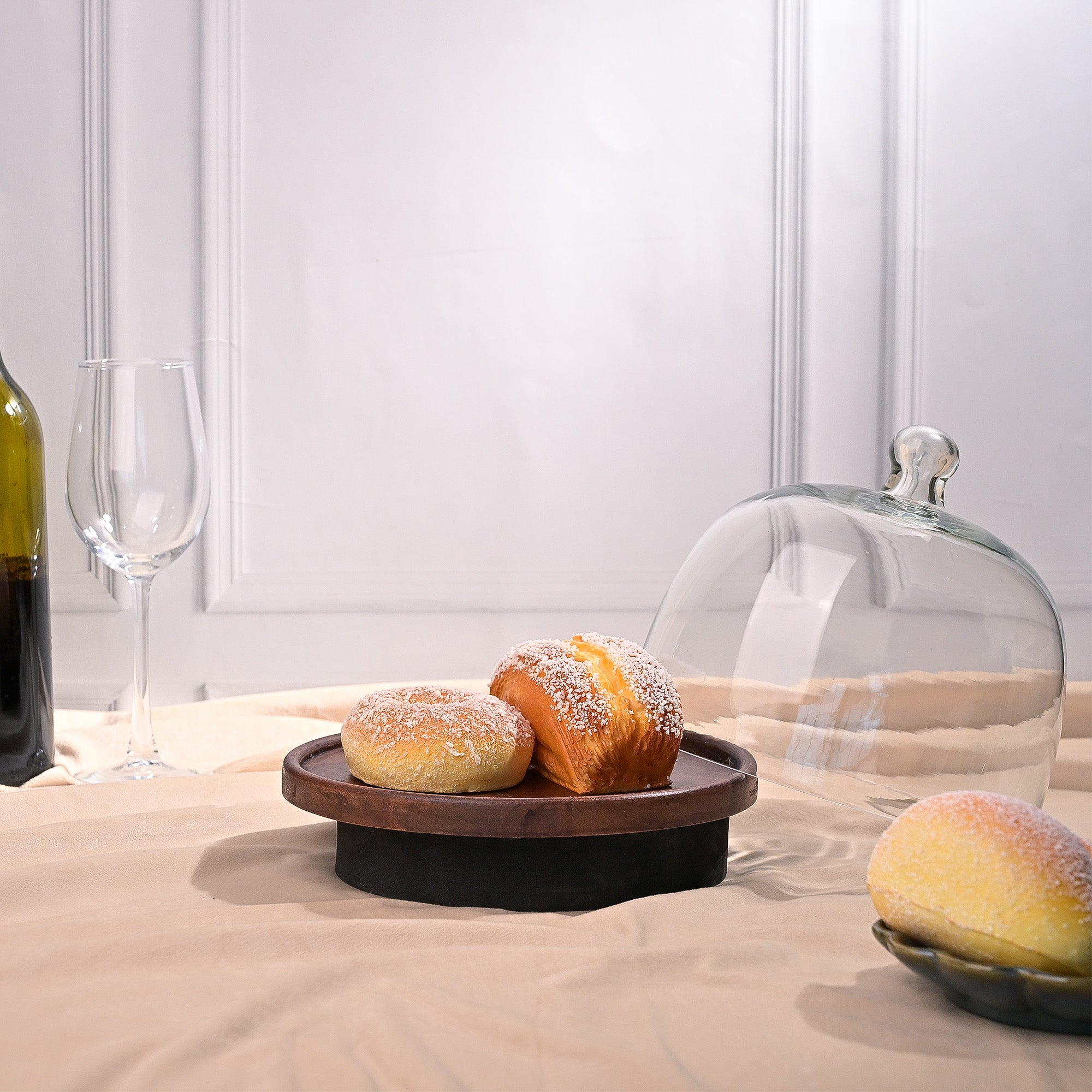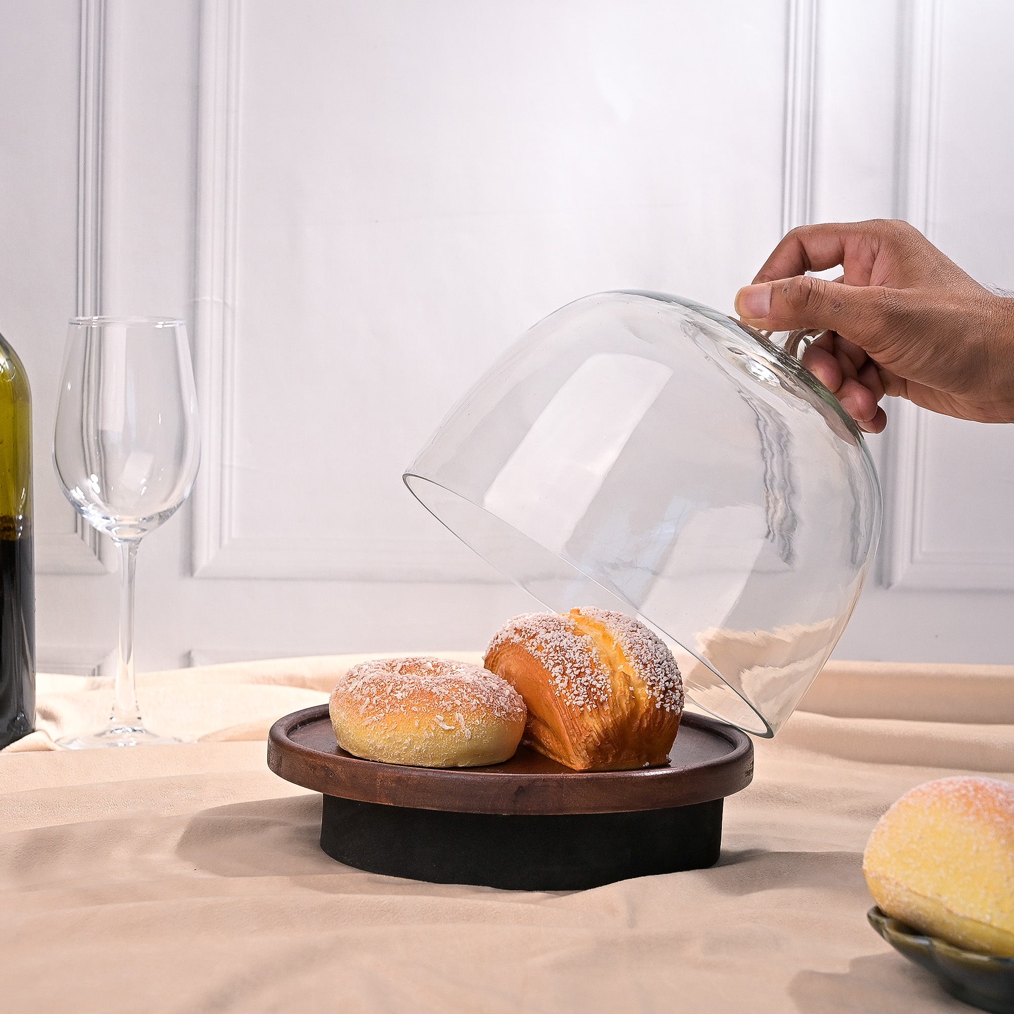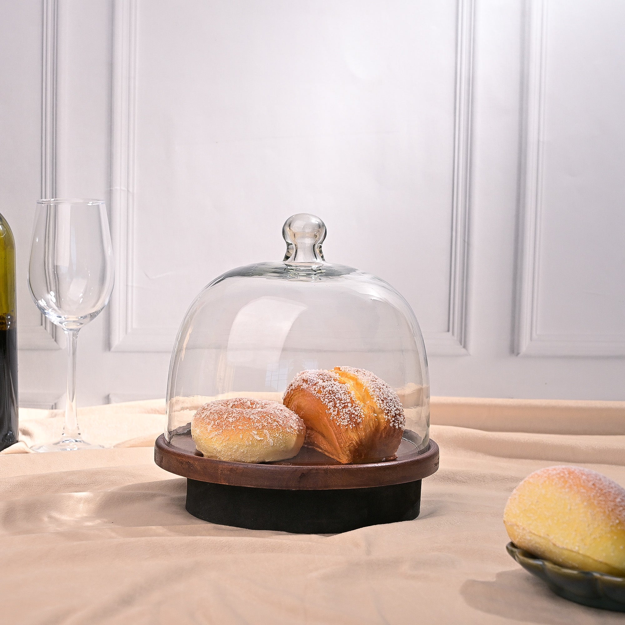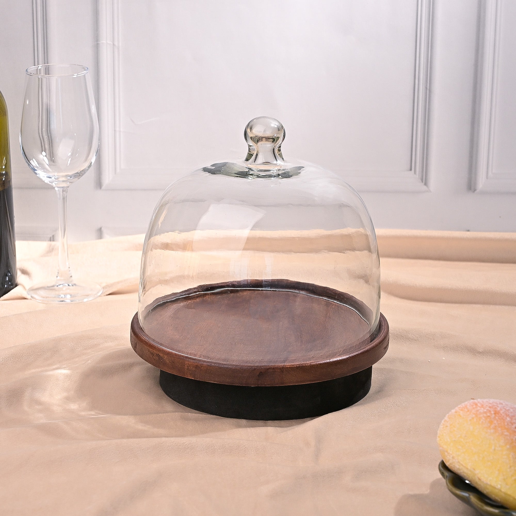 Glass Cloche with Wooden Base (21x21 cm)