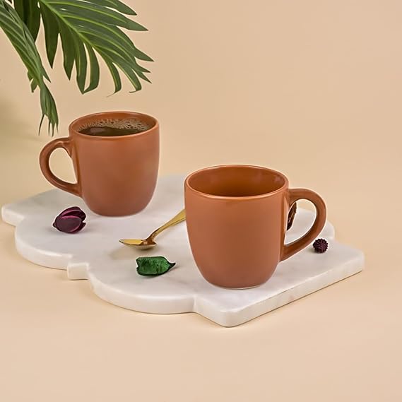Glossy Ash Brown Ceramic Tea Cup (Set of 2)