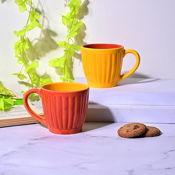 Glossy Ribbed Red and Yellow Tea Cup (Set of 2)