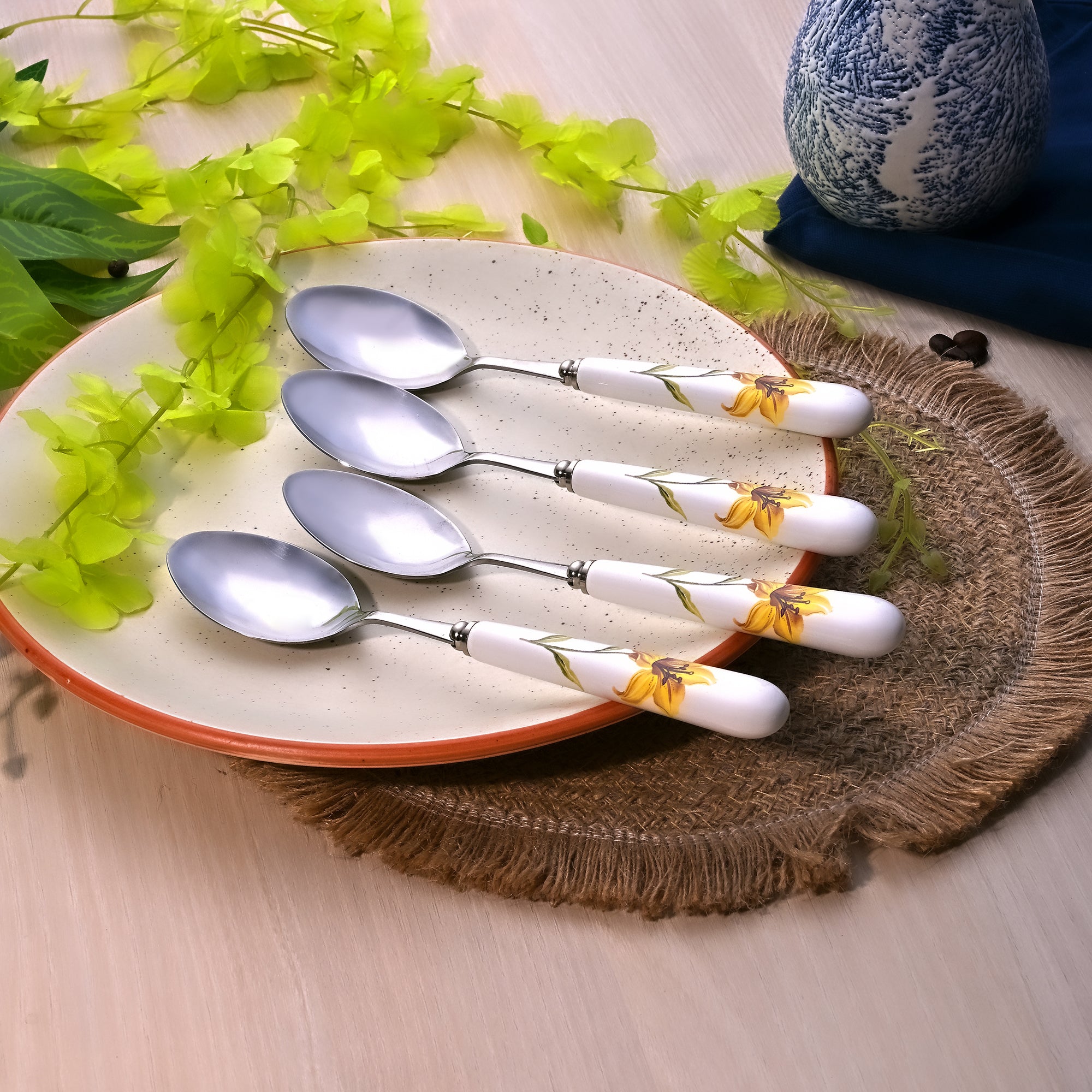 Golden Daffodil Grace Ceramic-Handled Spoons (Set of 4)