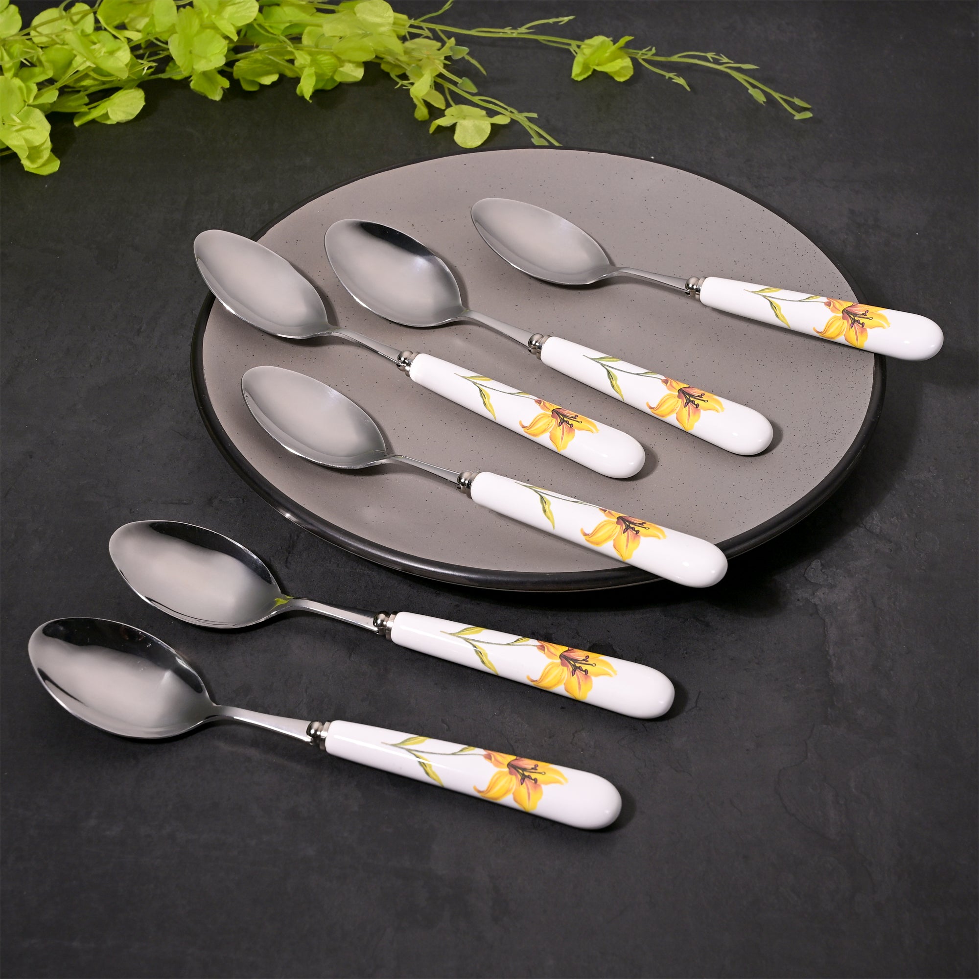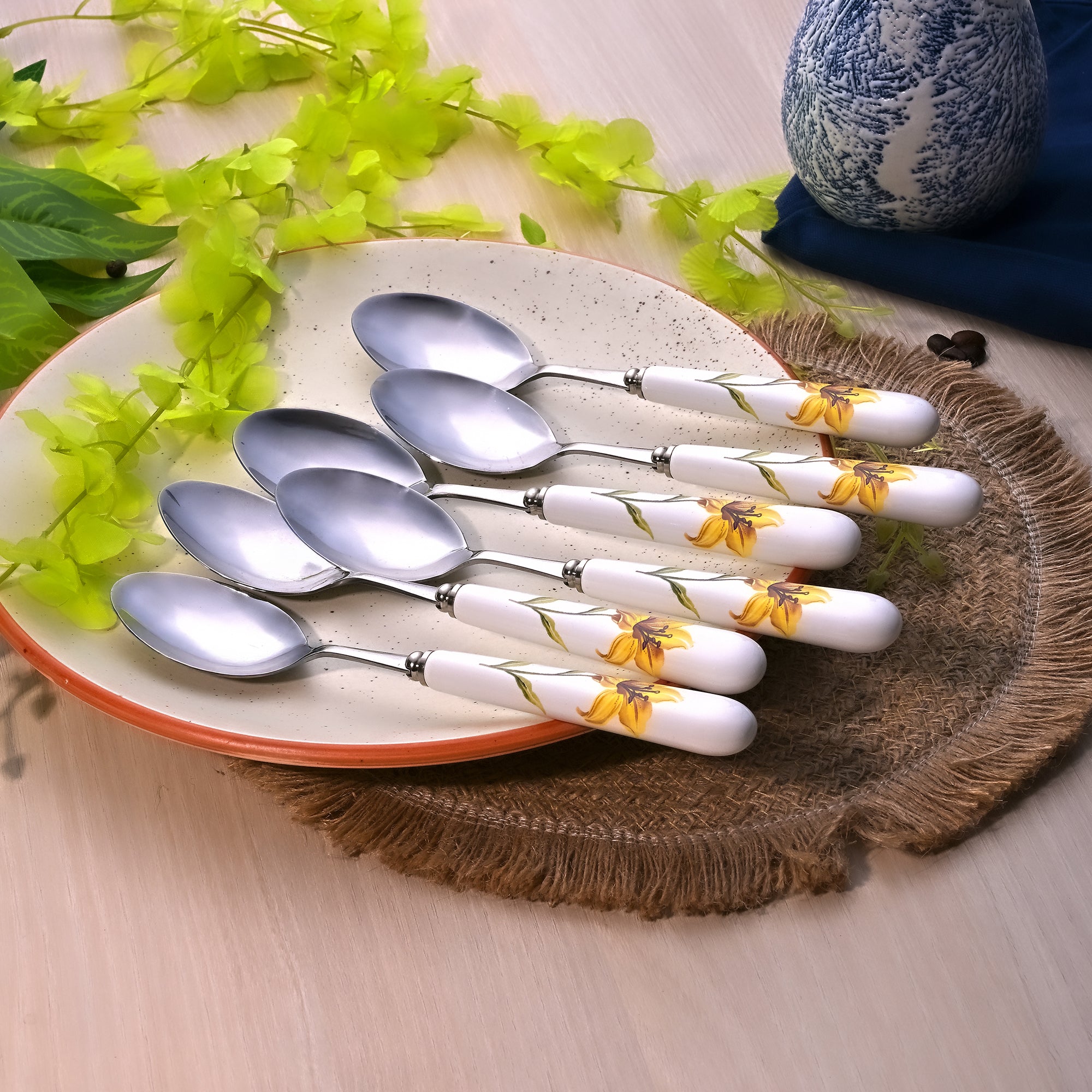 Golden Daffodil Grace Ceramic-Handled Spoons (Set of 6)