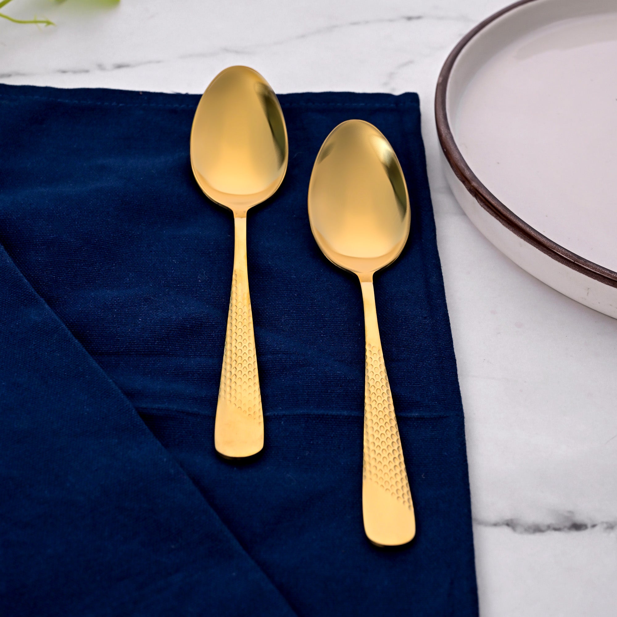 Crafted from premium stainless steel and dipped in golden attitude, this spoon isn't just for eating it's for making a statement.The hammered-texture handle adds both grip and elegance making it a standout piece that’s as versatile as it is beautiful.