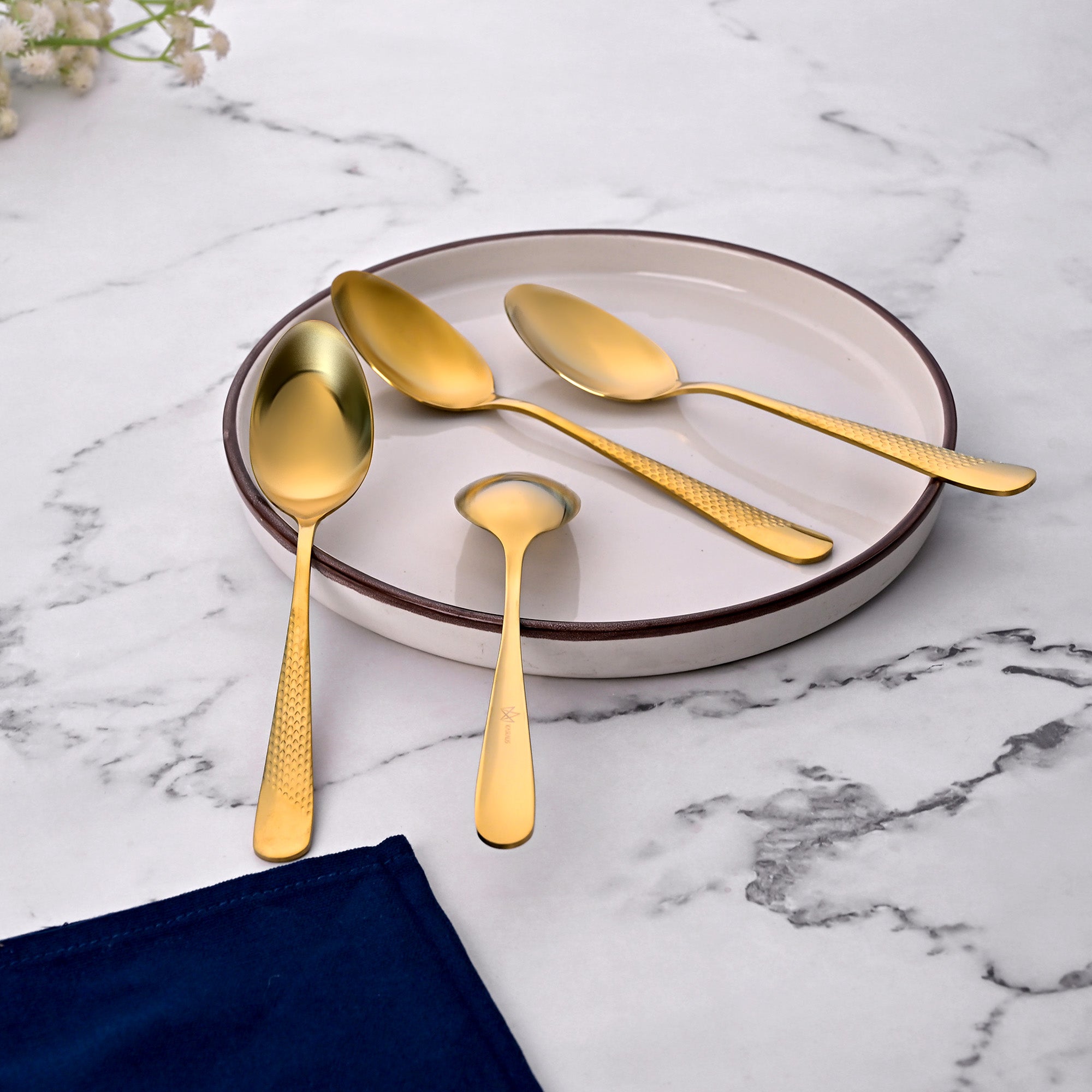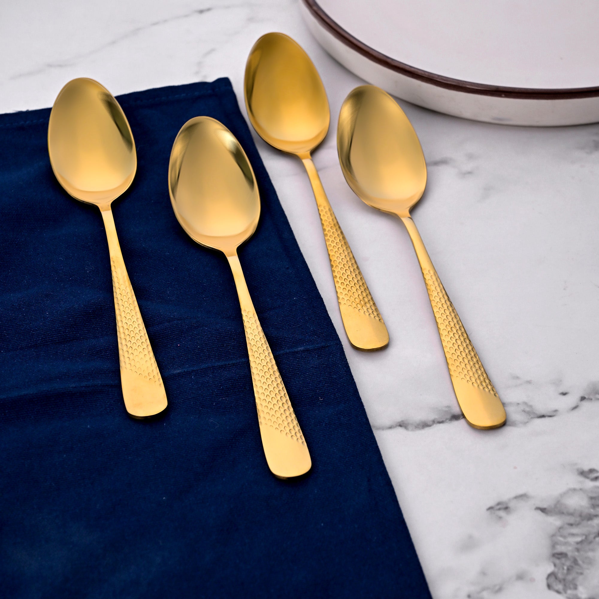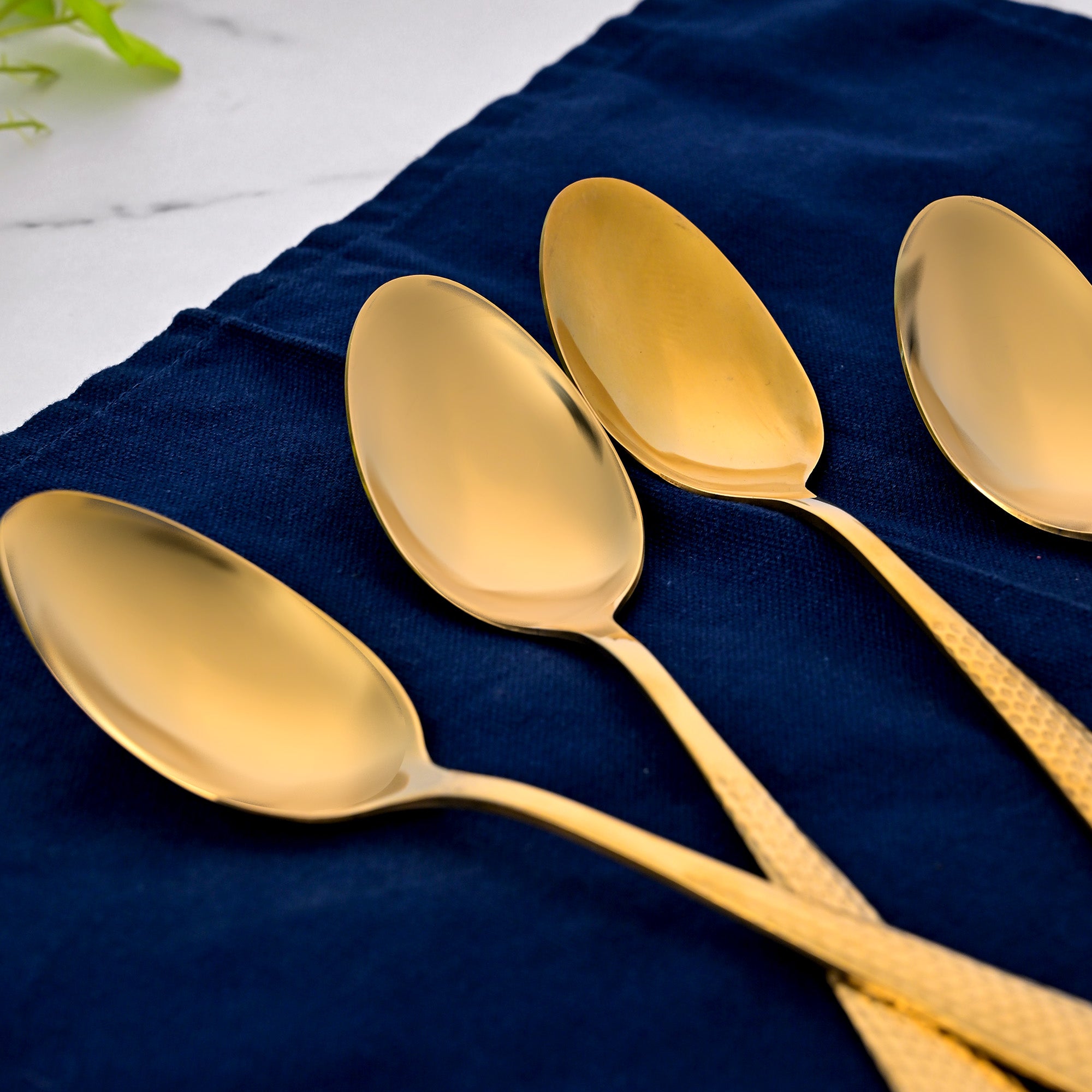 Crafted from premium stainless steel and dipped in golden attitude, this spoon isn't just for eating it's for making a statement.The hammered-texture handle adds both grip and elegance making it a standout piece that’s as versatile as it is beautiful.