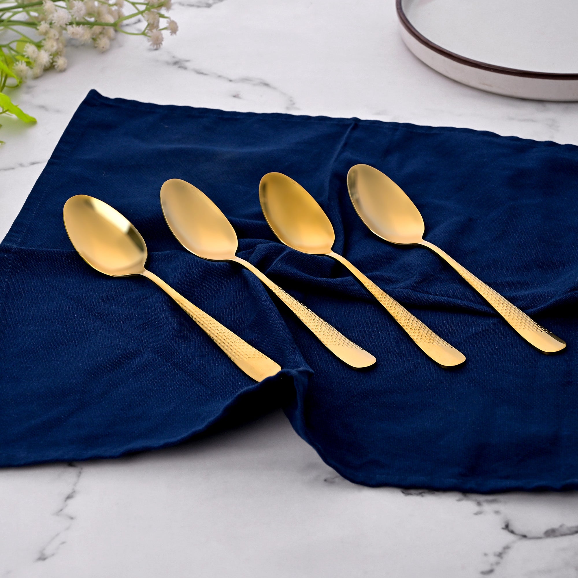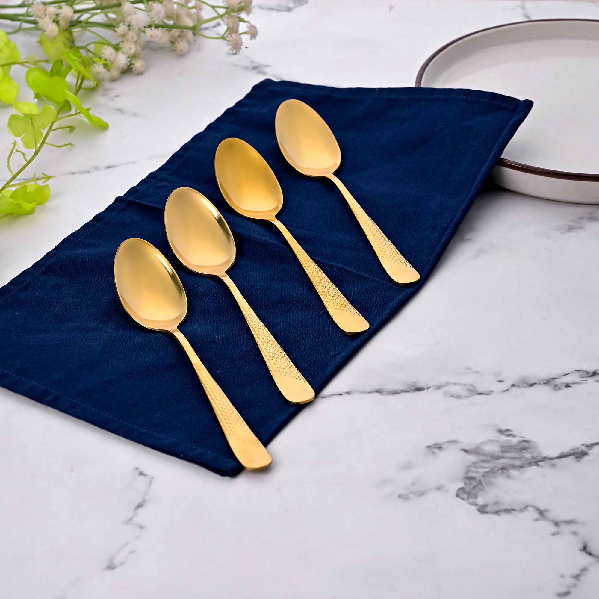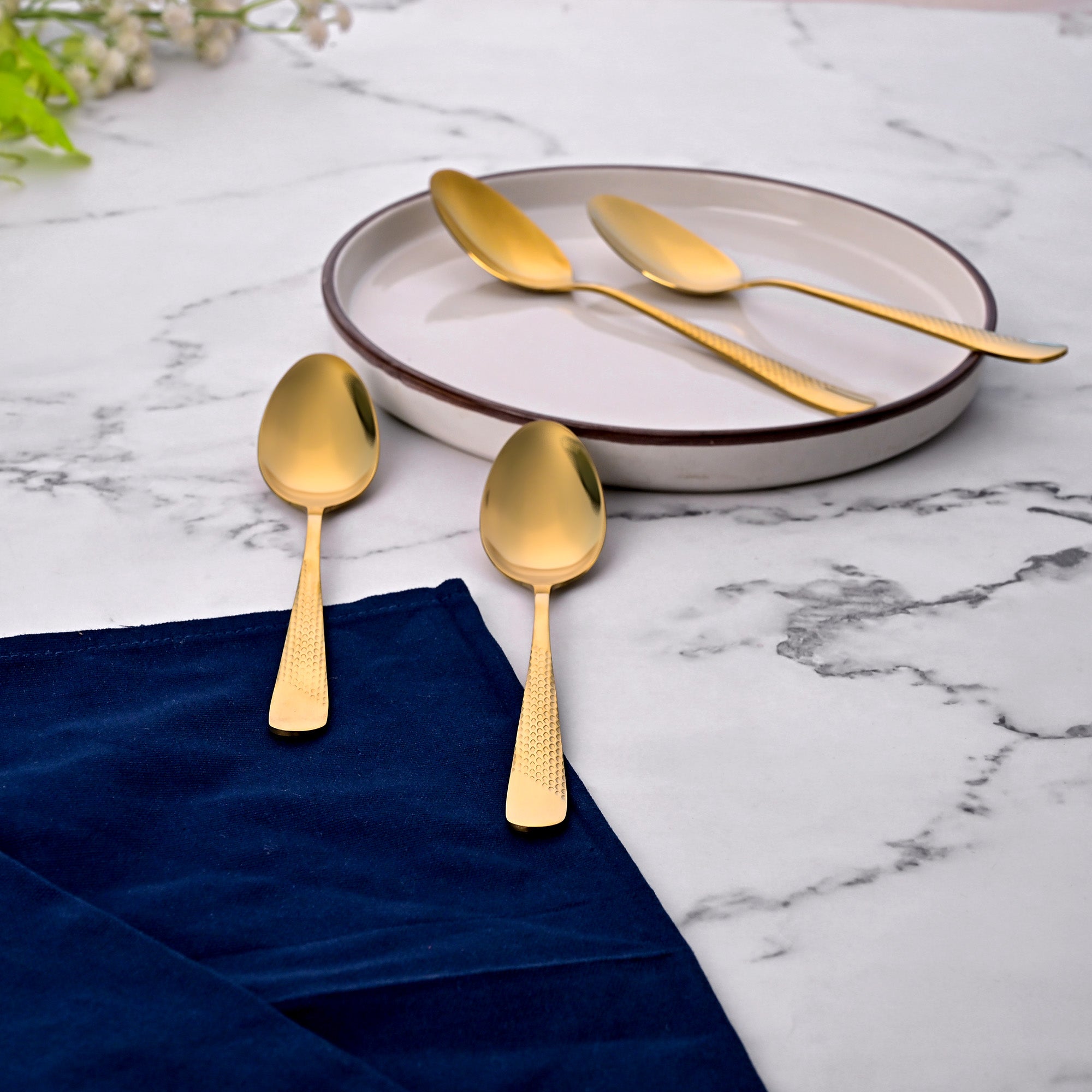 Crafted from premium stainless steel and dipped in golden attitude, this spoon isn't just for eating it's for making a statement.The hammered-texture handle adds both grip and elegance making it a standout piece that’s as versatile as it is beautiful.