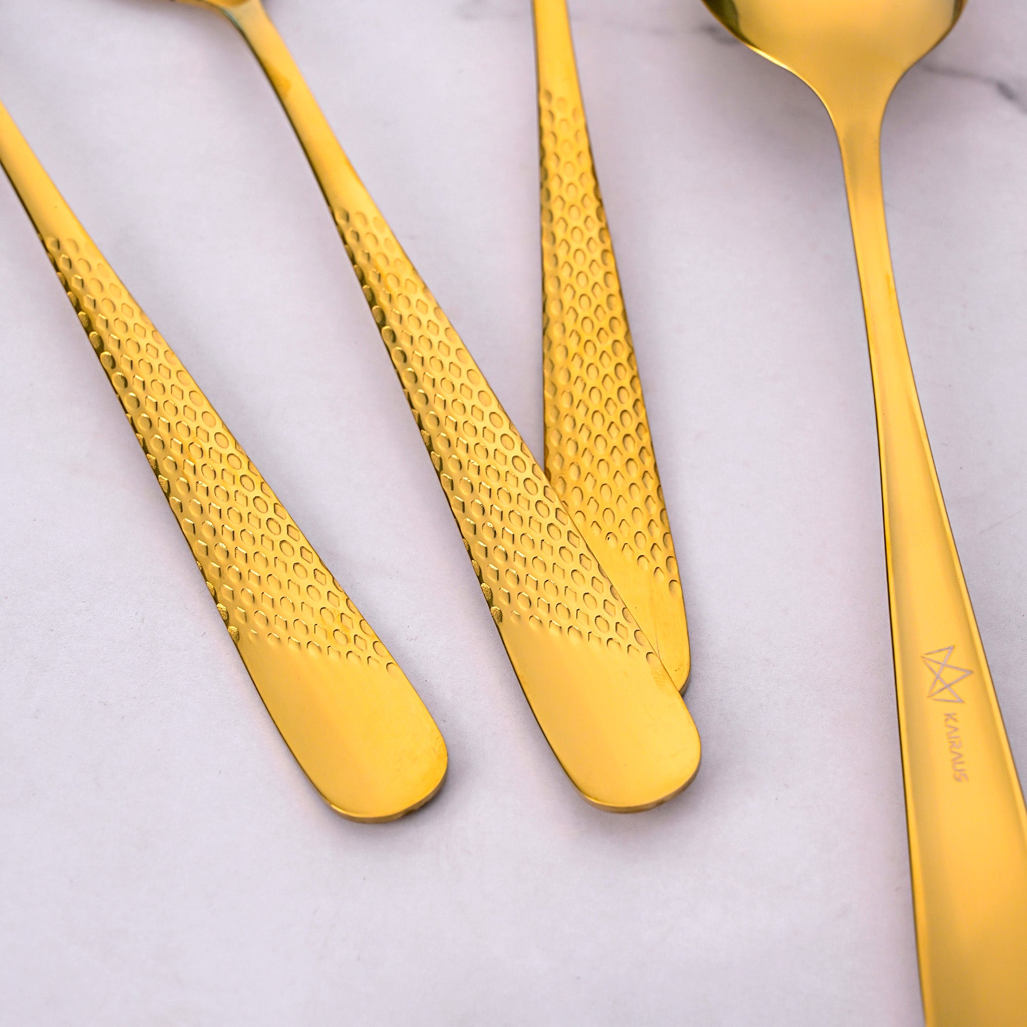 Crafted from premium stainless steel and dipped in golden attitude, this spoon isn't just for eating it's for making a statement.The hammered-texture handle adds both grip and elegance making it a standout piece that’s as versatile as it is beautiful.