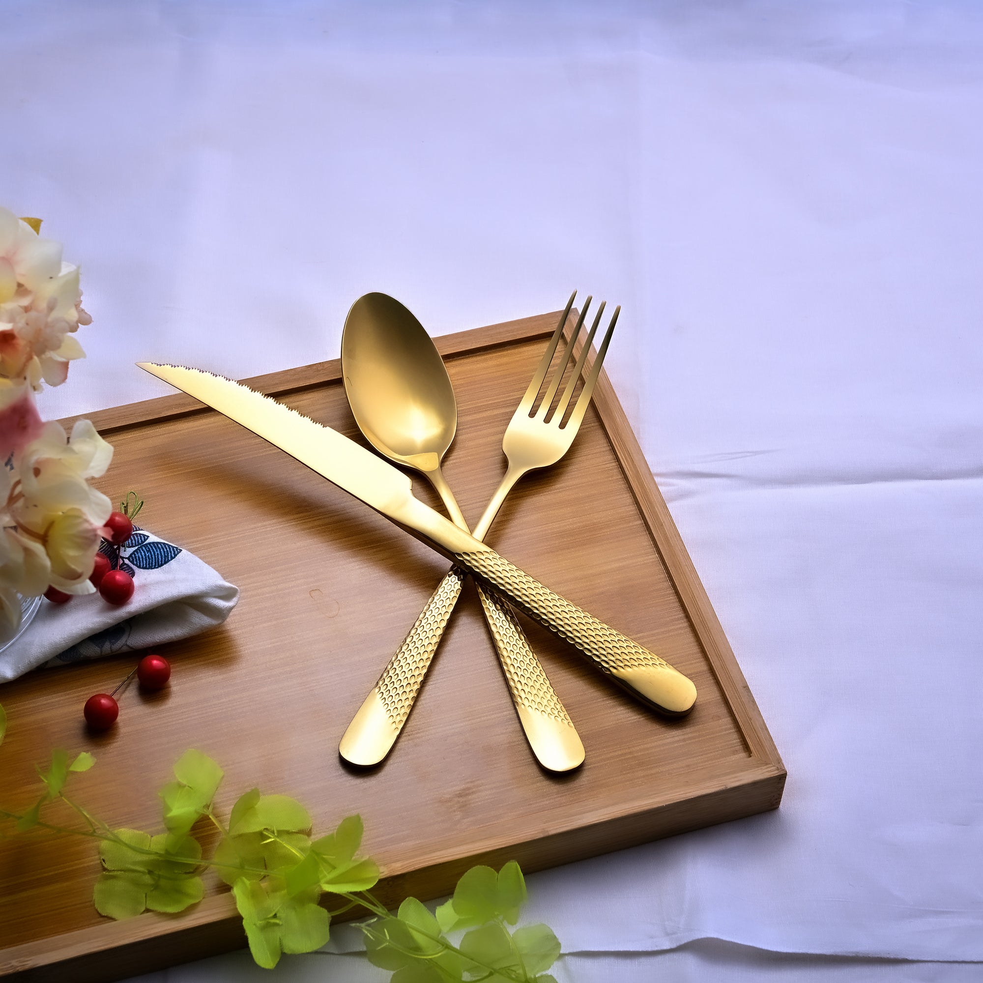 Made with high-quality stainless steel and coated in a long-lasting premium gold finish, this set is not just about looks. it's sturdy, stylish, and built to last. If you're looking for something unique that feels elegant and expensive, this golden stainless steel cutlery set is made just for you.