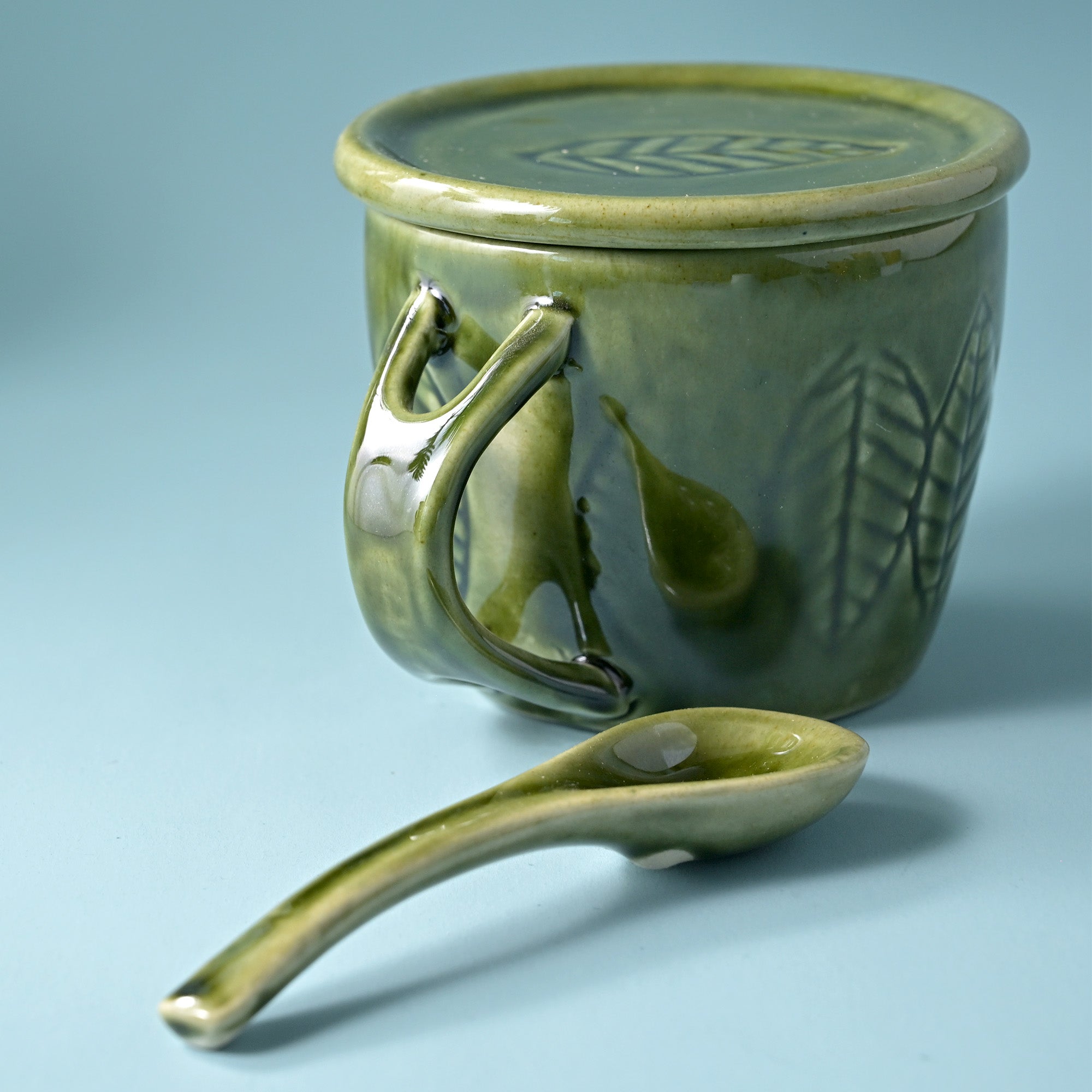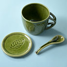 COD availableElevate your tea time with the Green Bliss Ceramic Cup Set. This exquisite cup showcases a vibrant green glaze that brings a sense of calm and freshness to your beverage experience. Thoughtfully designed with a snug lid to retain warmth and a charming spoon for added convenience, it’s perfect for savoring your favorite teas or coffees. Whether you’re enjoying a peaceful morning or a soothing afternoon break, this cup adds a touch of elegance and tranquility to every sip.