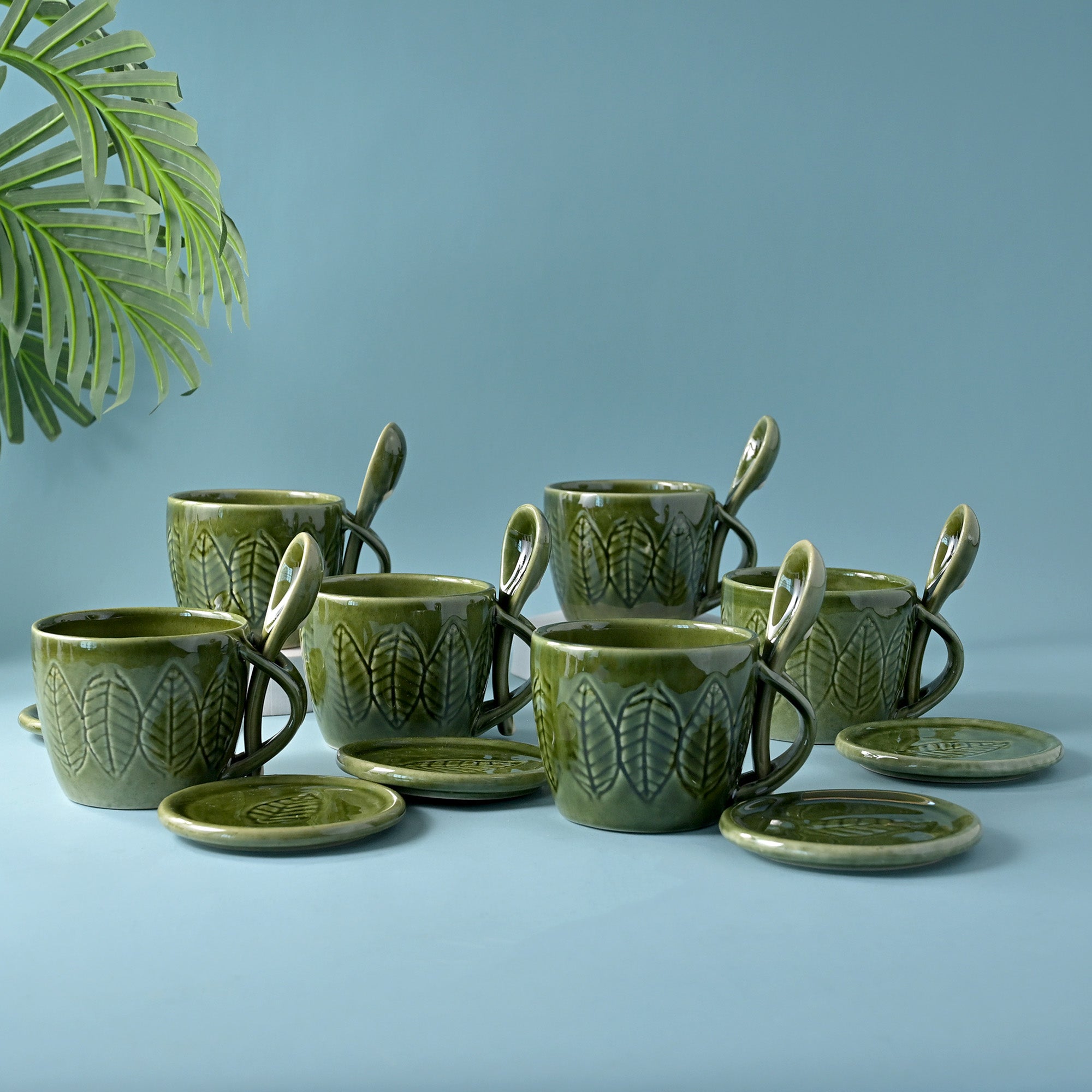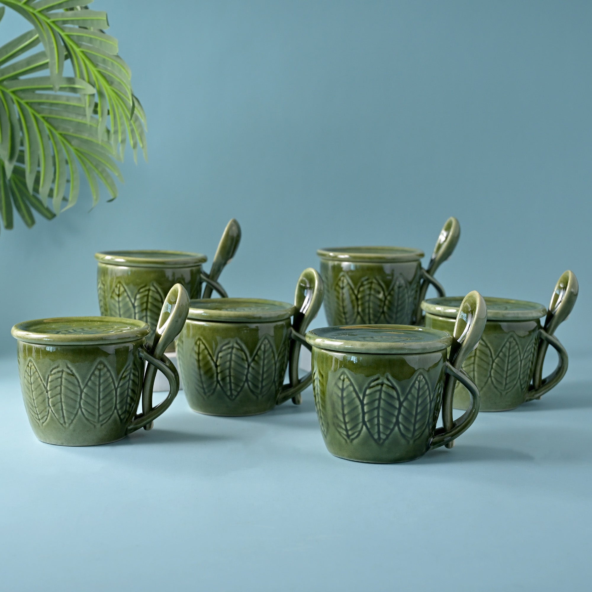 COD availableElevate your tea time with the Green Bliss Ceramic Cup Set. This exquisite cup showcases a vibrant green glaze that brings a sense of calm and freshness to your beverage experience. Thoughtfully designed with a snug lid to retain warmth and a charming spoon for added convenience, it’s perfect for savoring your favorite teas or coffees. Whether you’re enjoying a peaceful morning or a soothing afternoon break, this cup adds a touch of elegance and tranquility to every sip.