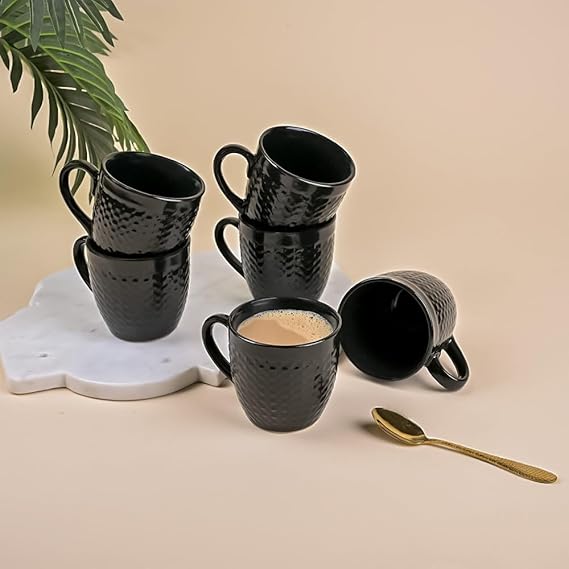 Hammered Black Ceramic Tea Cups (Set of 6)