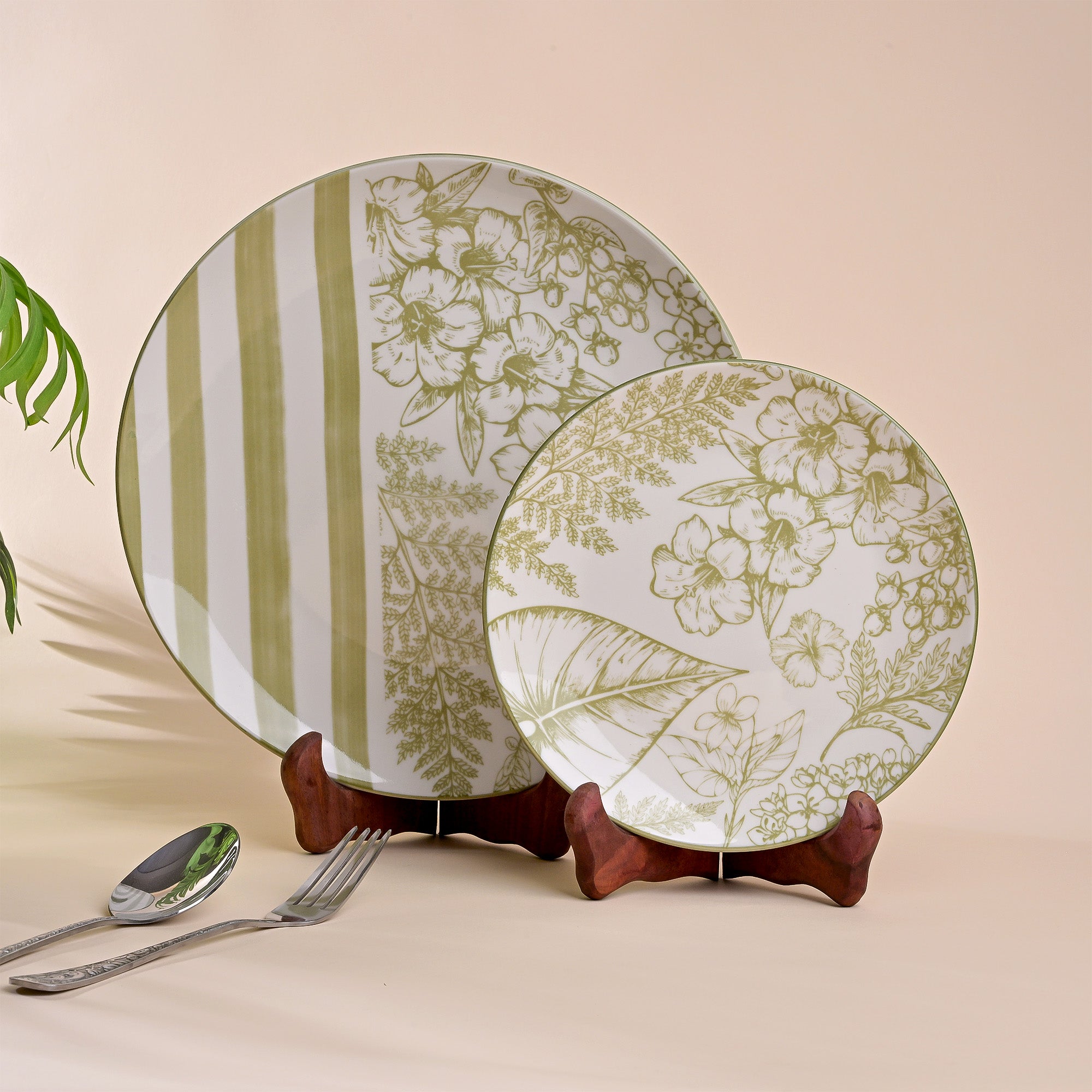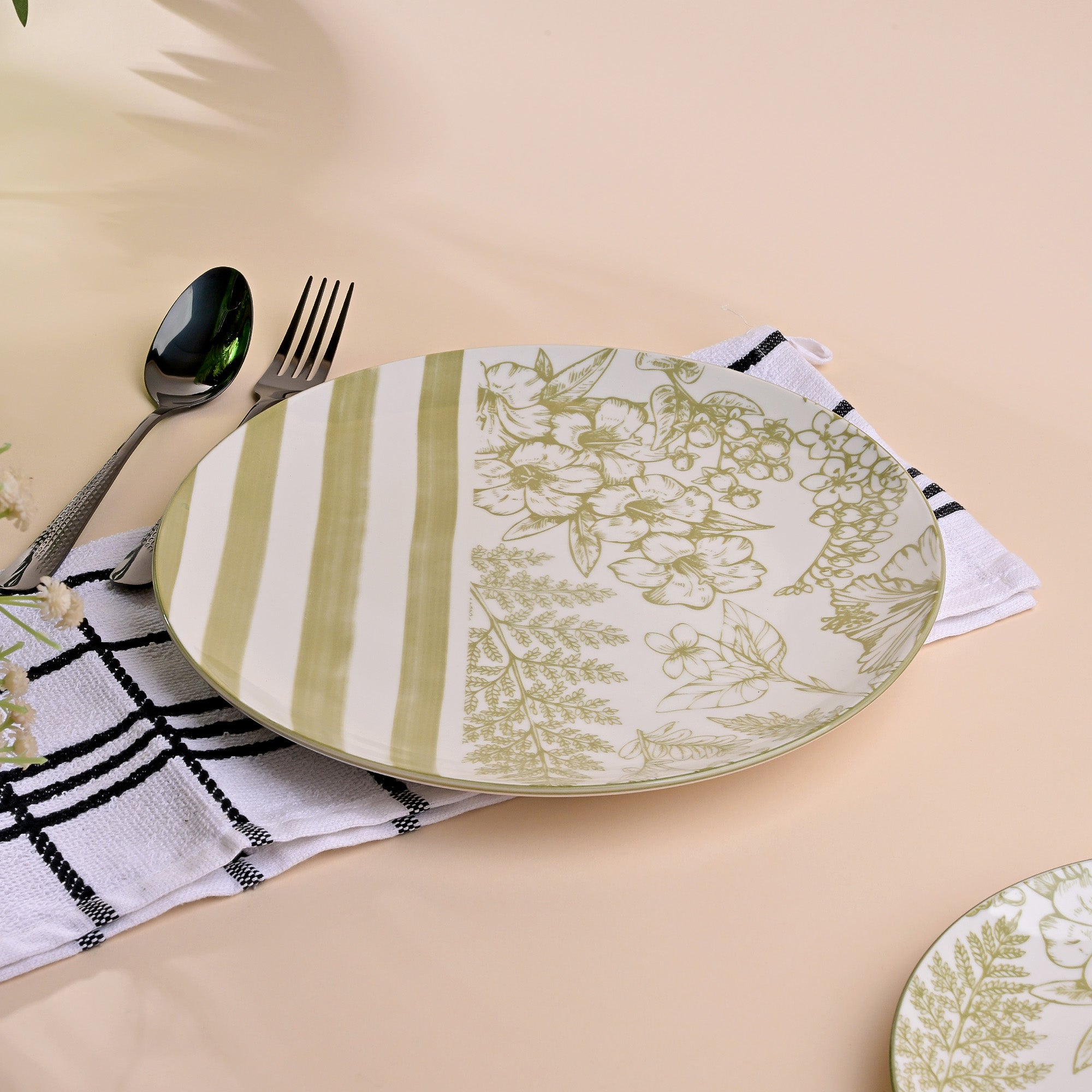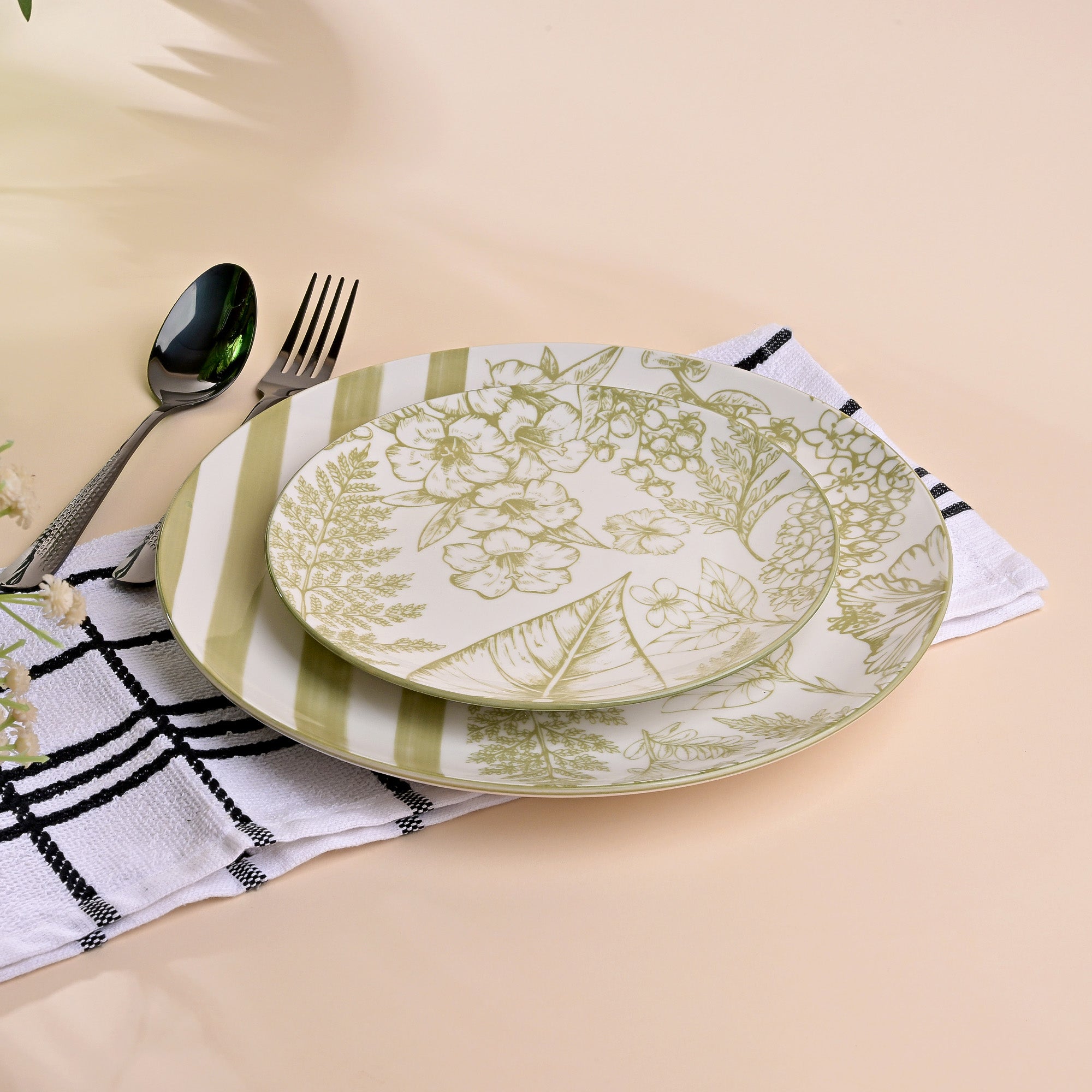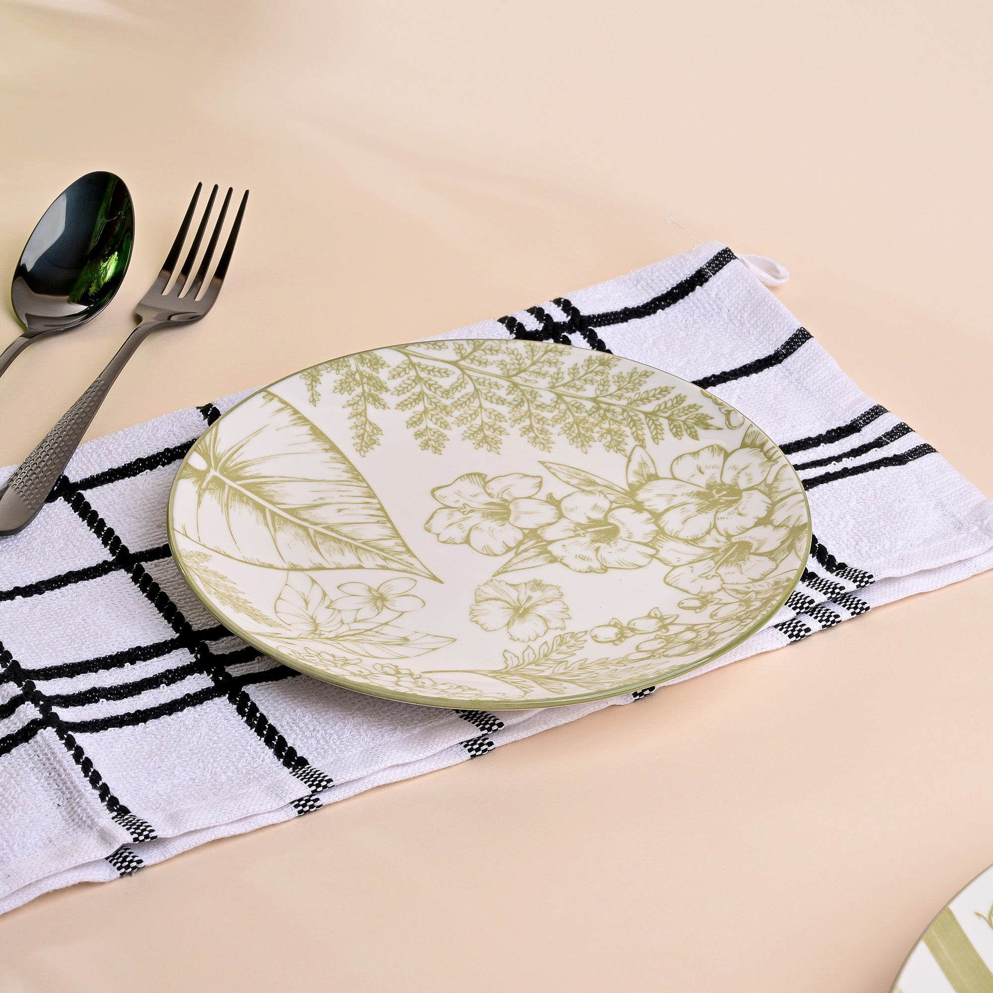 COD availableHazel means tree of wisdom and art. This exclusive and rare Hazel Artistic Porcelain Plate Set is handcrafted to transform your dining into a canvas. As the white surface flares, the green hazel patterns enchant the plates with creativity and beauty. These plates are made of premium quality porcelain material, ensuring strength and a lifelong companion to cherished meals. Comes with a plate and service plate, it's a perfect choice for someone who adores Tablescapes and fine dining.
