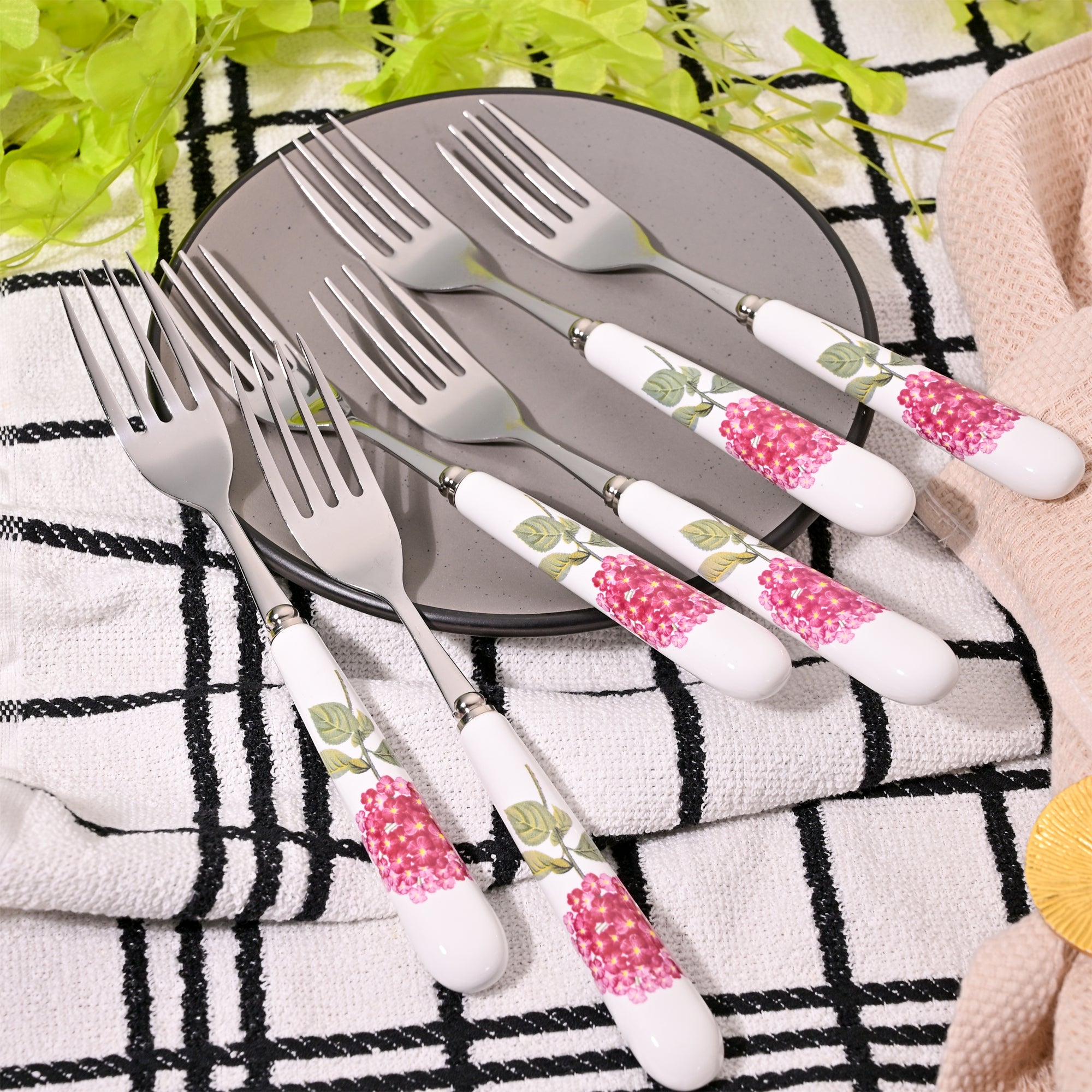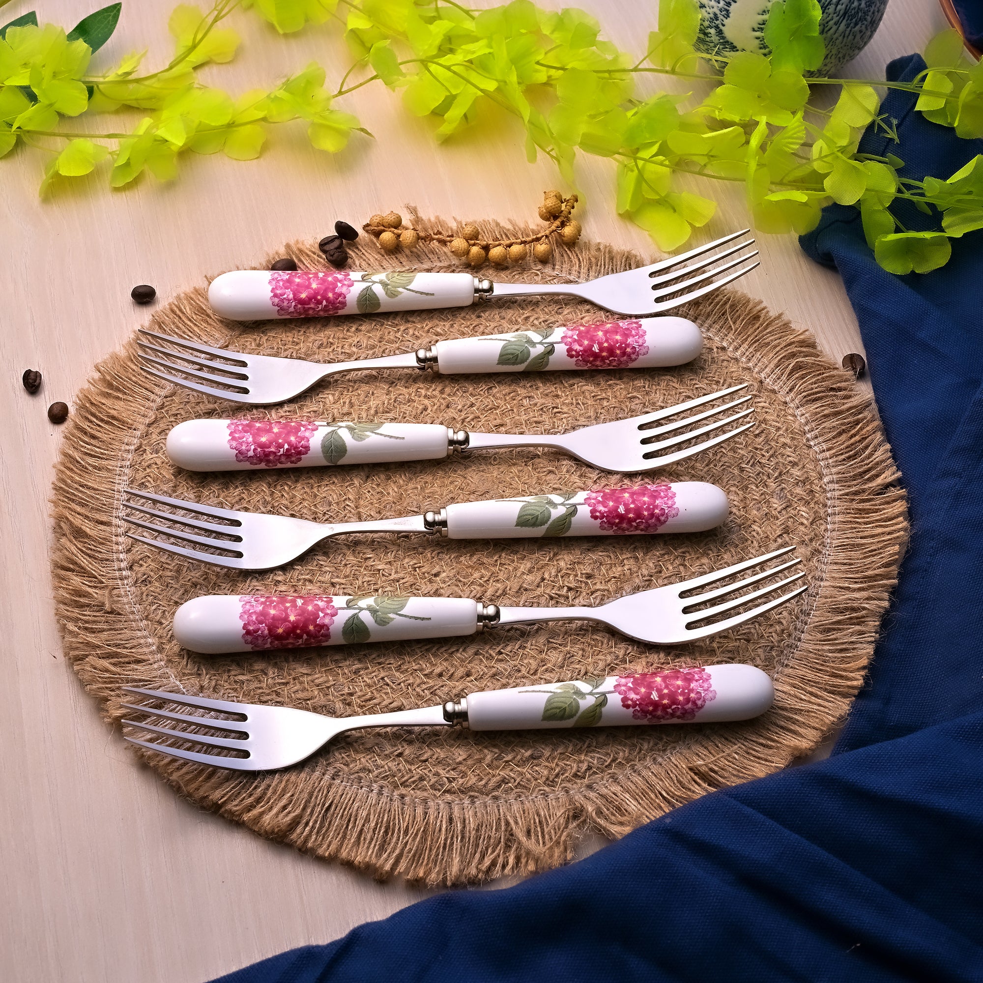 Hydrangea Bloom Ceramic-handled Forks (Set of 6)