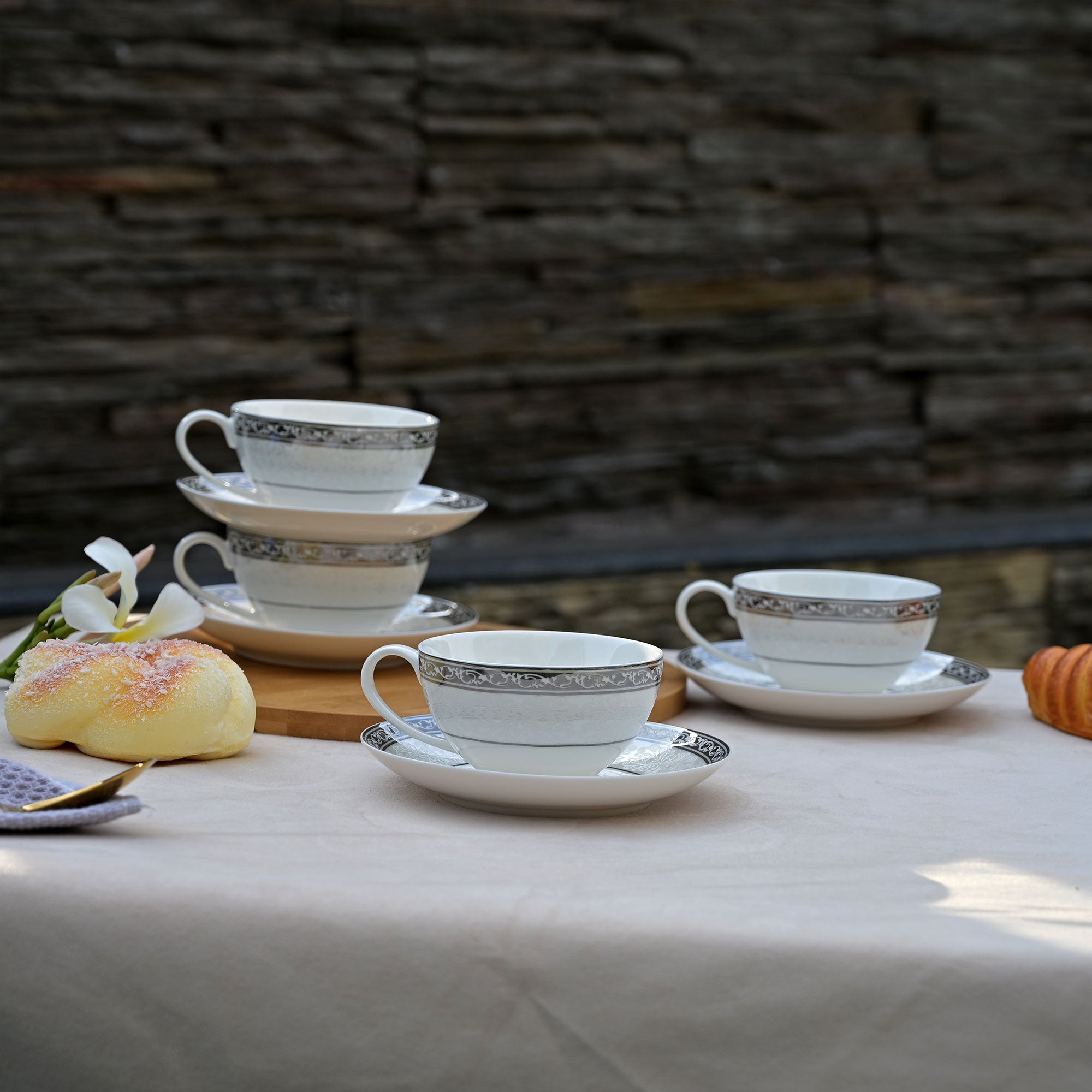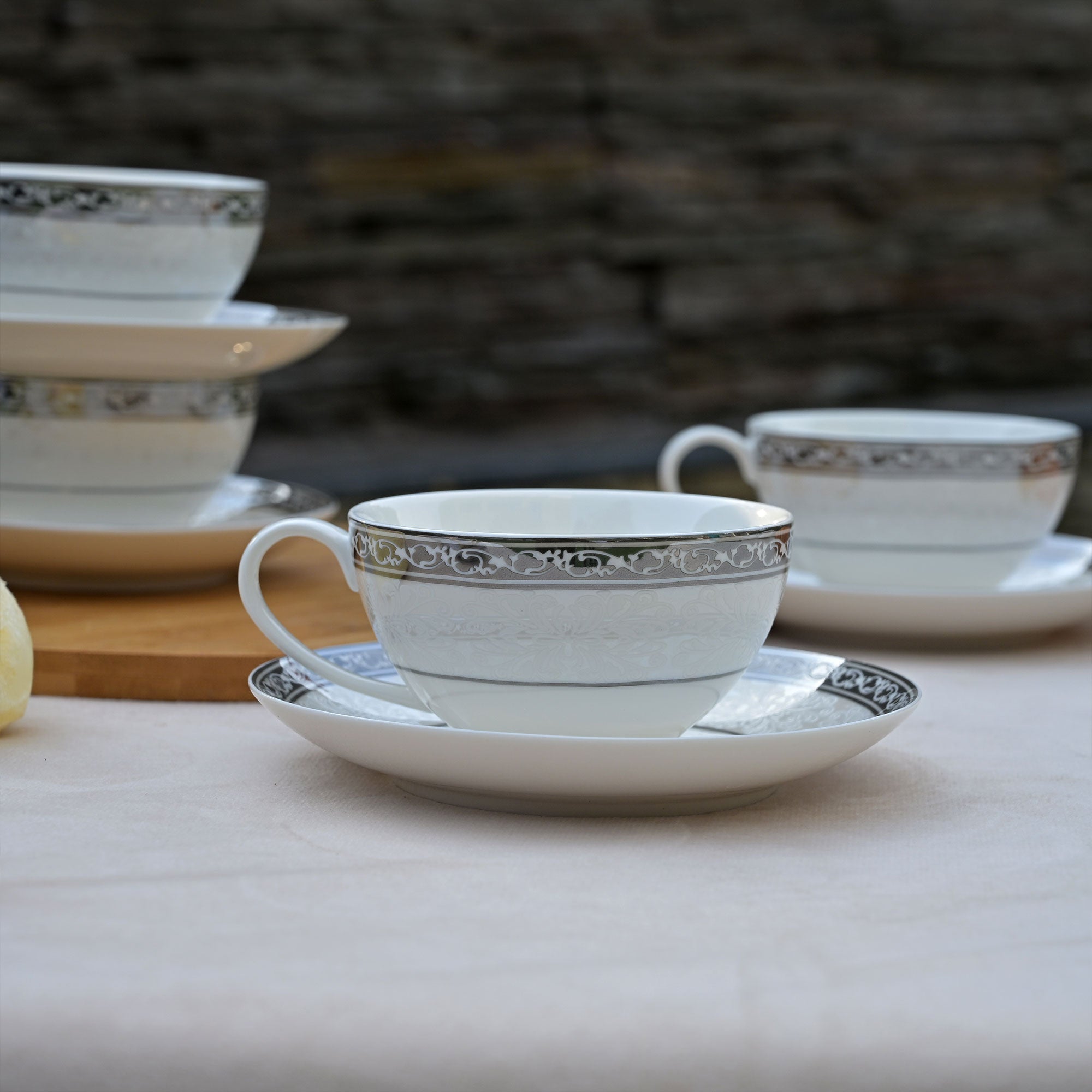 COD availableLagom, a term that defines the beauty that is neither too much nor too little, just right. Our new edition of fine bone china cups is charmed with intricate grey and white patterns over the rim and thespian patterns lightly drawn around the body. This tea cup set stands out for being free from bone extracts and the visual it generates as we fill the coffee in this perfectly round drinkware. Made to celebrate the aromas, Lagom is the answer to your culinary manifestations.
