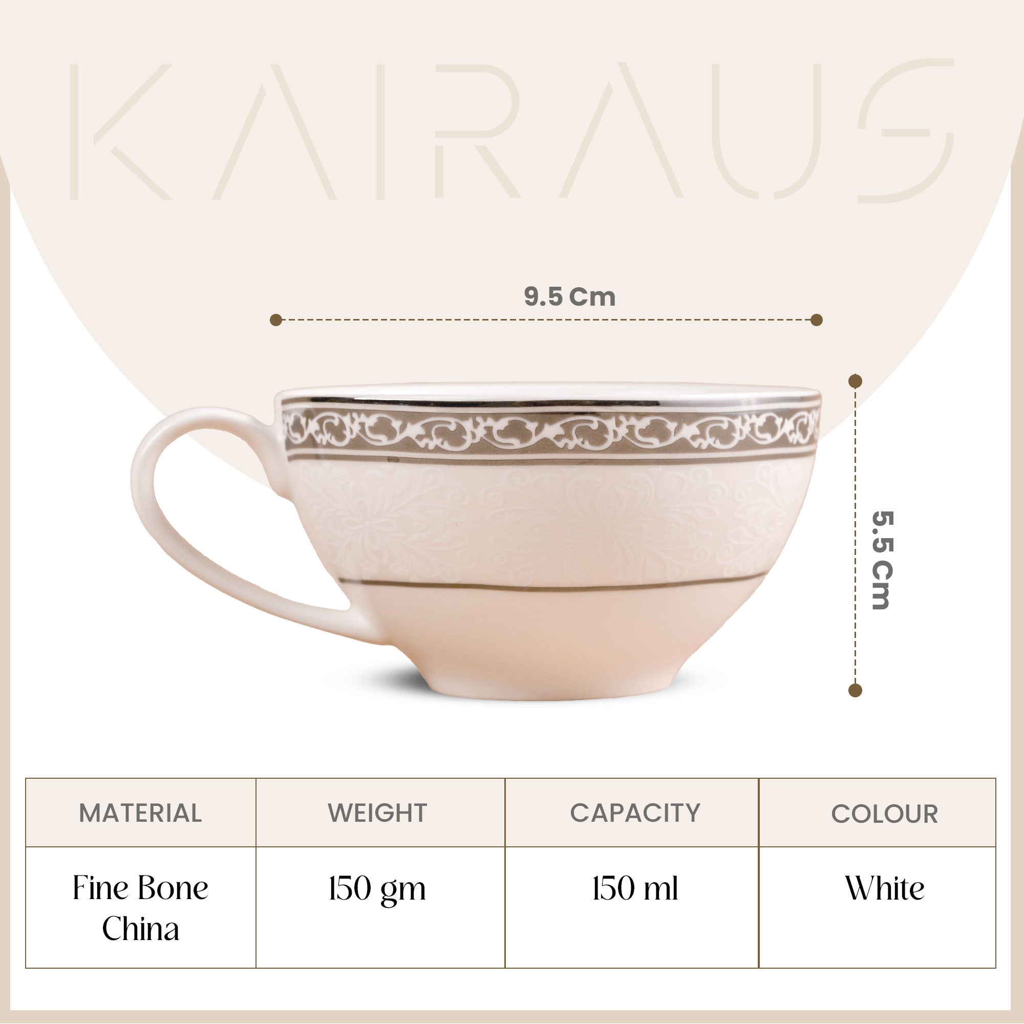 | Dimensions (L x W x H) | Cup: 9.5 x 9.5 x 5.5 Cms. Saucer: 15 x 15 x 2.5 Cms. |