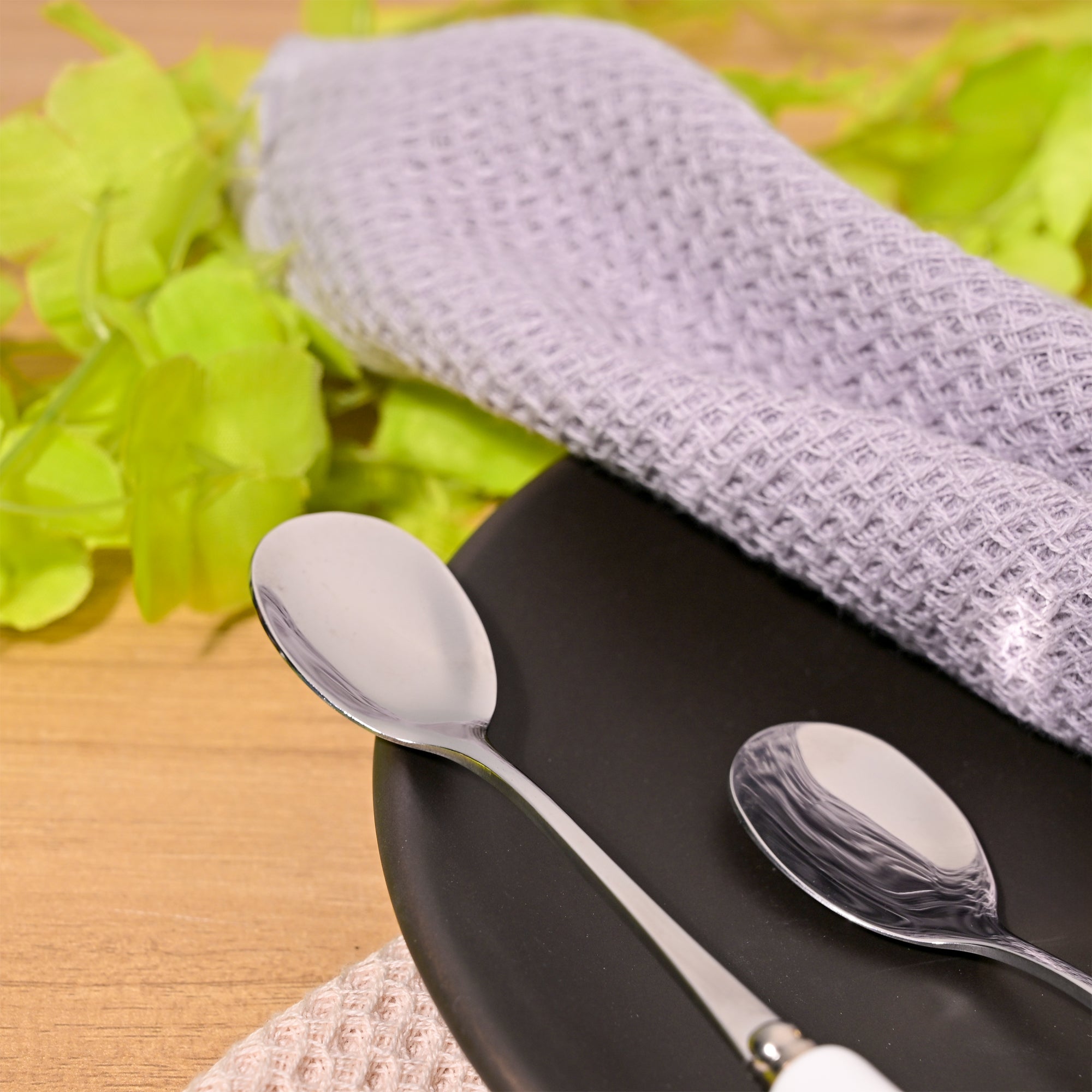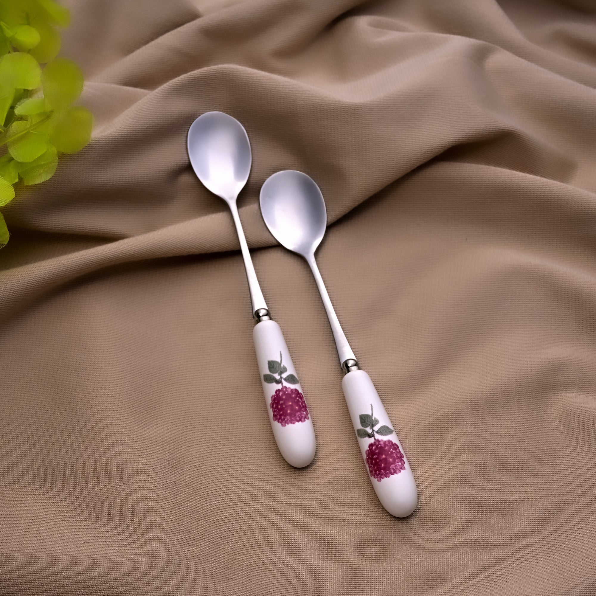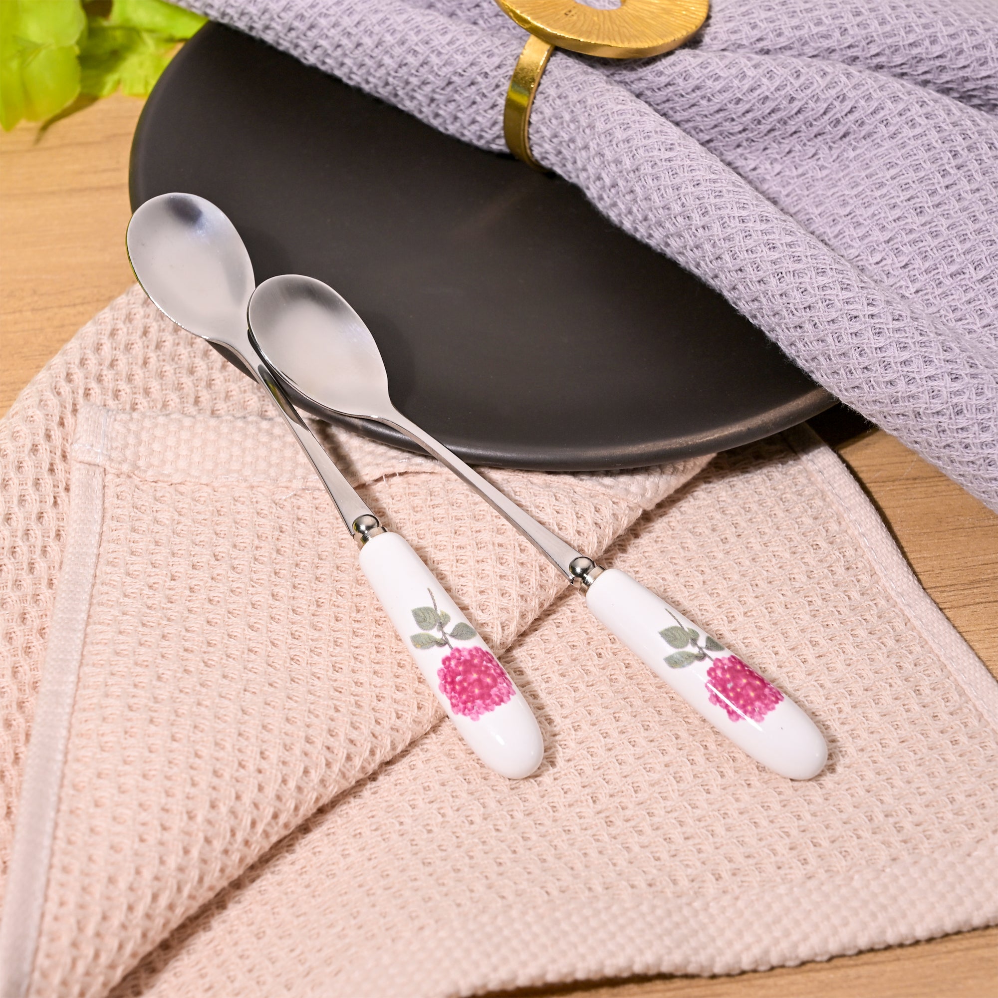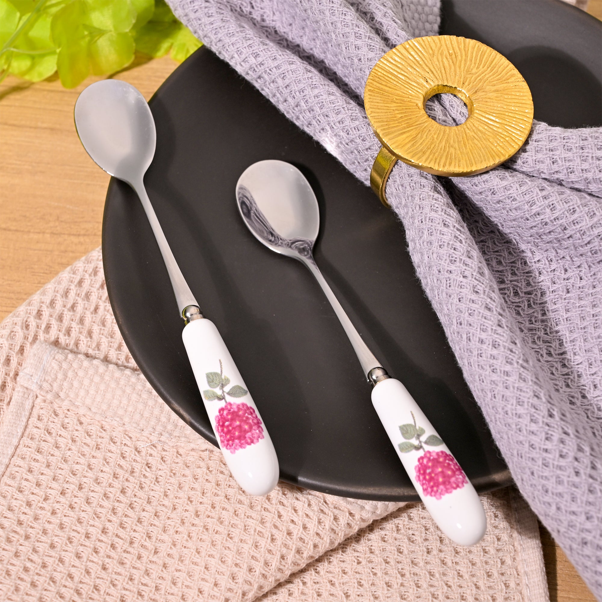 The floral design over a glossy white ceramic handle brings a soft, elegant look that instantly upraises your table setting. This set is made with high-quality stainless steel, these spoons are not just pretty but also strong and durable perfect for everyday desserts or when you're hosting something special.