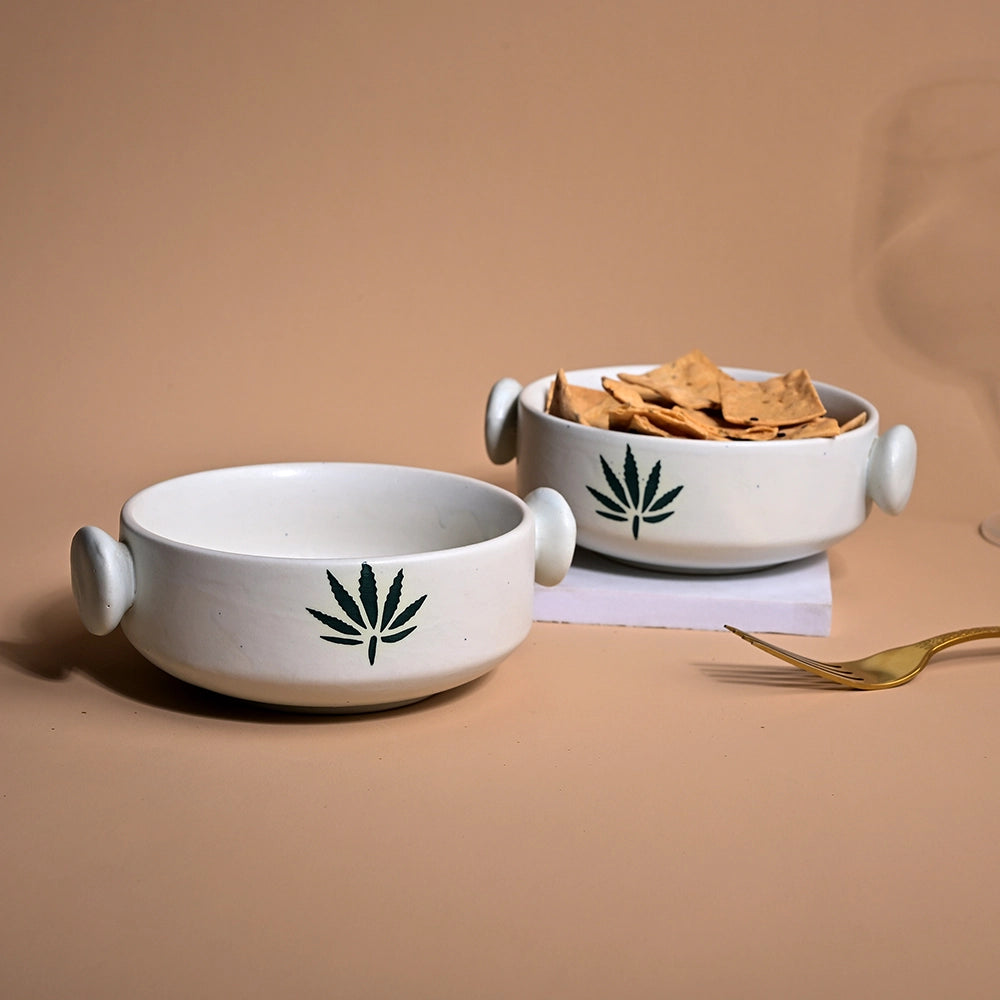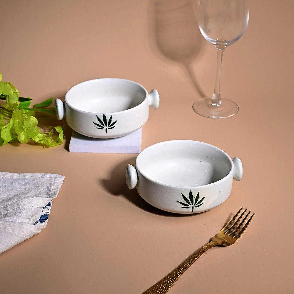 COD availableUsing white bowls just feels good, they are clean and simple and they showcase your food beautifully. This Leaf Imprint White Serving Bowl of porcelain is durable, long-lasting and best for daily use. There is a small green leaf in the middle looks so charming without being too much along with cute mini round handles. You can use these bowls for dal and rice, salads or any of your other favourite snacks! The bowl set comes in perfect sizes so that you're always prepared to serve in a good way. This is the kind of set that you'll be reaching for again and again, whether it be for dinner or just a snack attack!