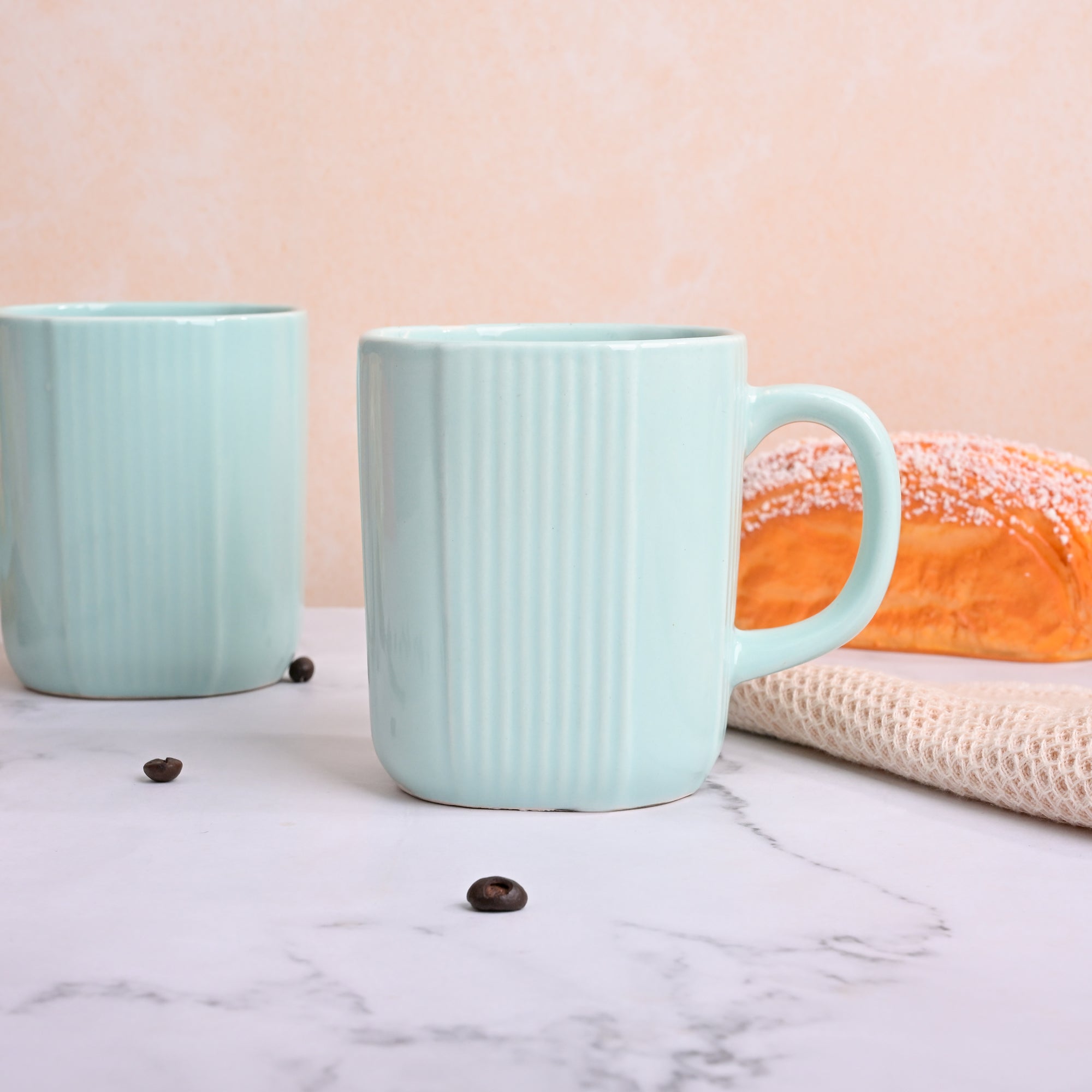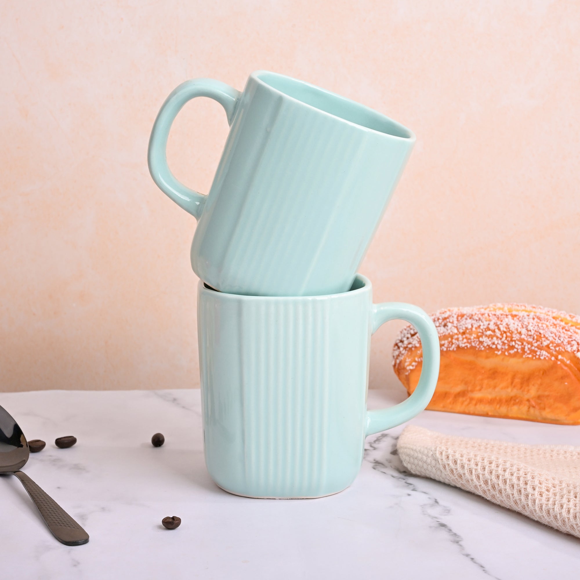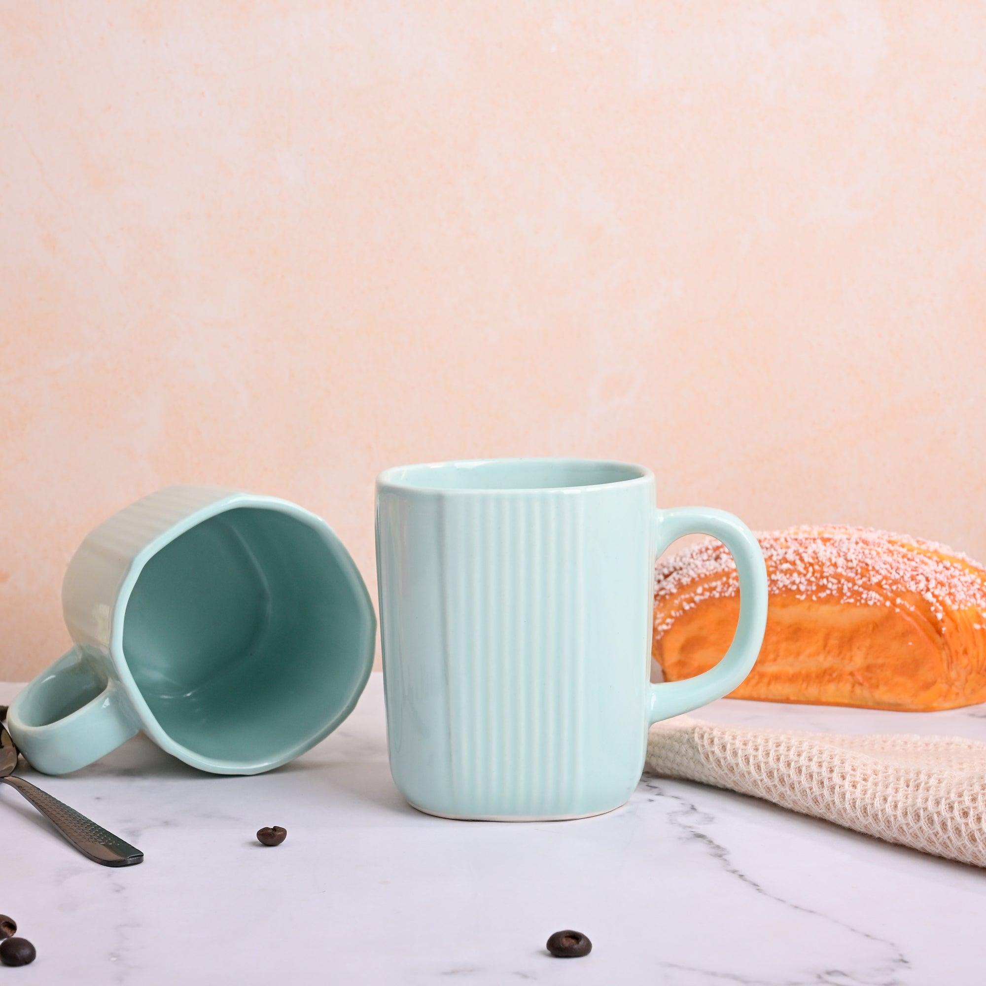 Light Green Unique Ceramic Coffee Mug (Set of 2)