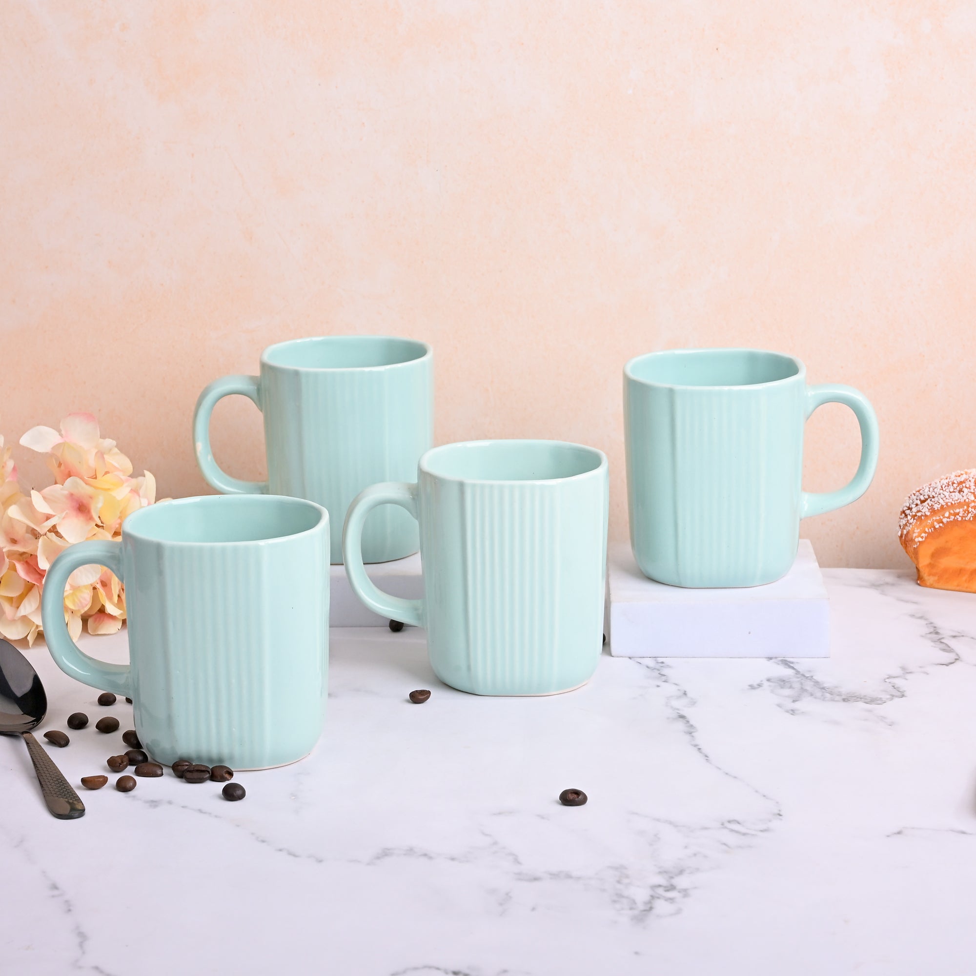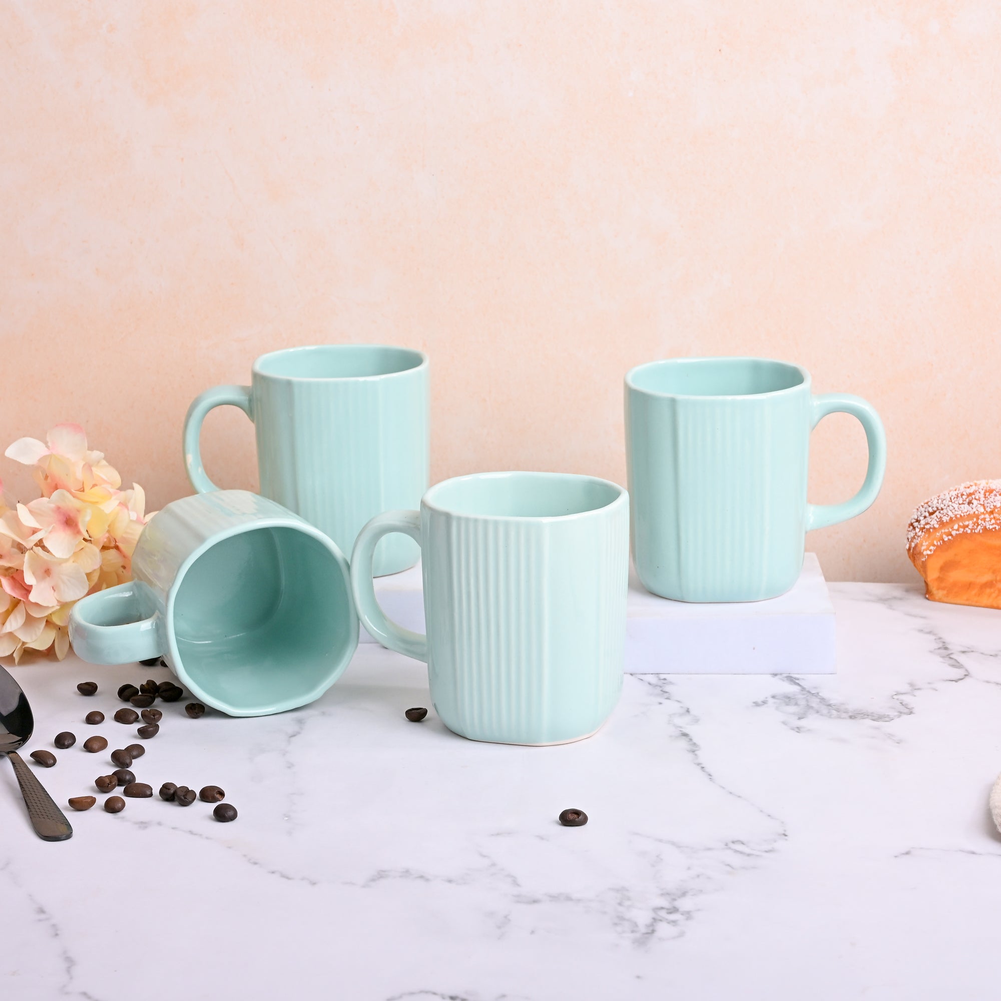 Light Green Unique Ceramic Coffee Mug (Set of 4)