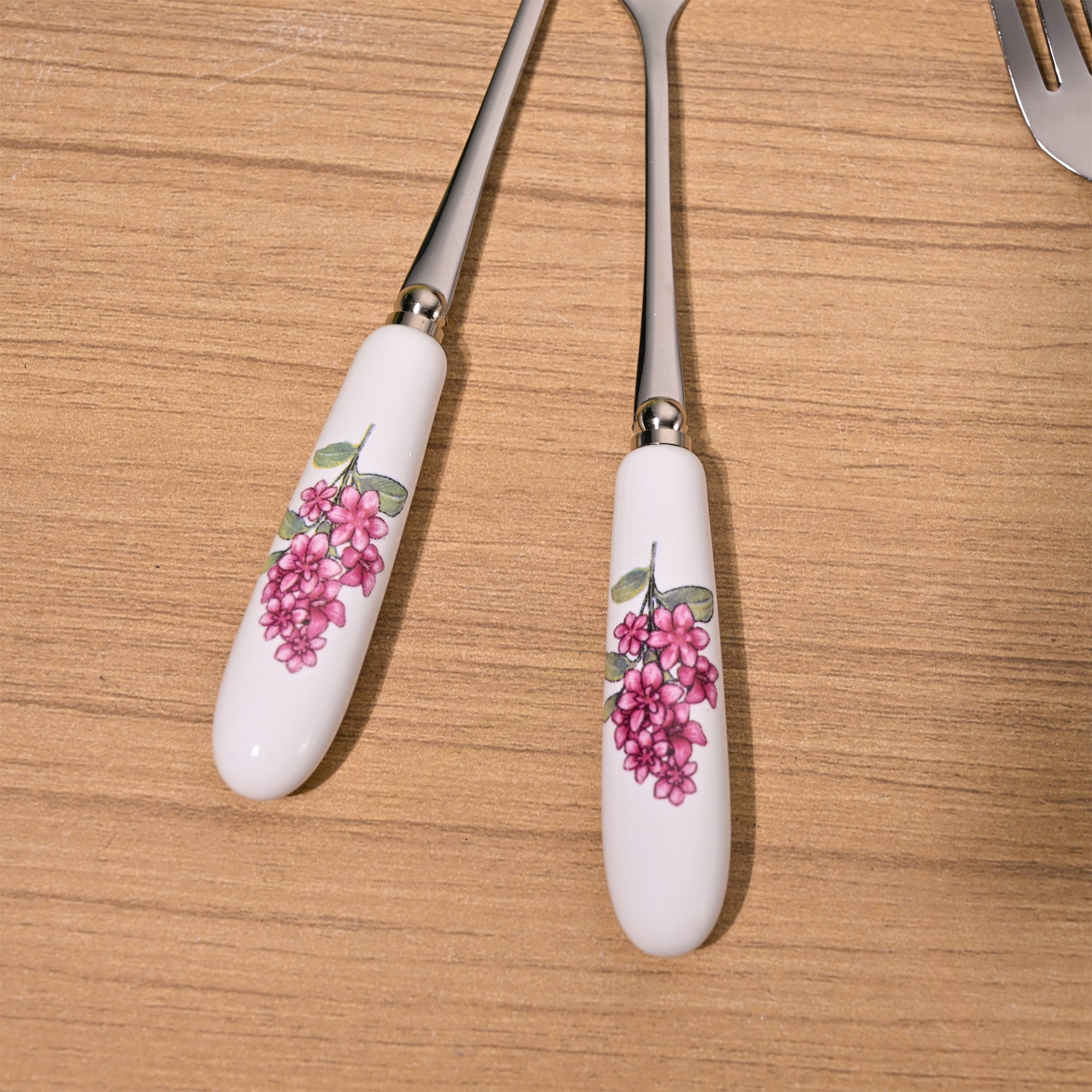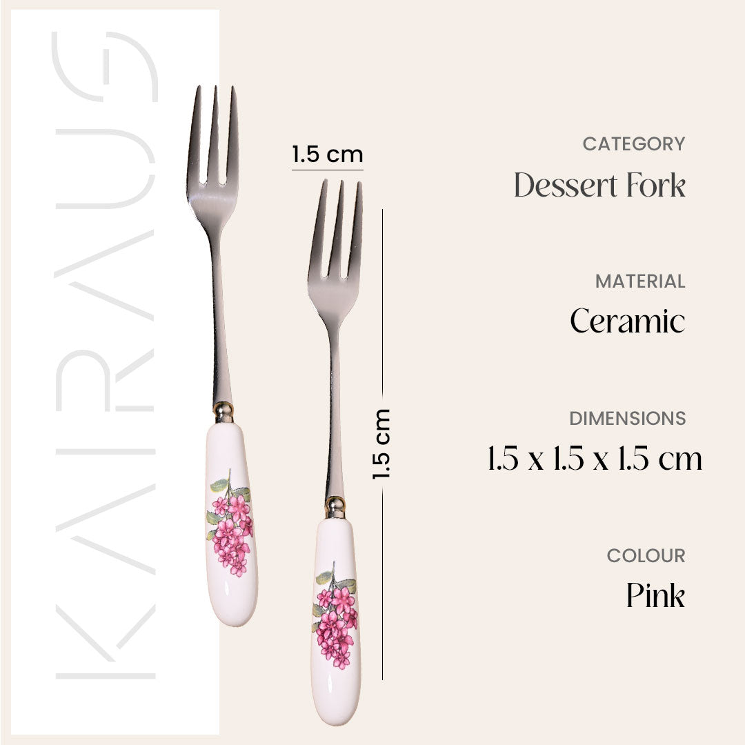 COD availableYour desserts deserve more than just taste, they deserve elegance in presentation. The Lilac Bloom Ceramic-Handled Dessert Fork Set brings charm and functionality to every bite. Crafted from premium stainless steel with smooth, ceramic-coated handles, each fork is adorned with delicate pink floral motifs that evoke springtime elegance. The soft white handle and lilac bloom design add a refreshing, refined touch to your table.