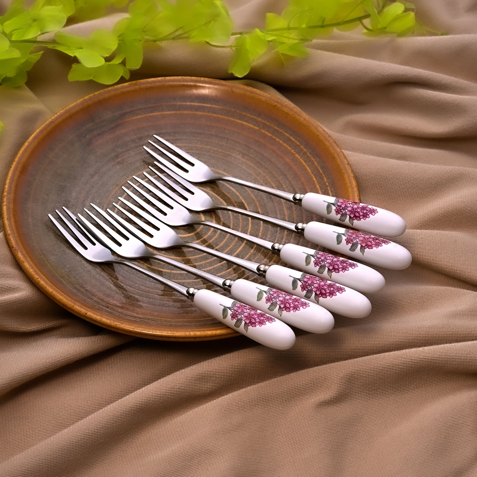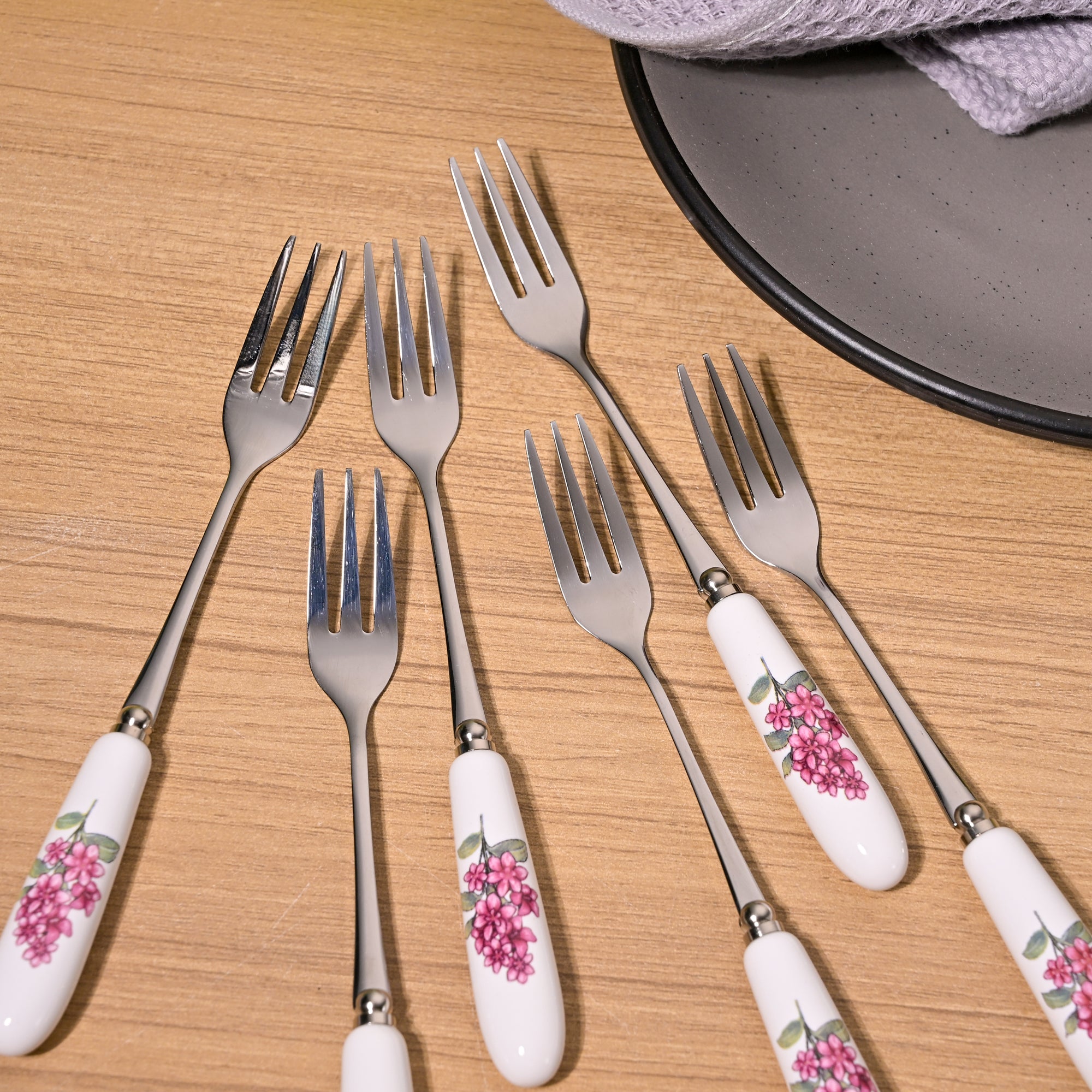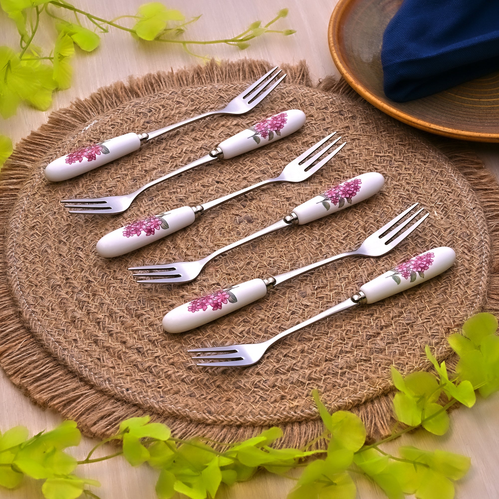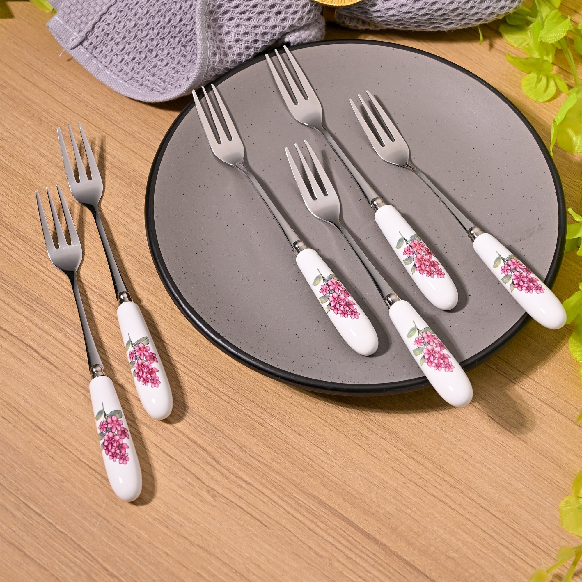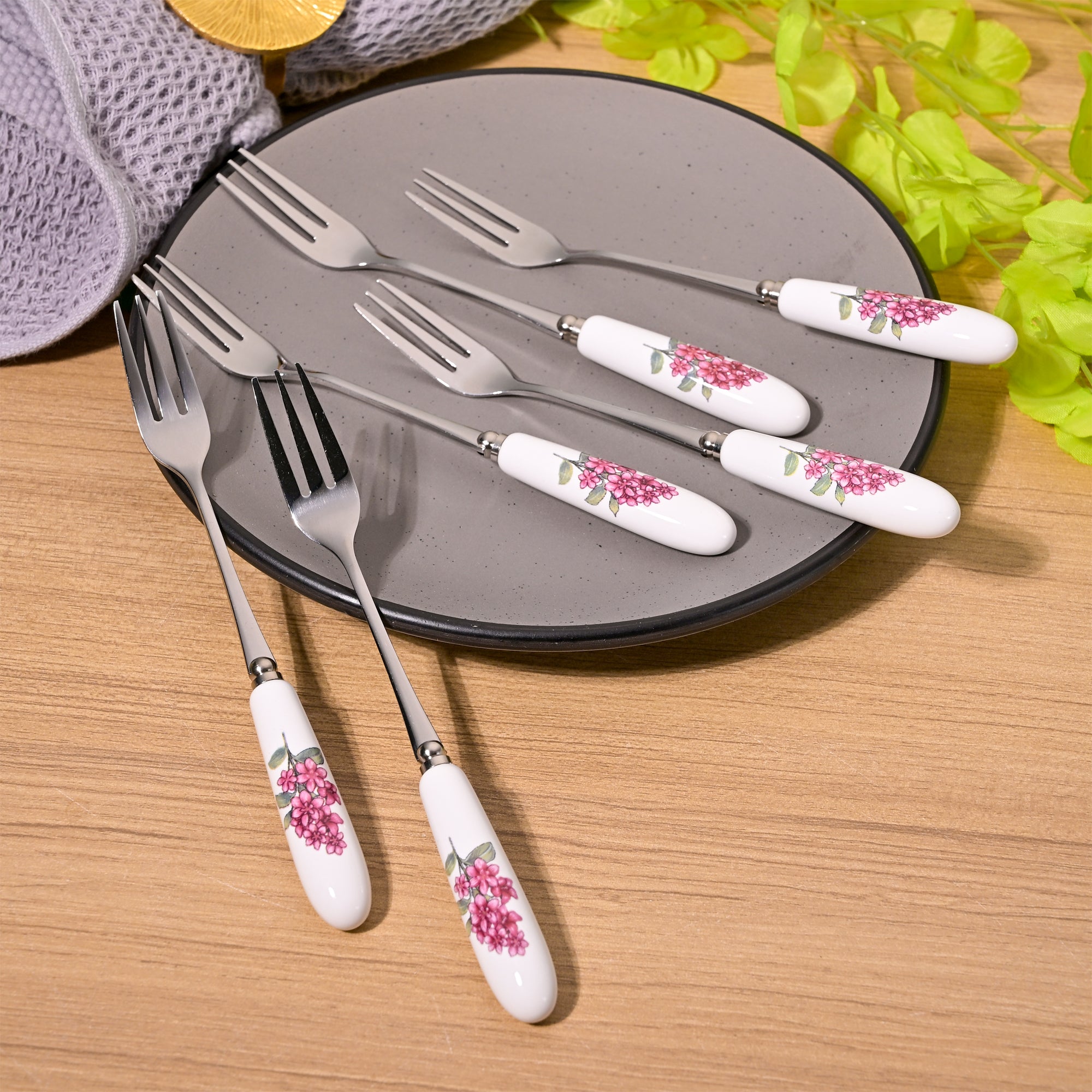 Lilac Bloom Ceramic-handled Dessert Fork (Set of 6)