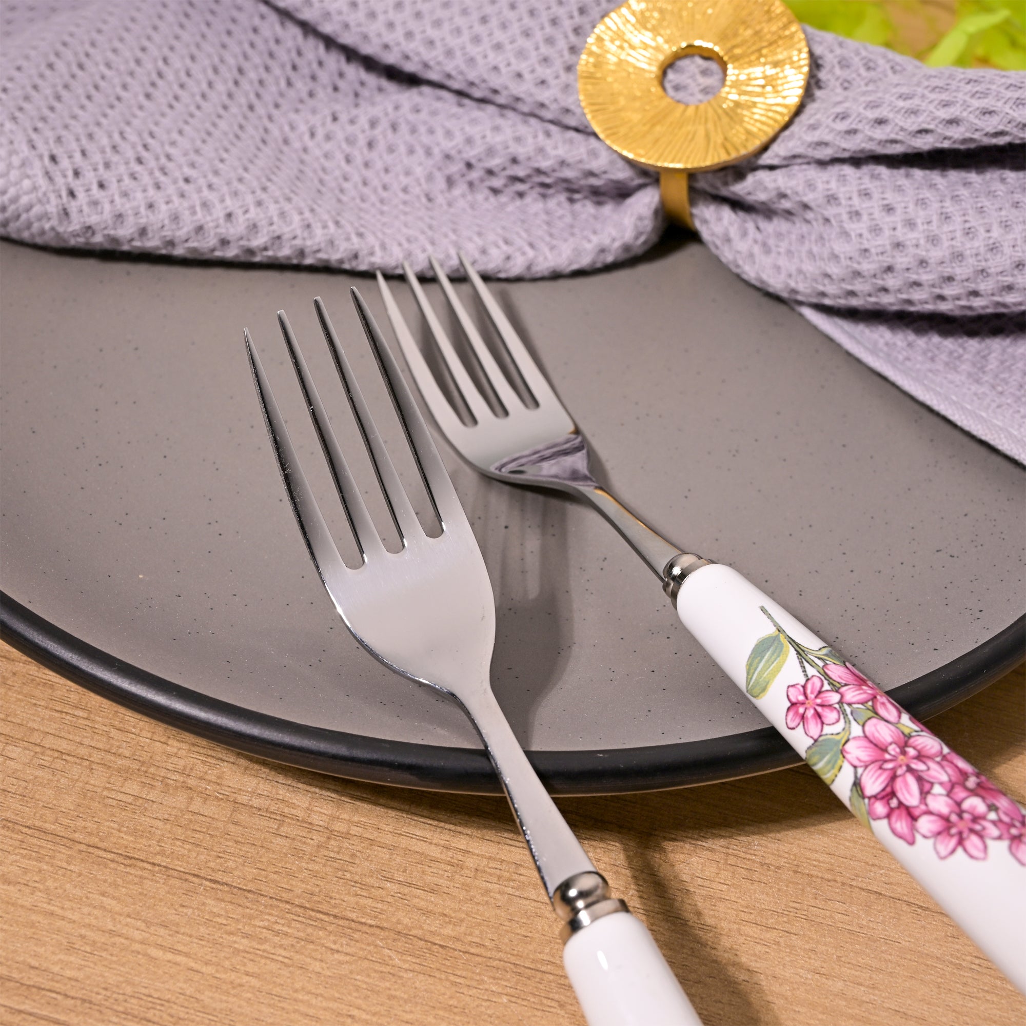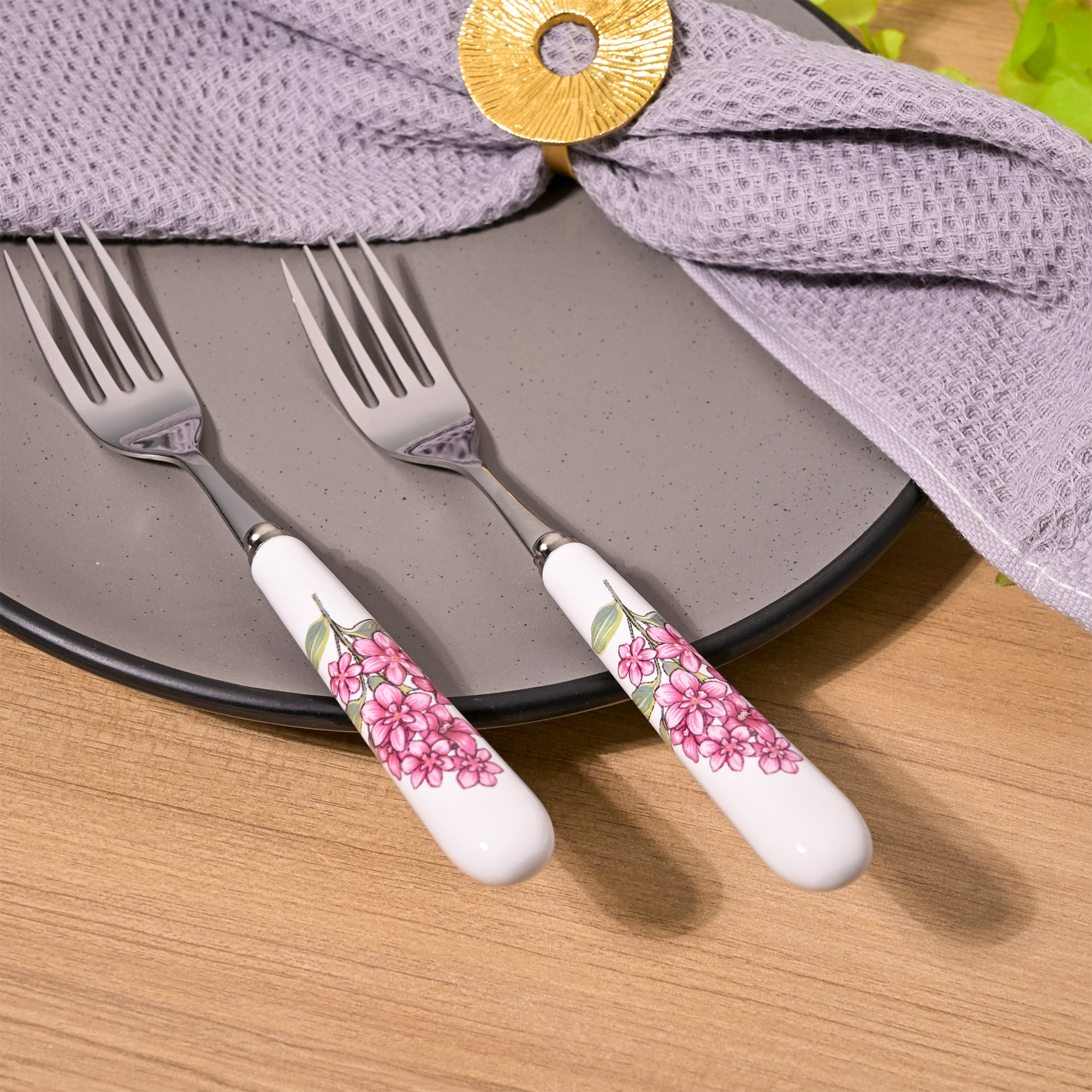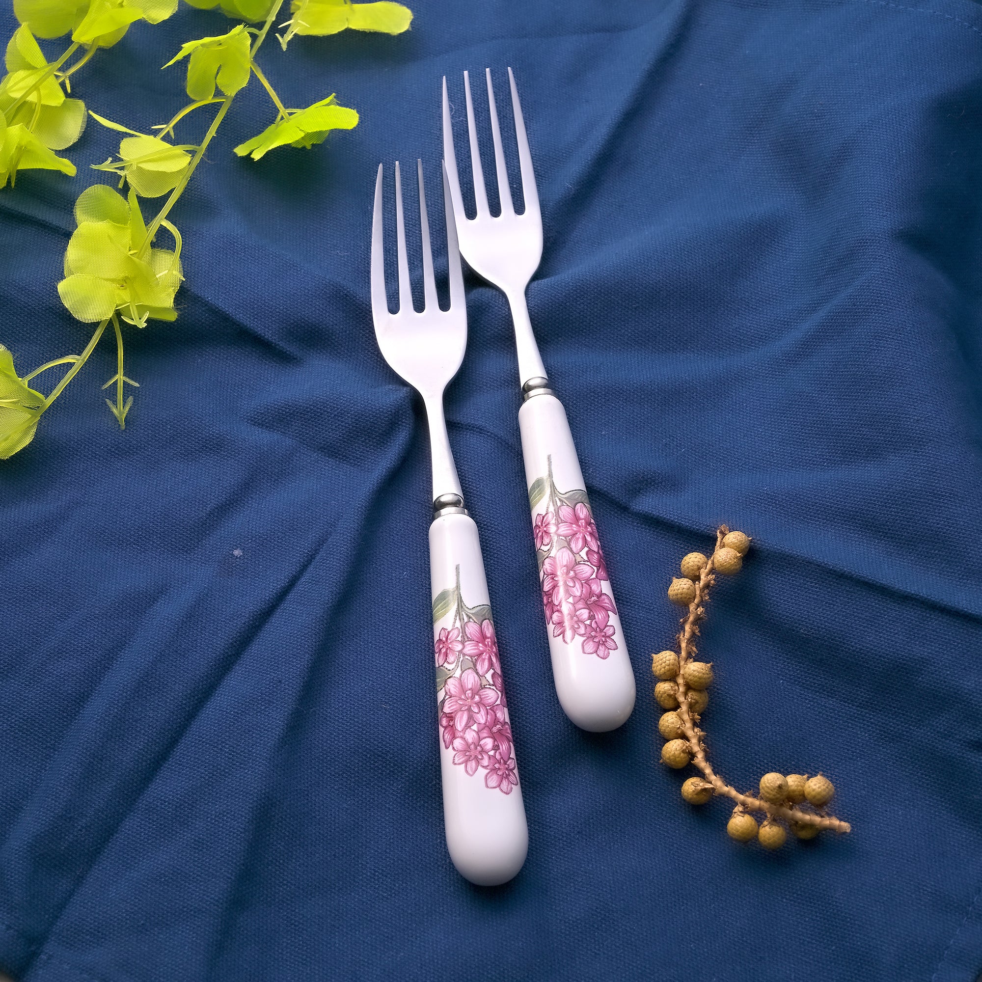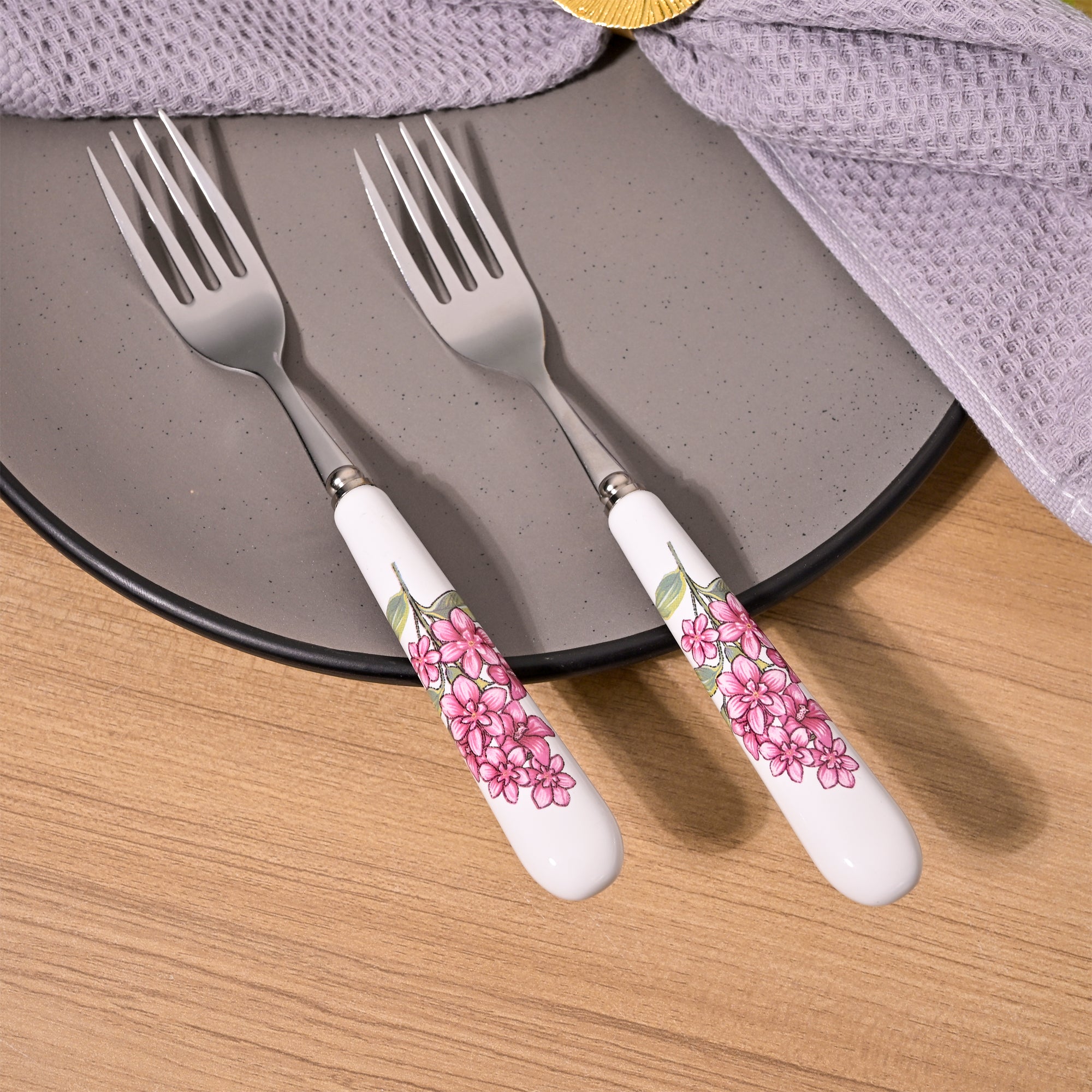 What makes it truly special? A delicate bouquet of lilac flowers painted across the white ceramic handle turning each fork into a piece of art. If you're looking for something classy with a fresh twist, this fork set adds charm and appeal to everything from salads to desserts.