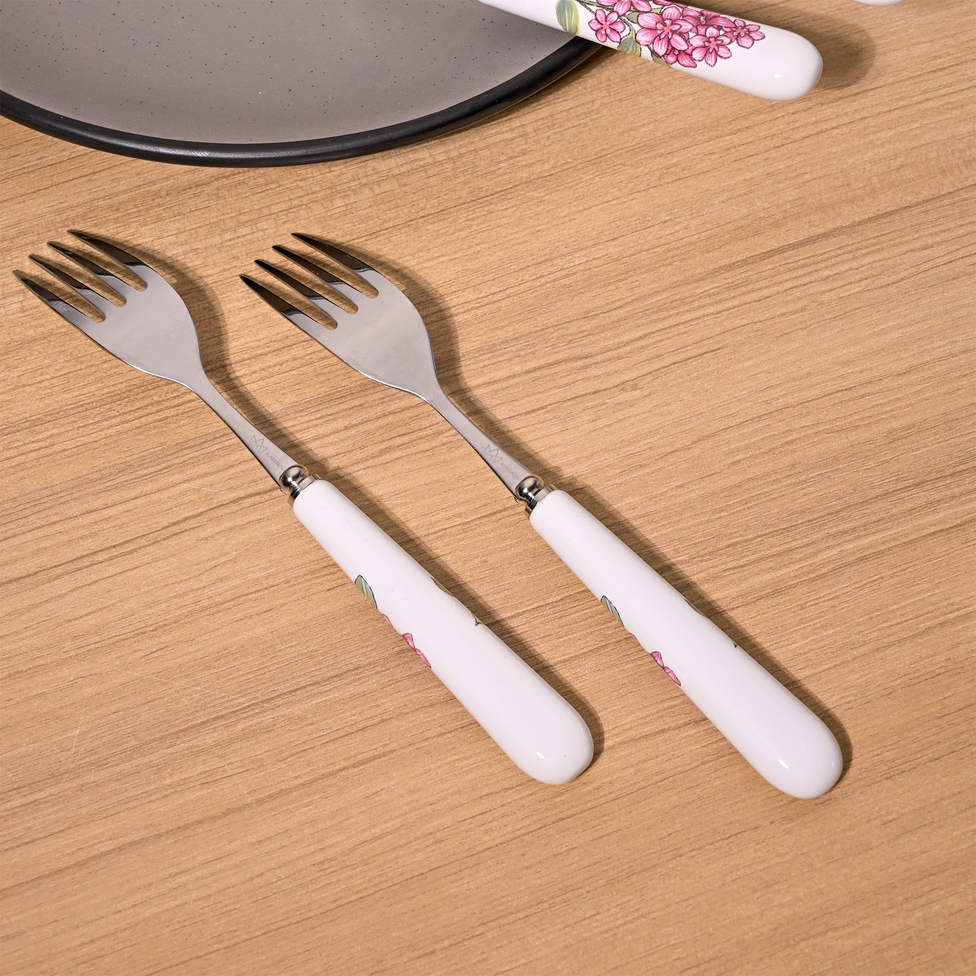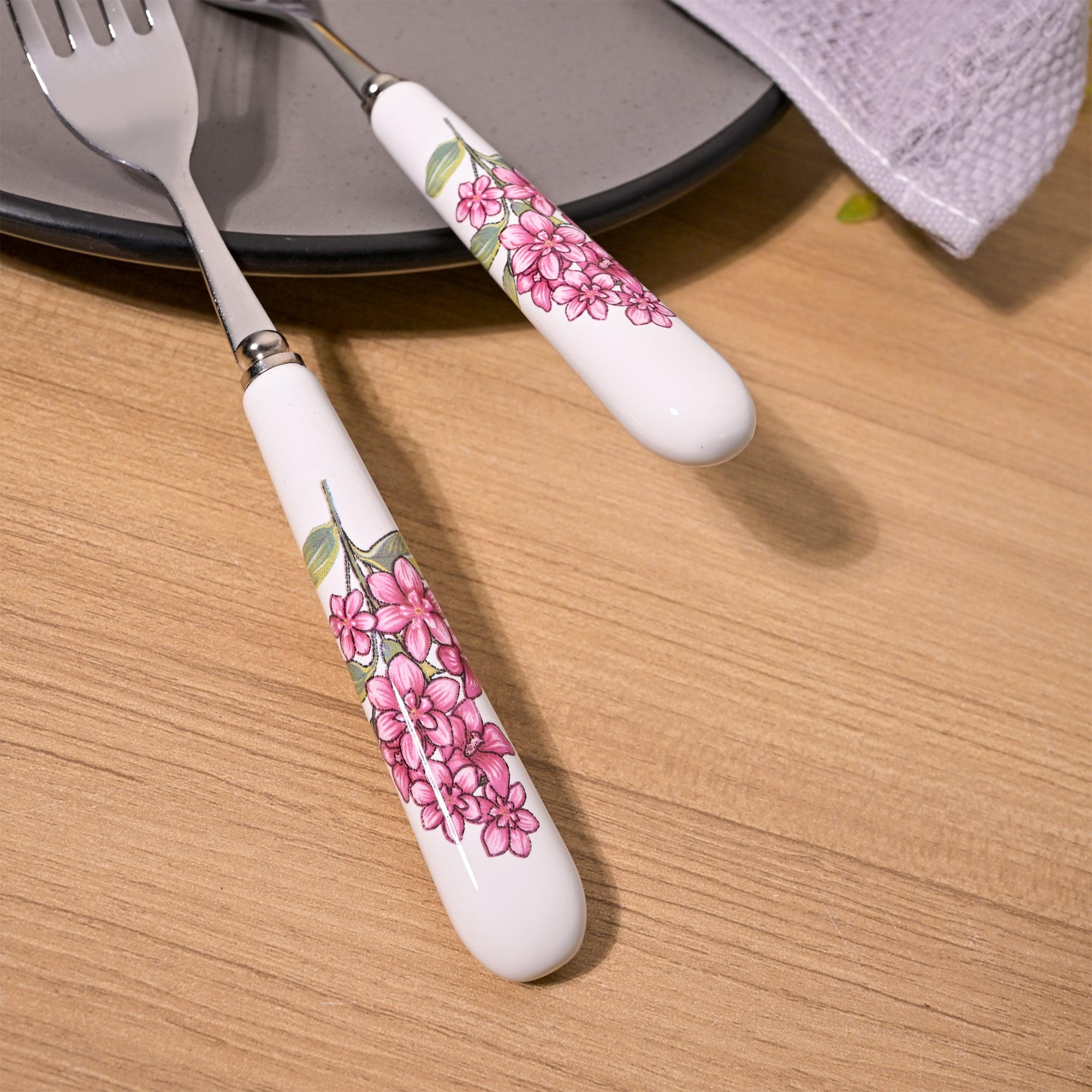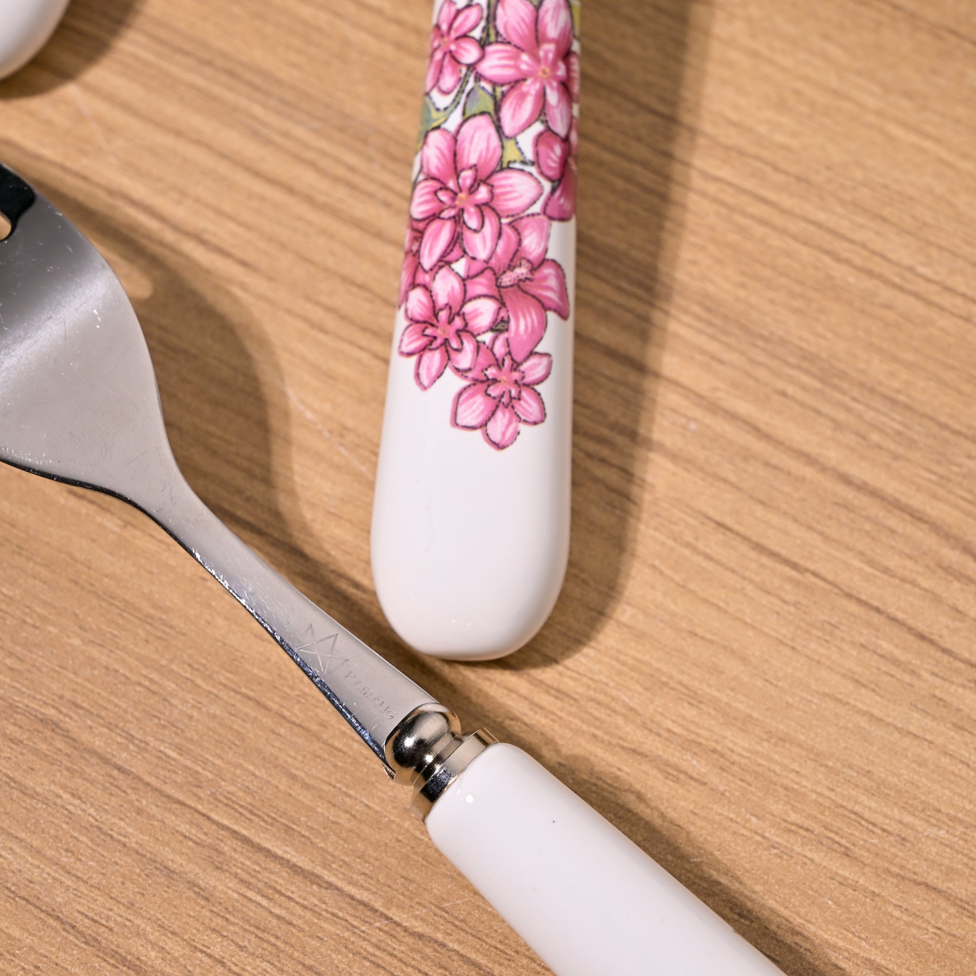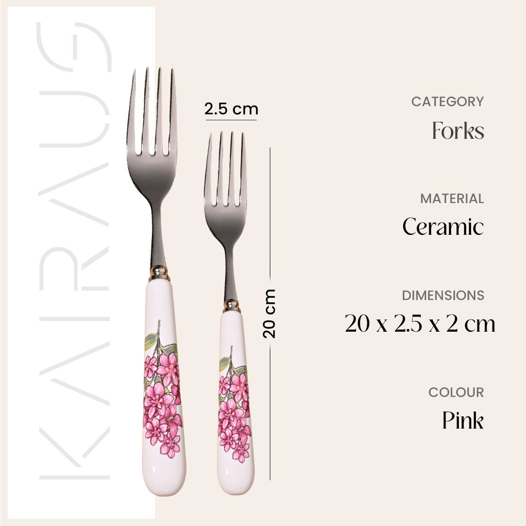 What makes it truly special? A delicate bouquet of lilac flowers painted across the white ceramic handle turning each fork into a piece of art. If you're looking for something classy with a fresh twist, this fork set adds charm and appeal to everything from salads to desserts.