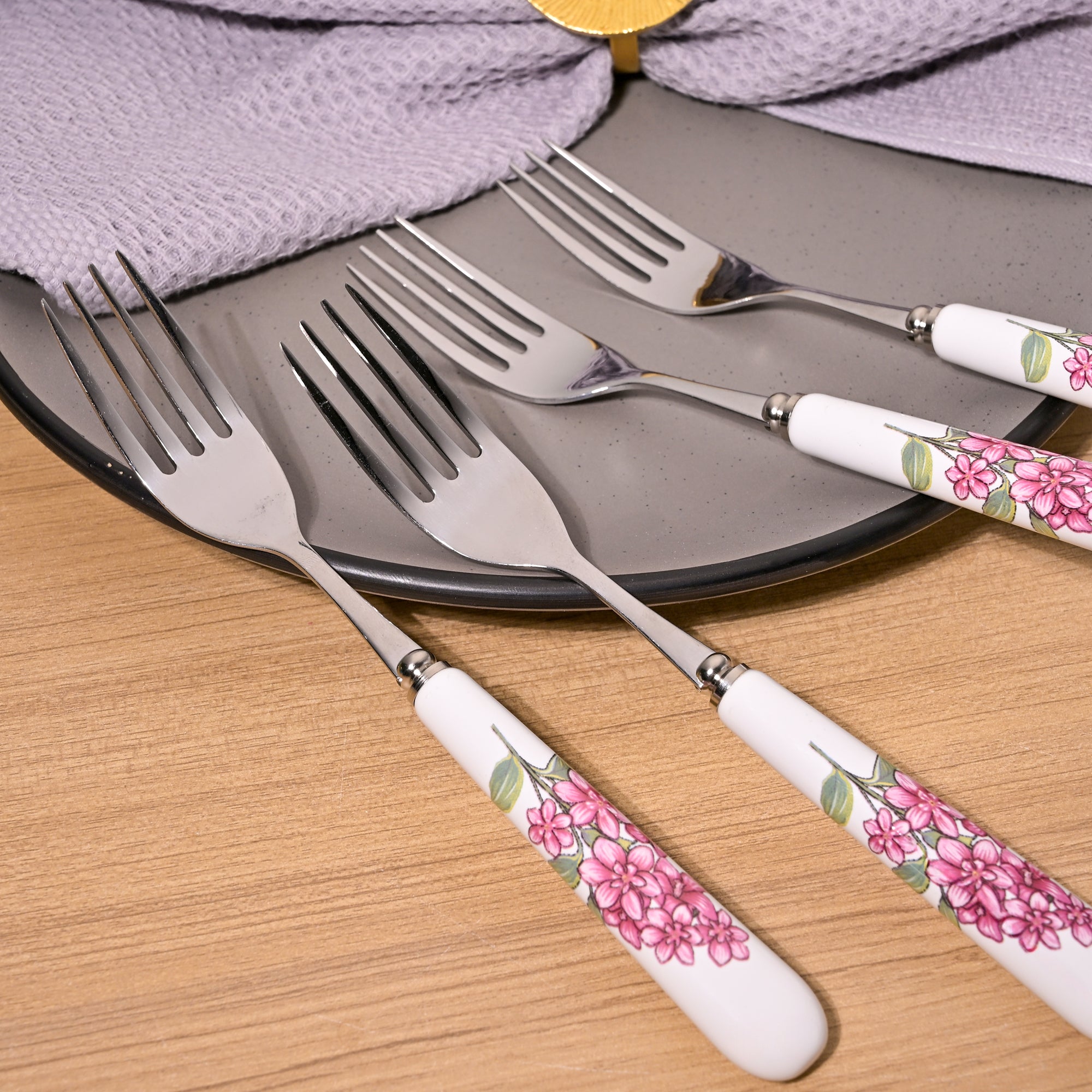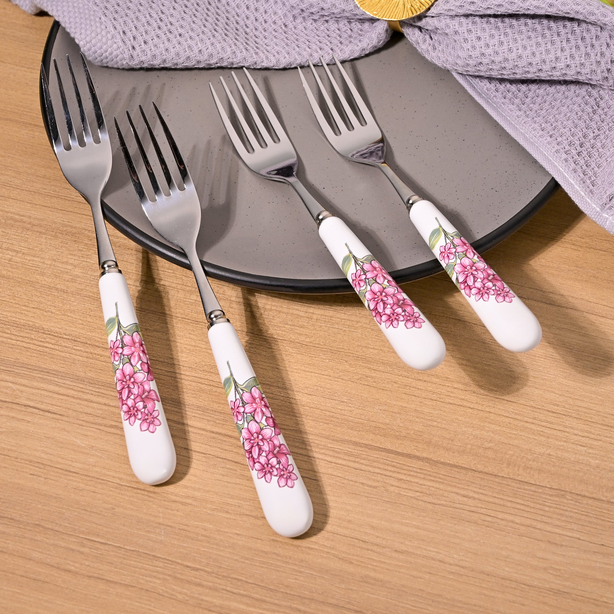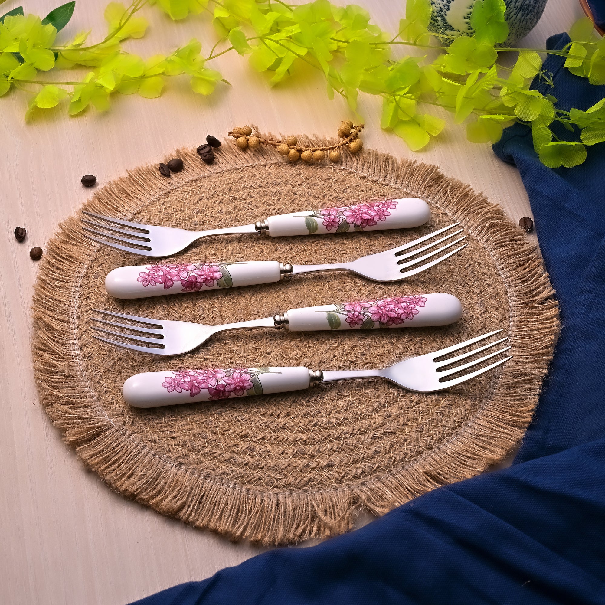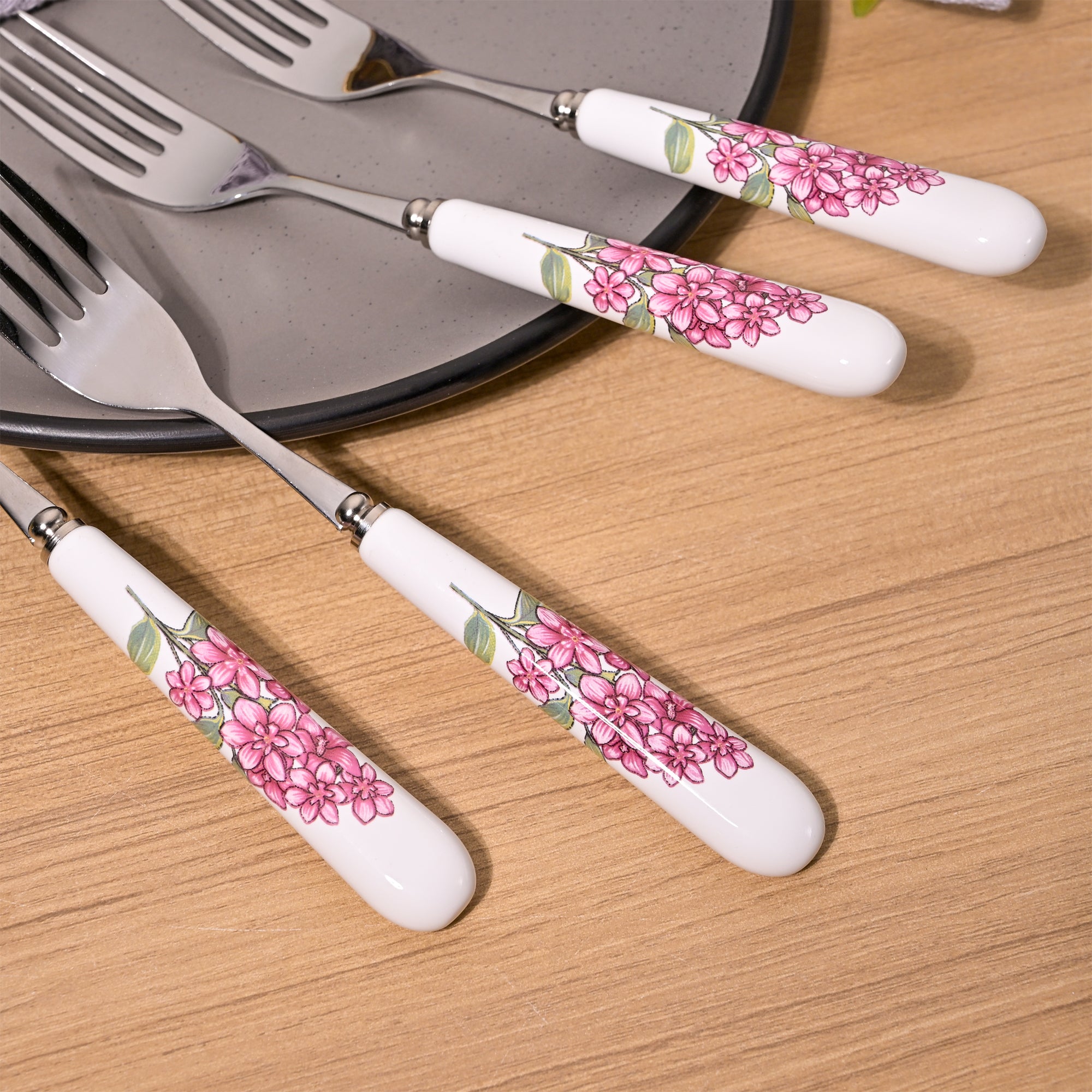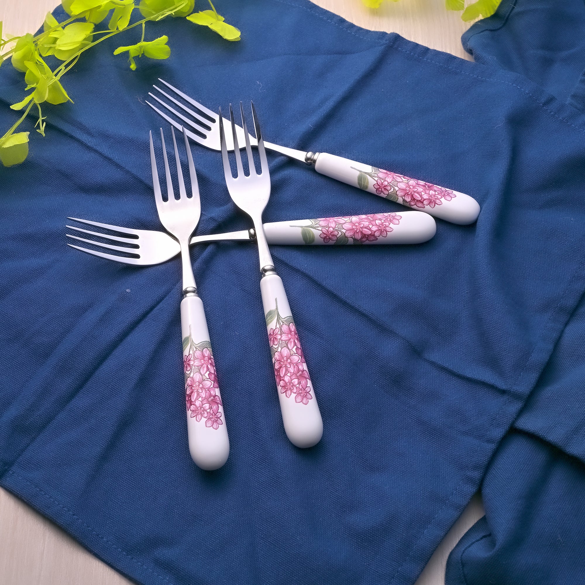 What makes it truly special? A delicate bouquet of lilac flowers painted across the white ceramic handle turning each fork into a piece of art. If you're looking for something classy with a fresh twist, this fork set adds charm and appeal to everything from salads to desserts.