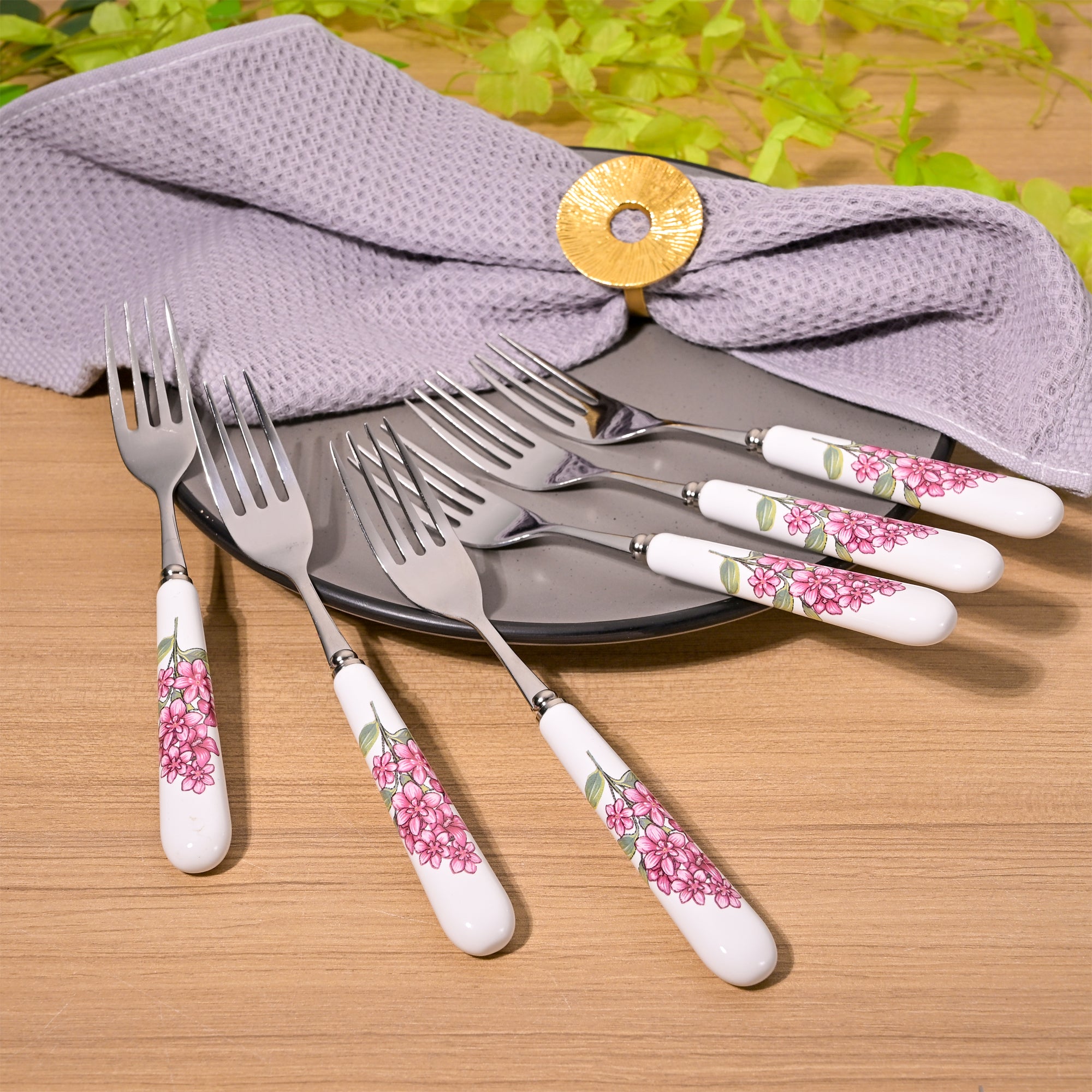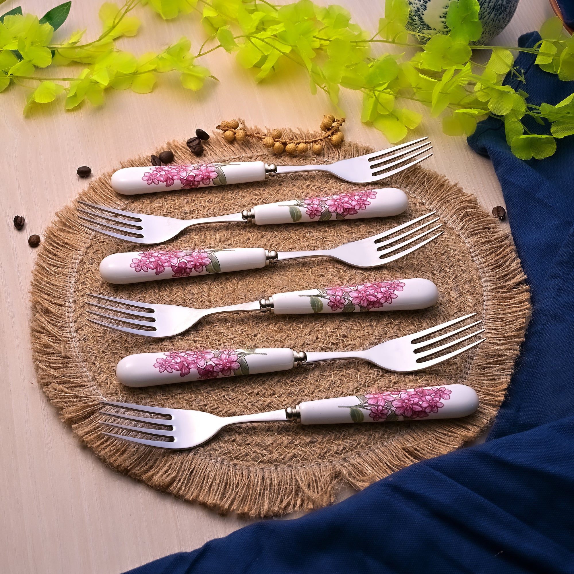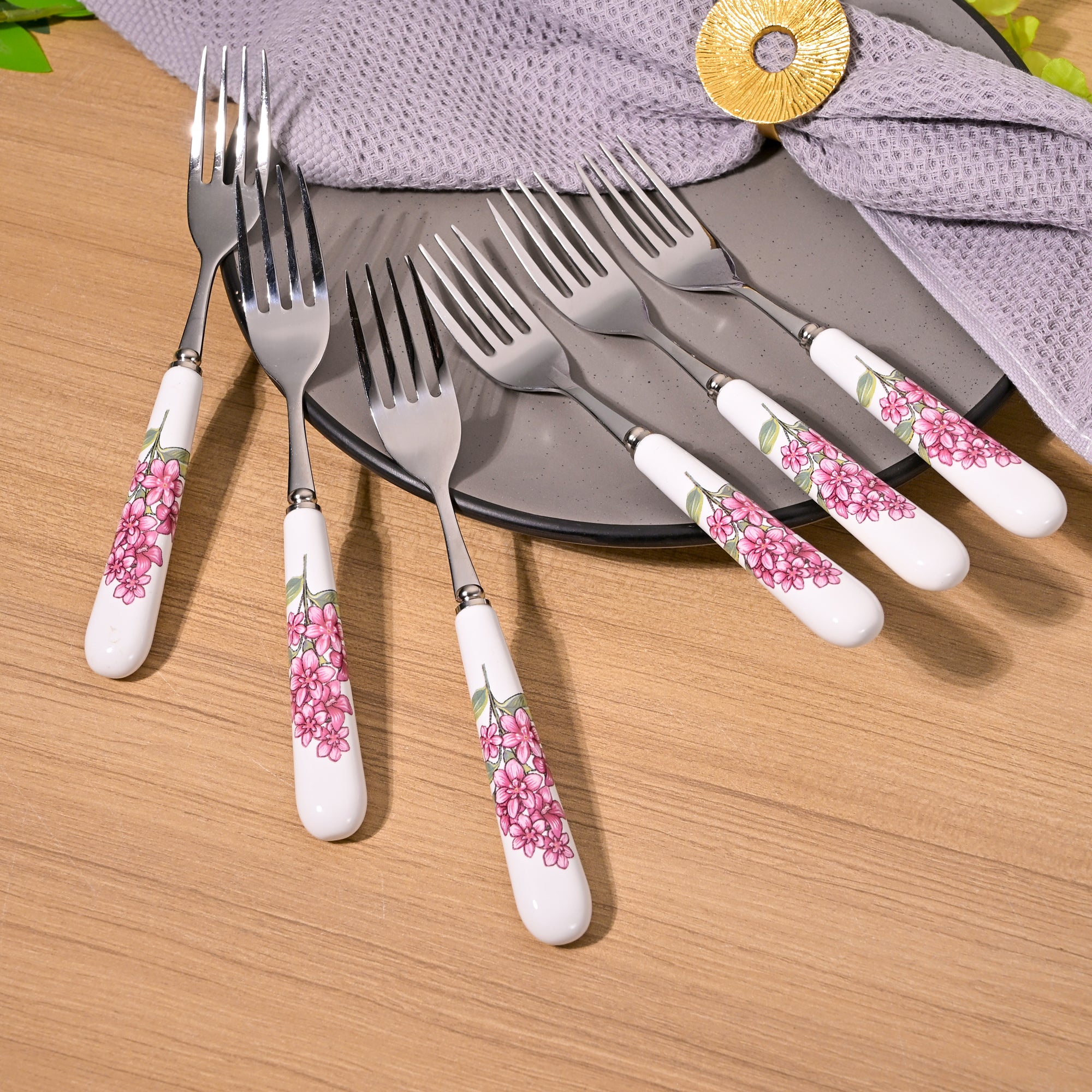 What makes it truly special? A delicate bouquet of lilac flowers painted across the white ceramic handle turning each fork into a piece of art. If you're looking for something classy with a fresh twist, this fork set adds charm and appeal to everything from salads to desserts.