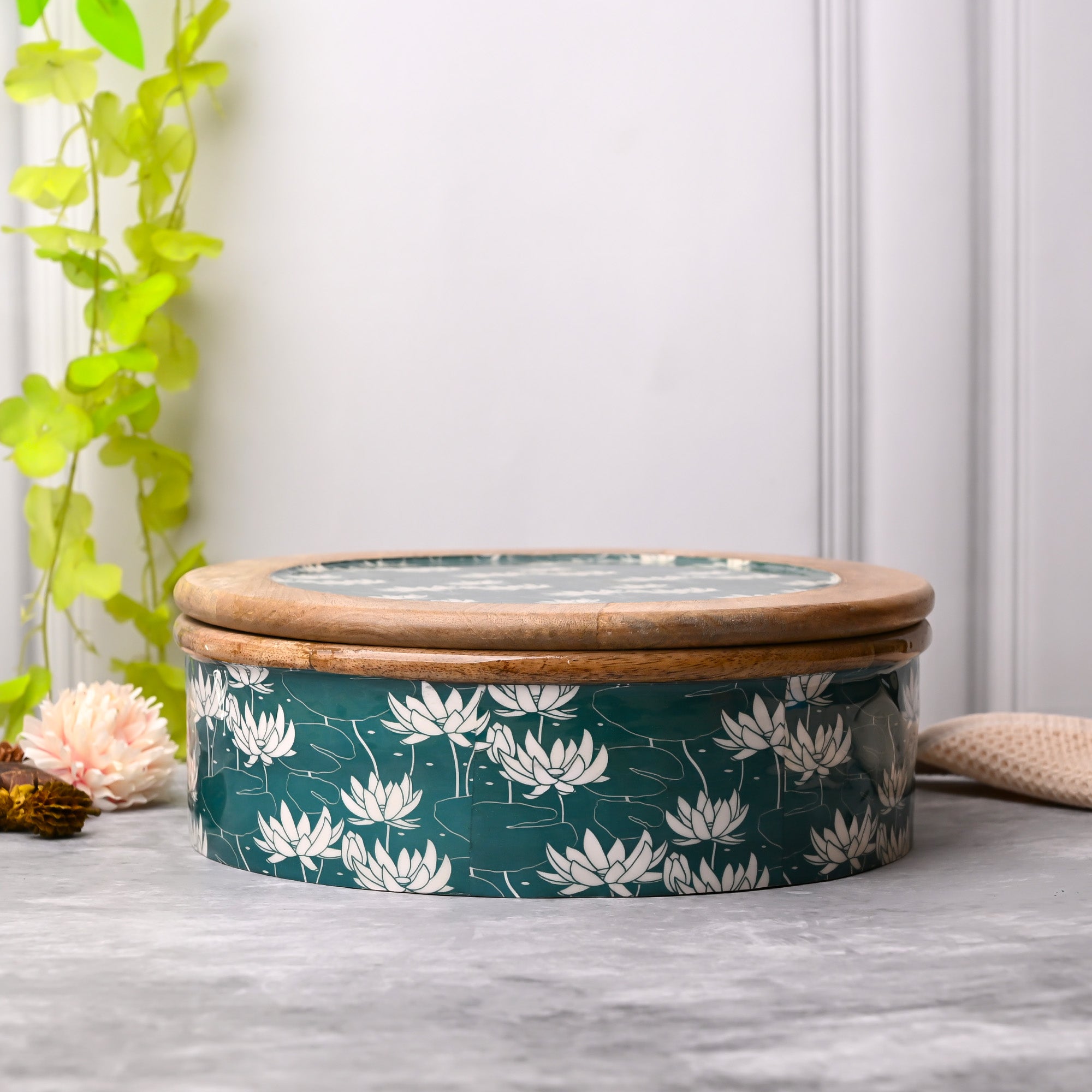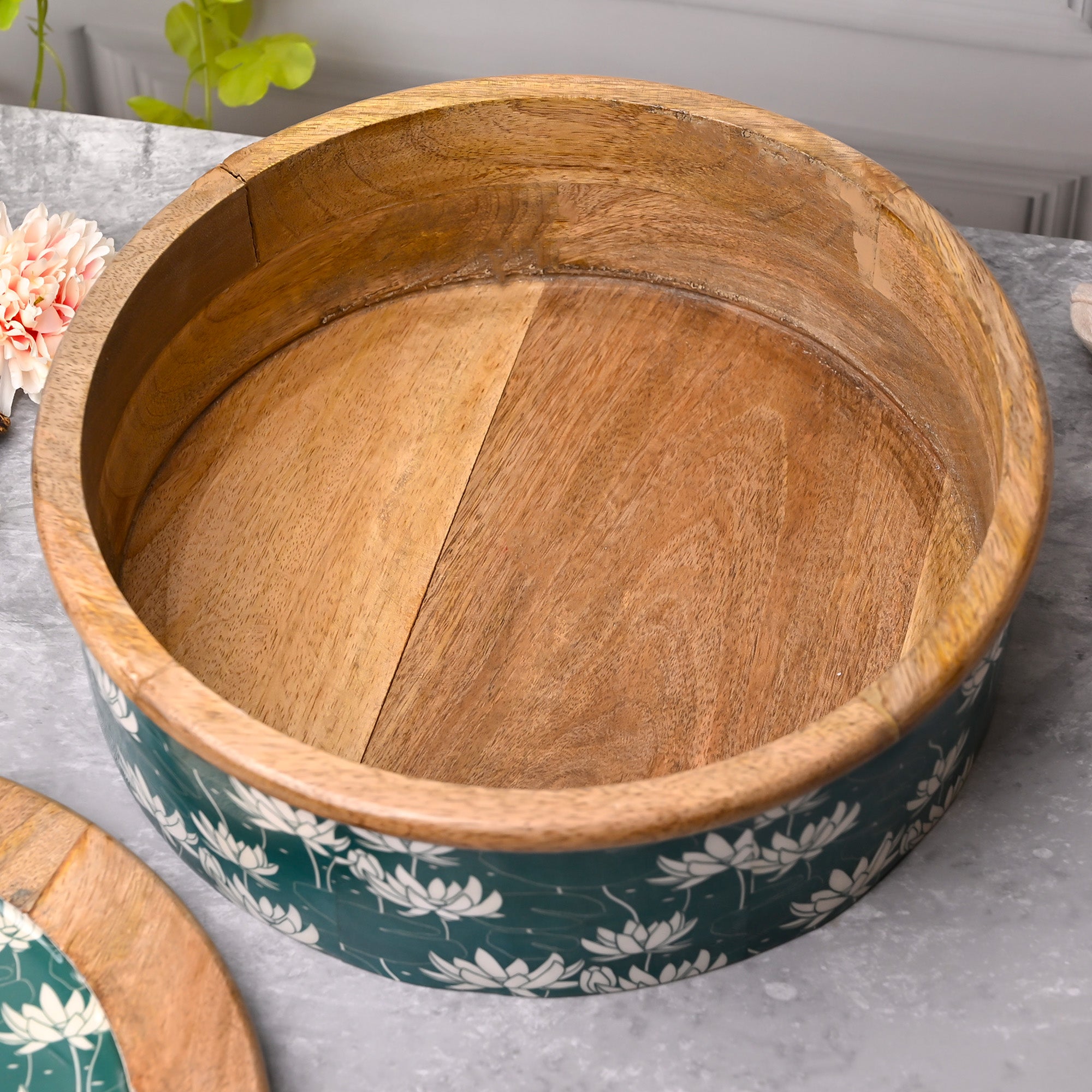 COD availableDitch the ordinary with our Lotus-Flamed Exceptional Wooden Casserole, as they are dipped with juices of craftsmanship, luxe-touch, and laquesh finishing. Cherry on the cake is the dark-toned yet minimal lotus abstract patterns that chase the attention. Far from mass production, these casseroles are durable, strong, and have absolutely perfect dimensions. Overall, a perfect addition to your collection of urban dining/ tableware.