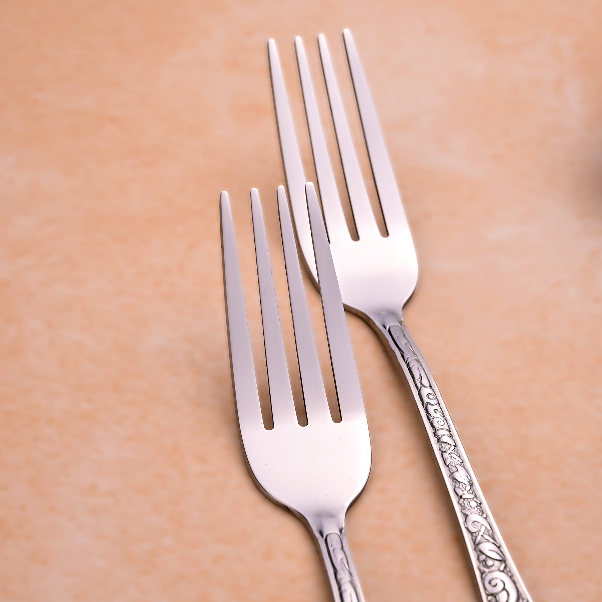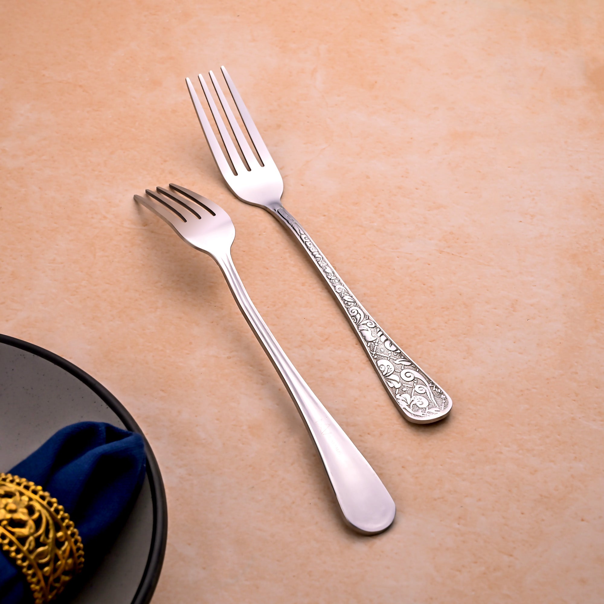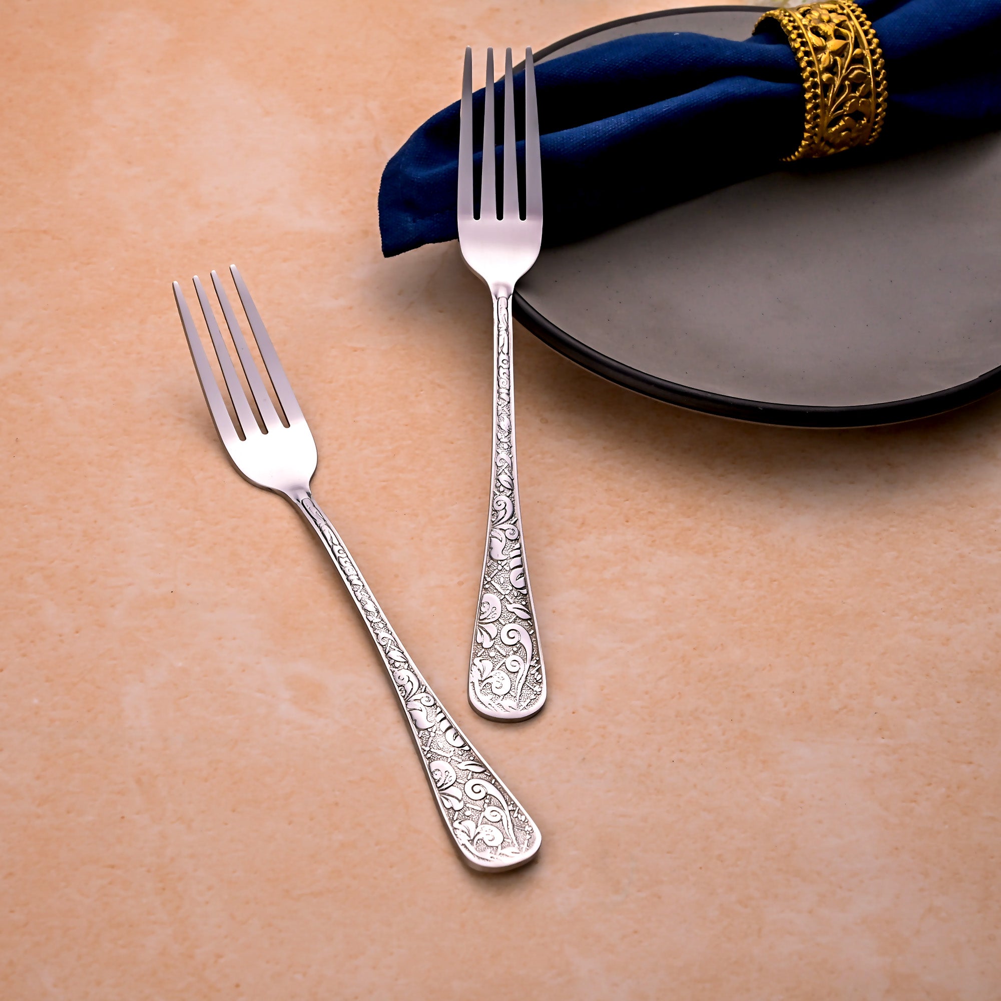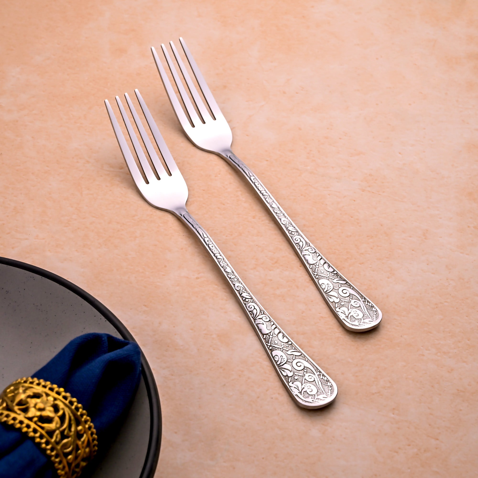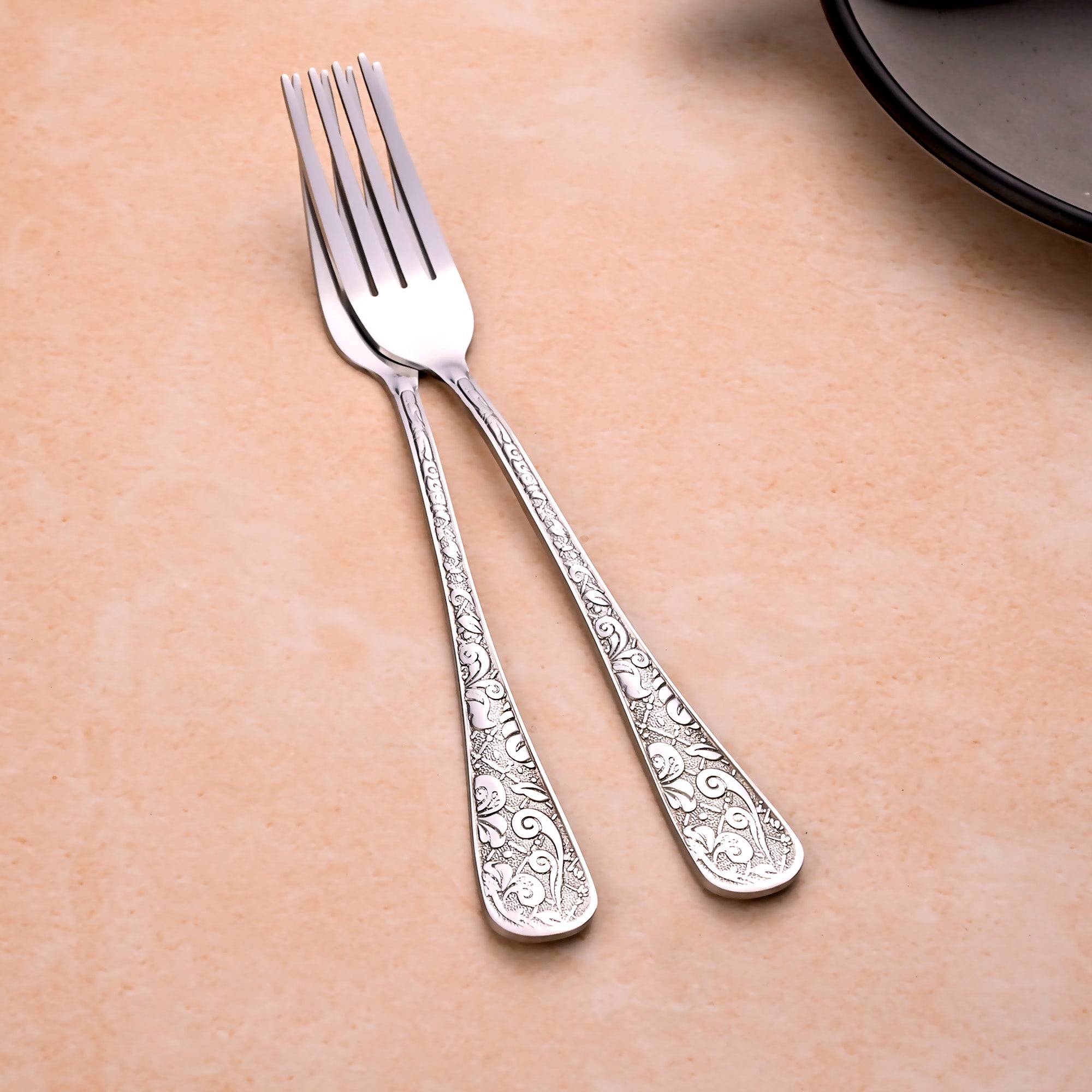 COD availableThe Lustre Bloom Silver Fork Set brings elegance to your dining table. Inspired by traditional fine silverware, this set of stainless steel fork has exquisitely crafted handles with elaborate Baroque-style patterns.