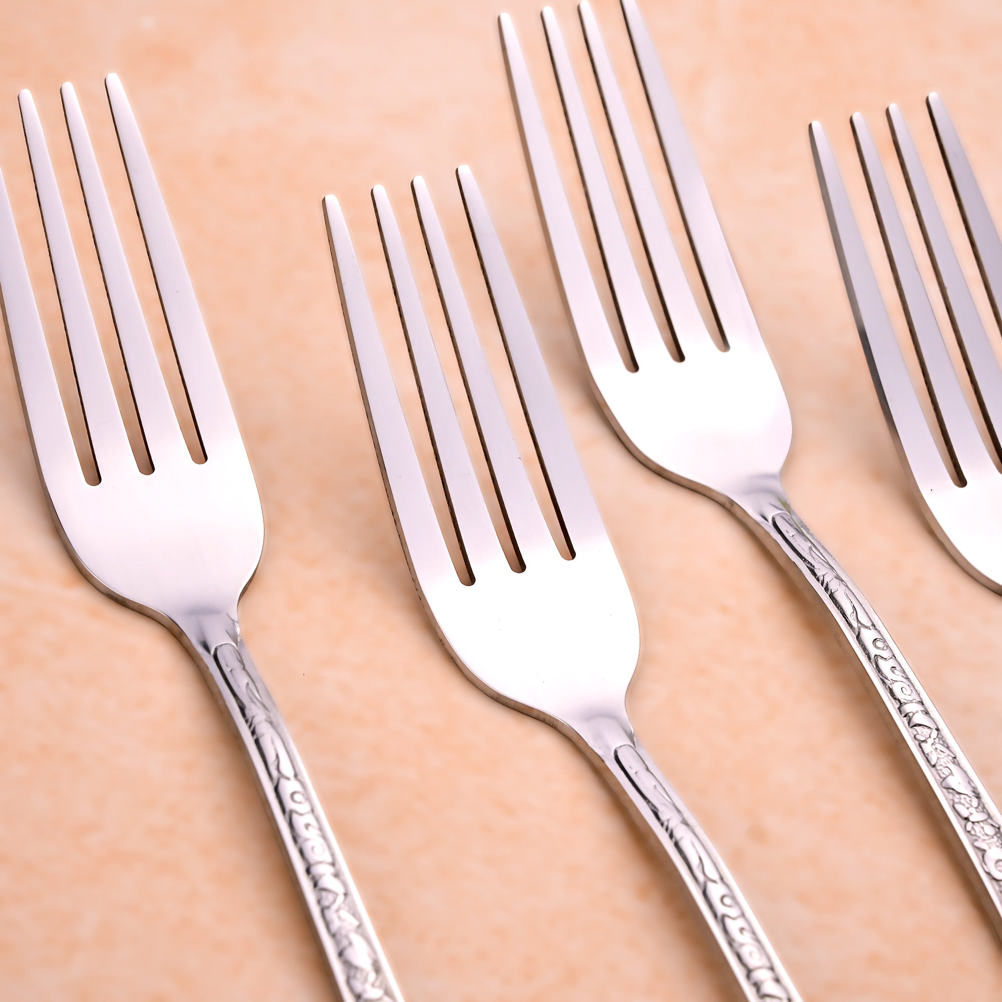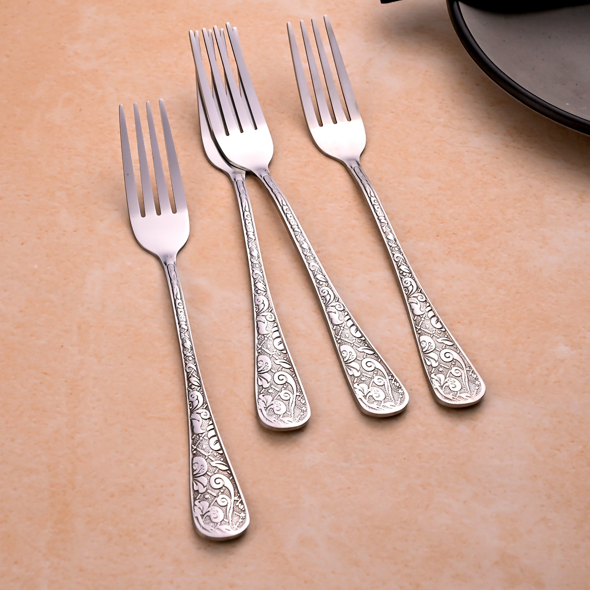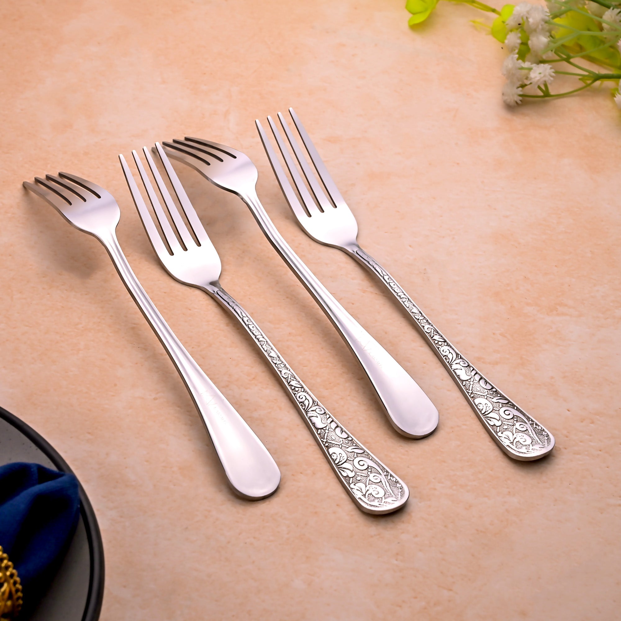 COD availableThe Lustre Bloom Silver Fork Set brings elegance to your dining table. Inspired by traditional fine silverware, this set of stainless steel fork has exquisitely crafted handles with elaborate Baroque-style patterns.