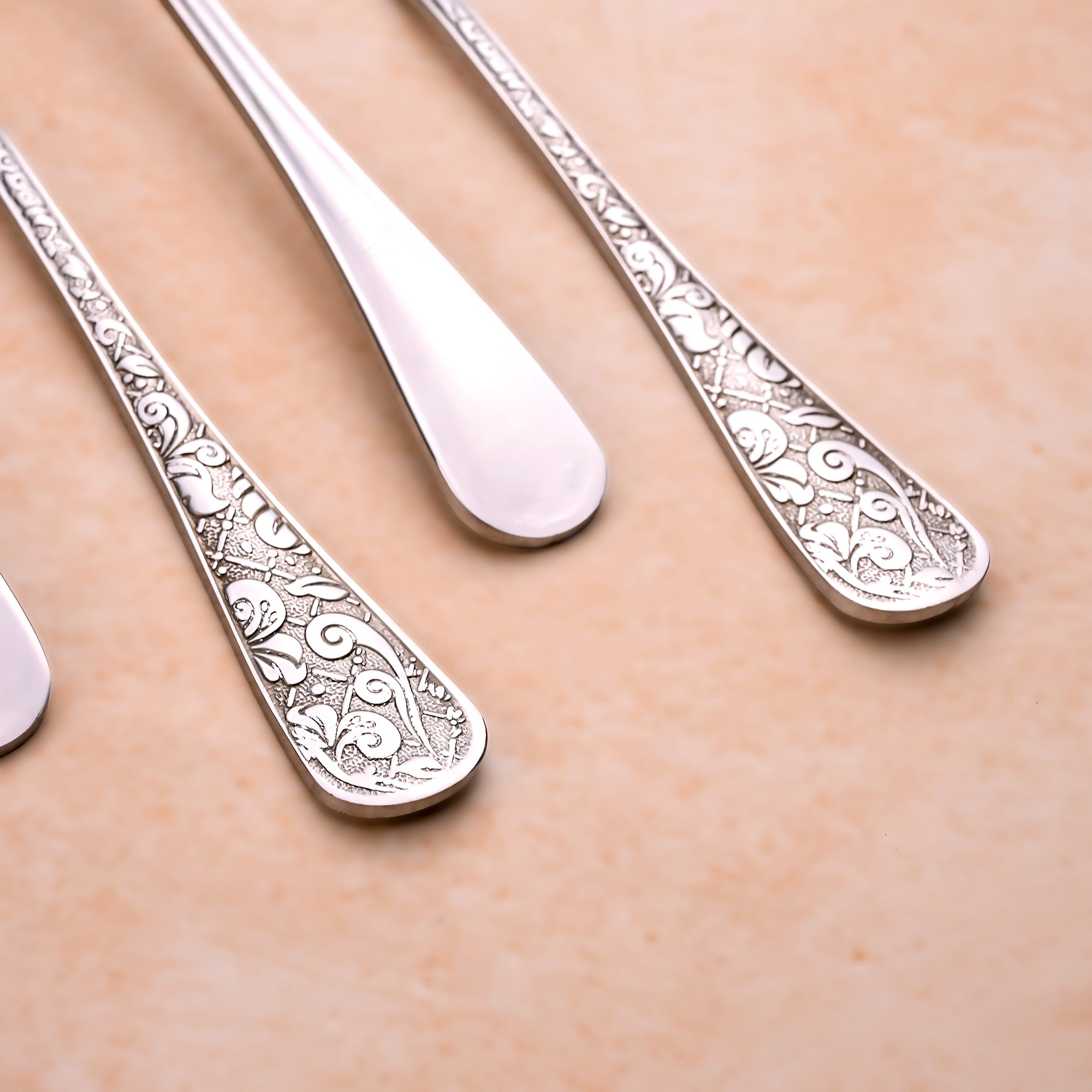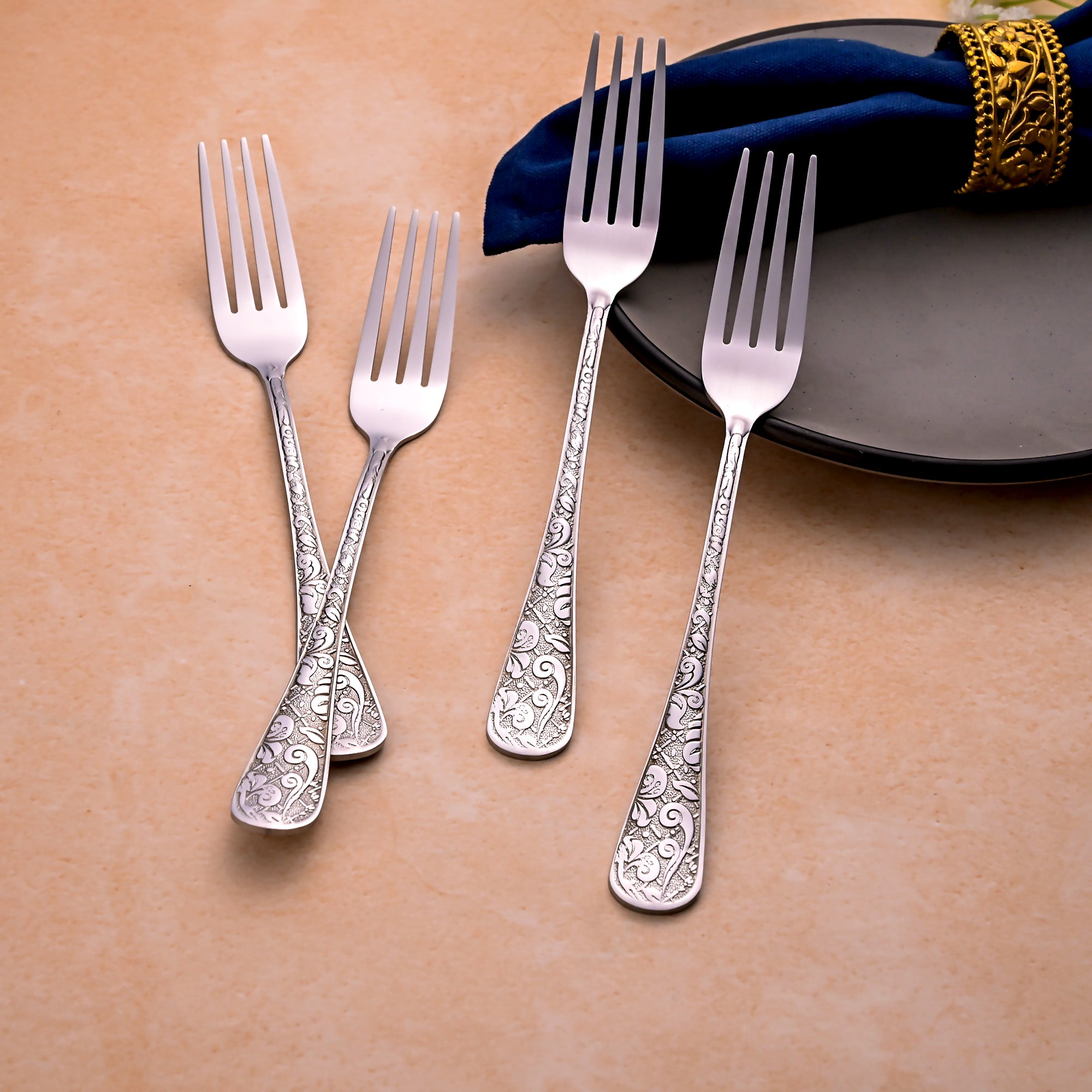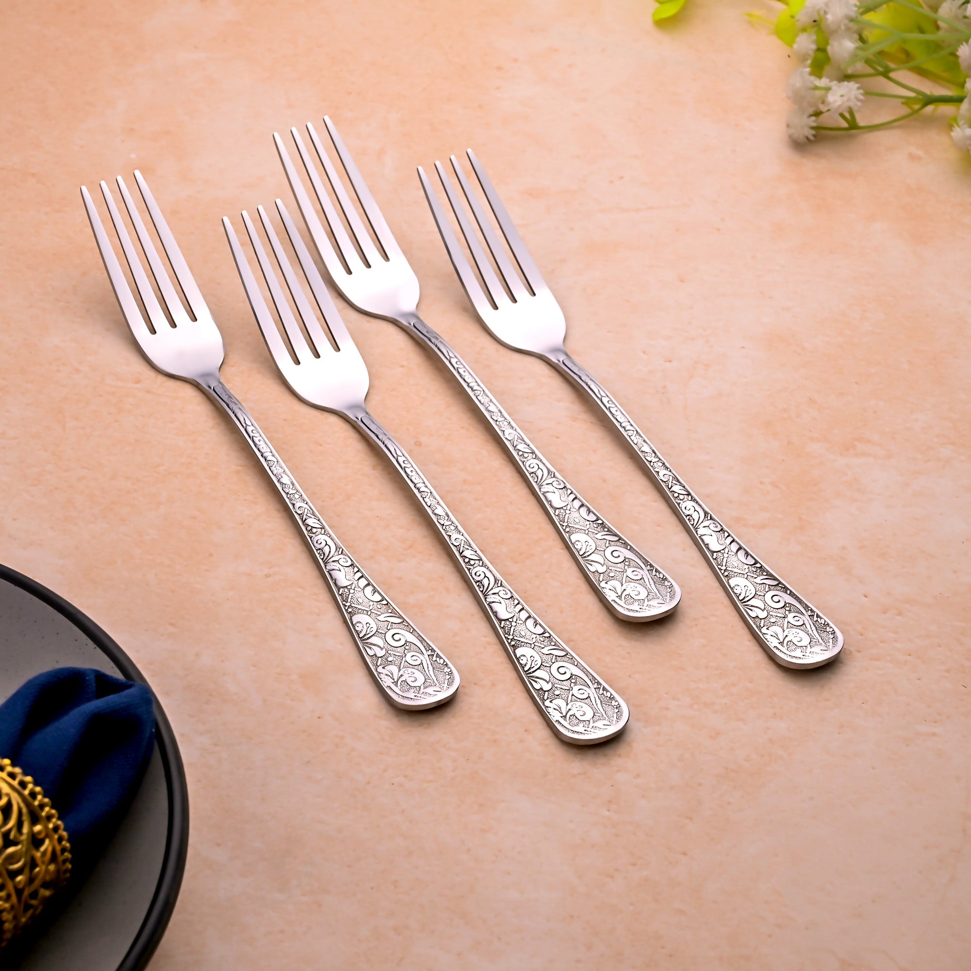 COD availableThe Lustre Bloom Silver Fork Set brings elegance to your dining table. Inspired by traditional fine silverware, this set of stainless steel fork has exquisitely crafted handles with elaborate Baroque-style patterns.