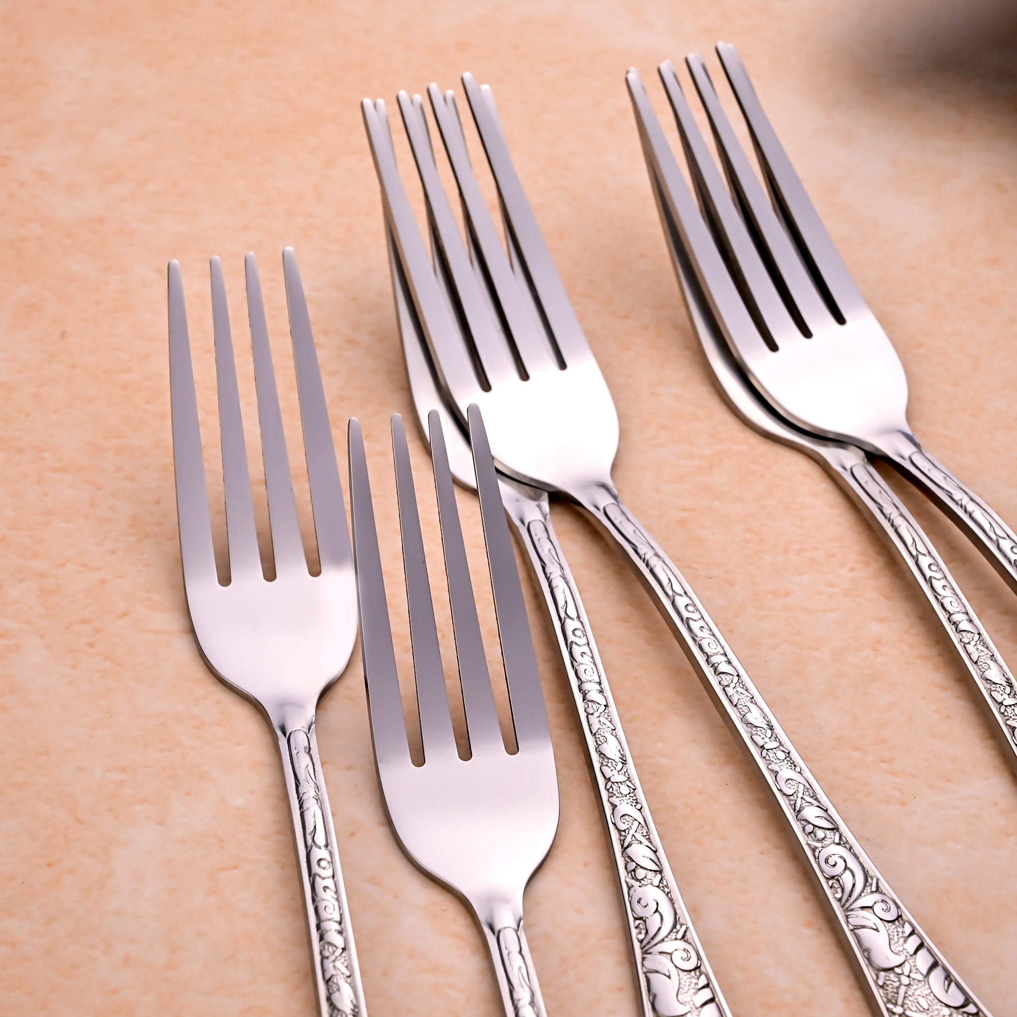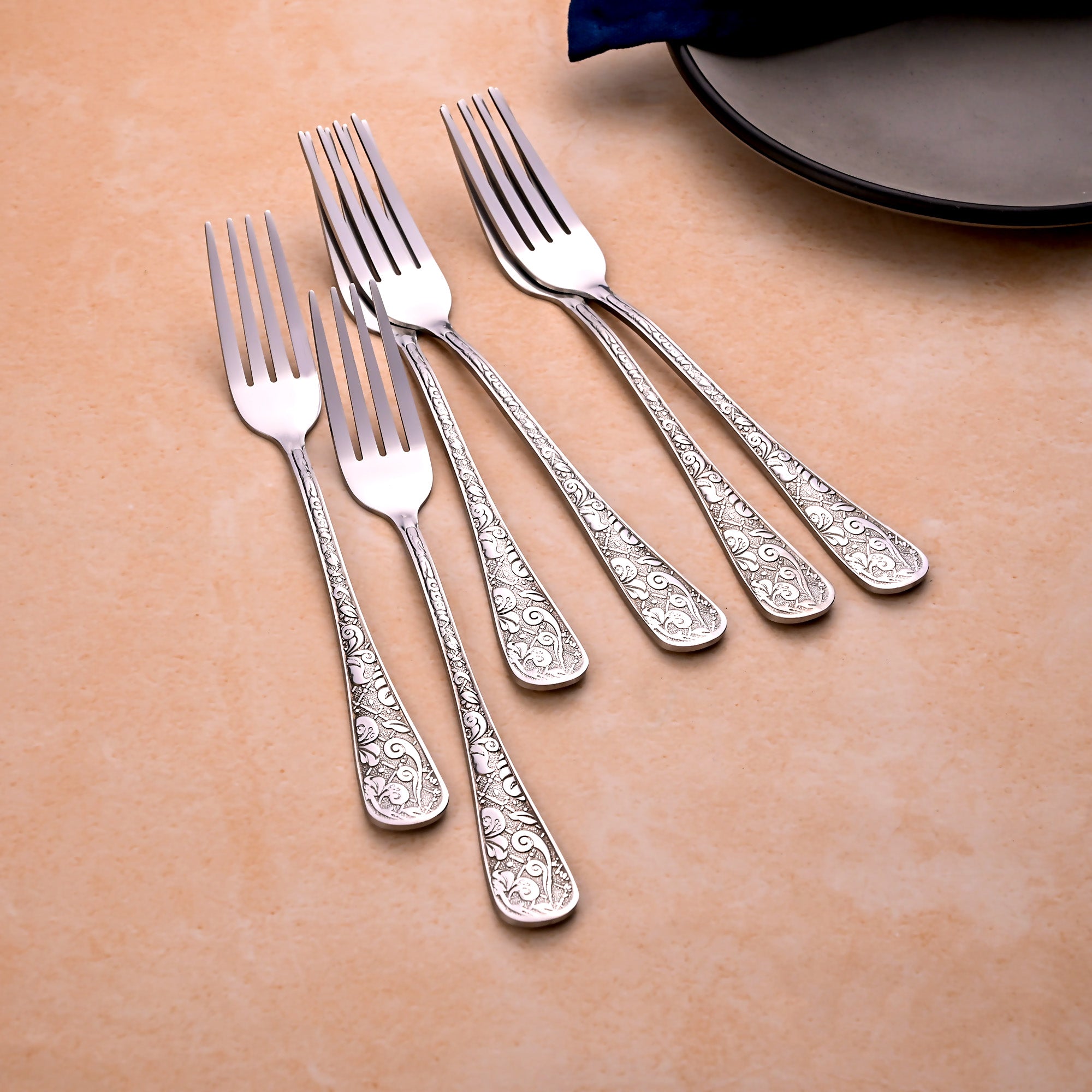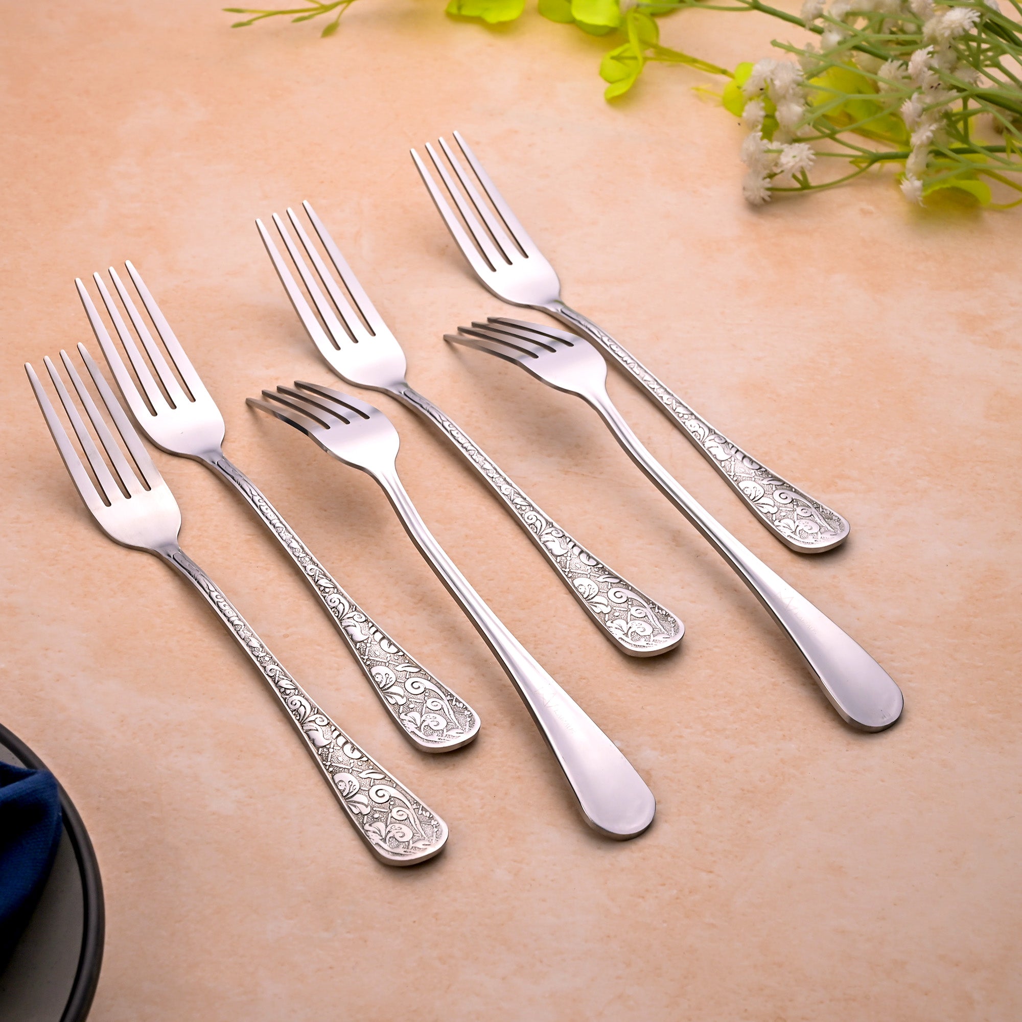 COD availableThe Lustre Bloom Silver Fork Set brings elegance to your dining table. Inspired by traditional fine silverware, this set of stainless steel fork has exquisitely crafted handles with elaborate Baroque-style patterns.