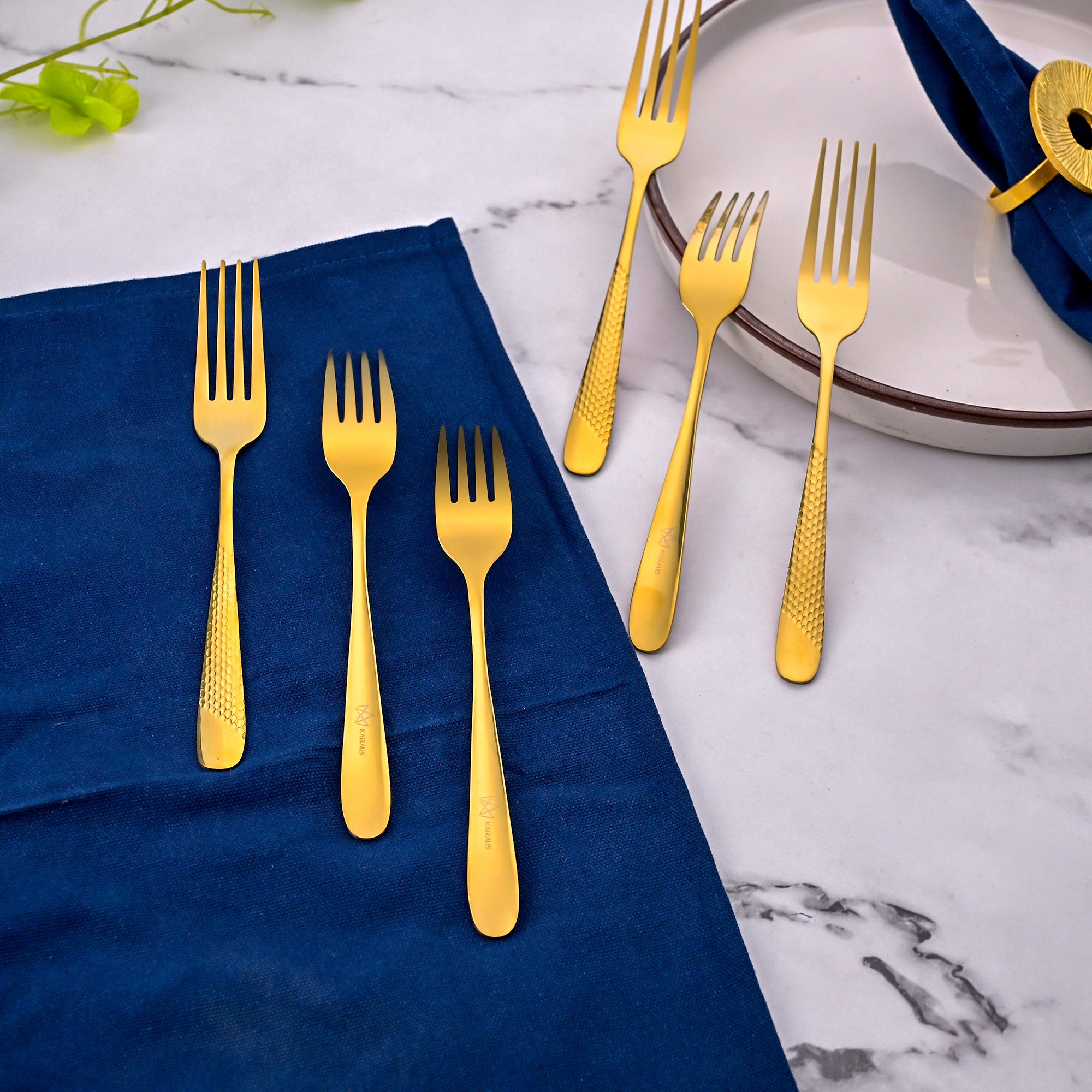 Luxe Stainless Steel Golden Dessert Forks (Set of 6)