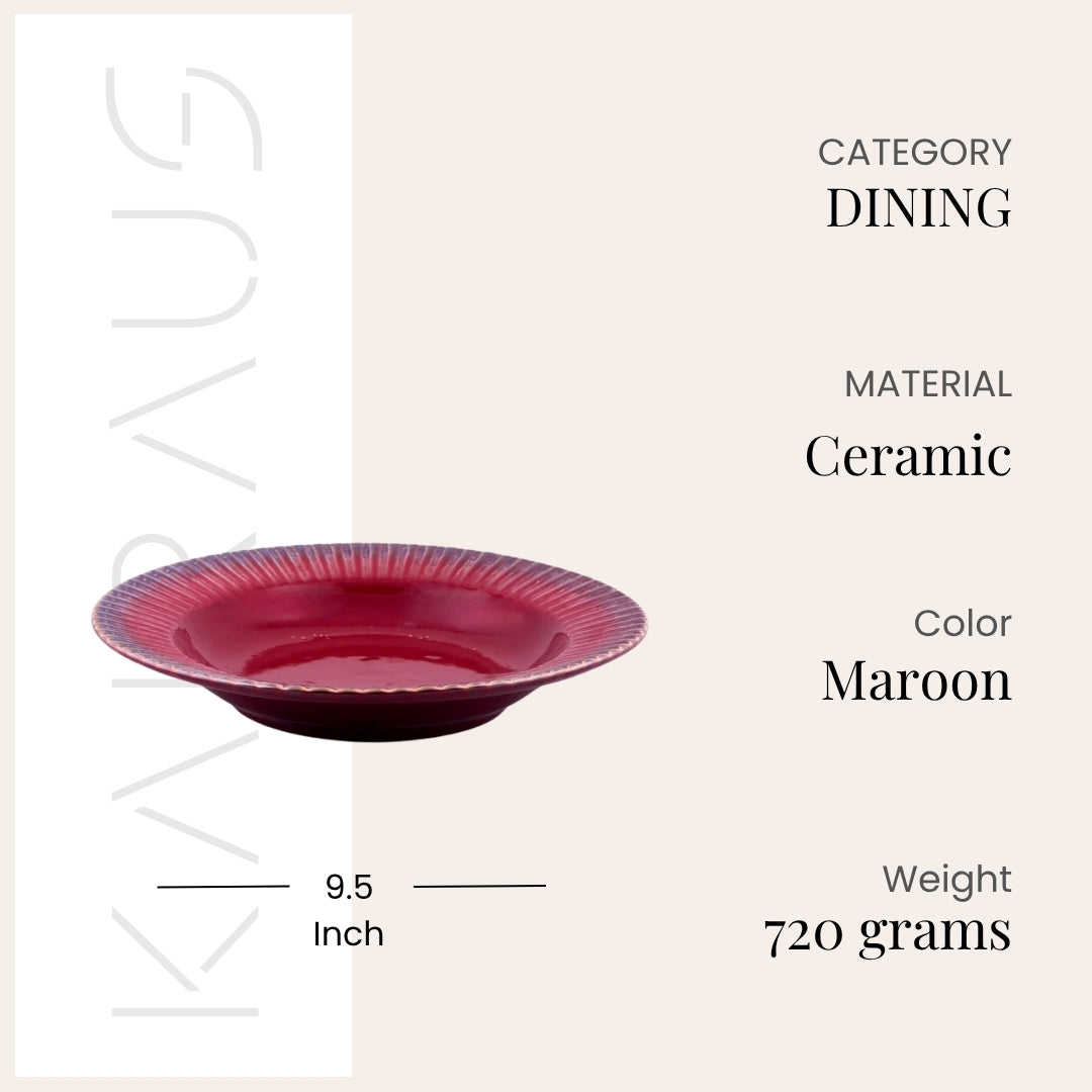 Majestic Maroon Ceramic Pasta Plates Set of 2 (9.5 inch)