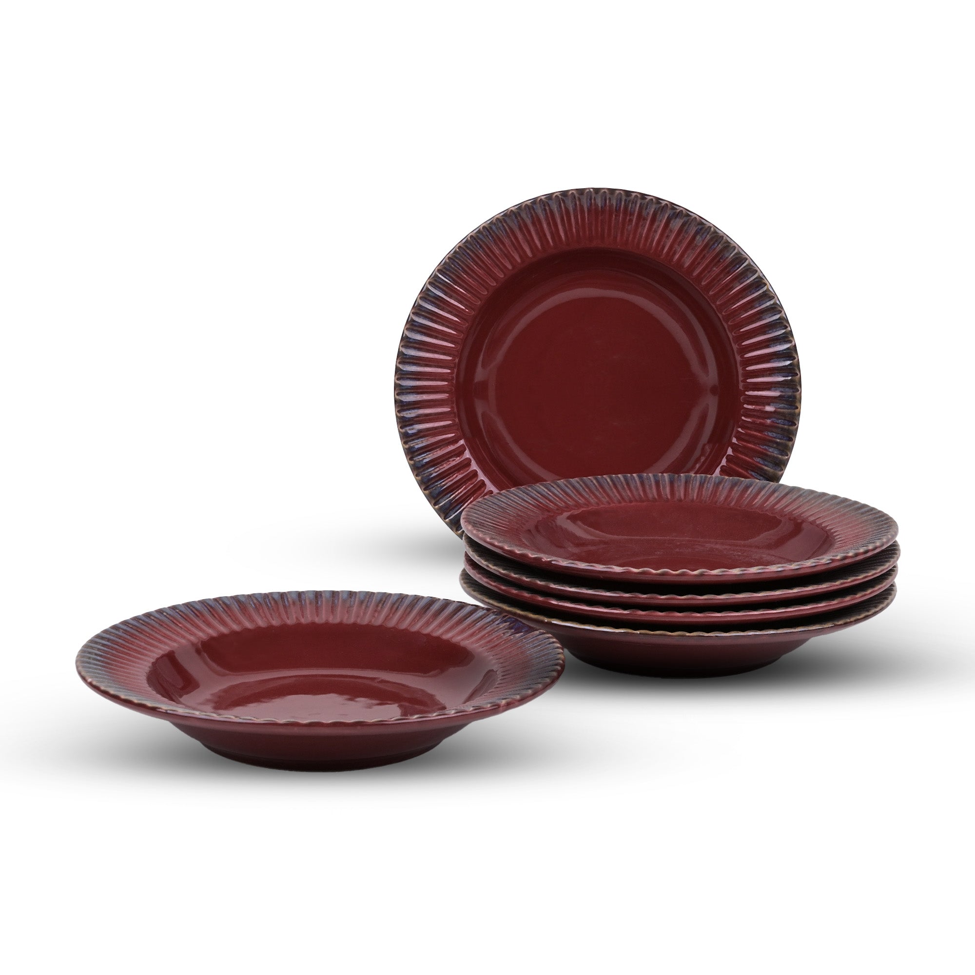 Majestic Maroon Ceramic Pasta Plates Set of 6 (9.5 inch)