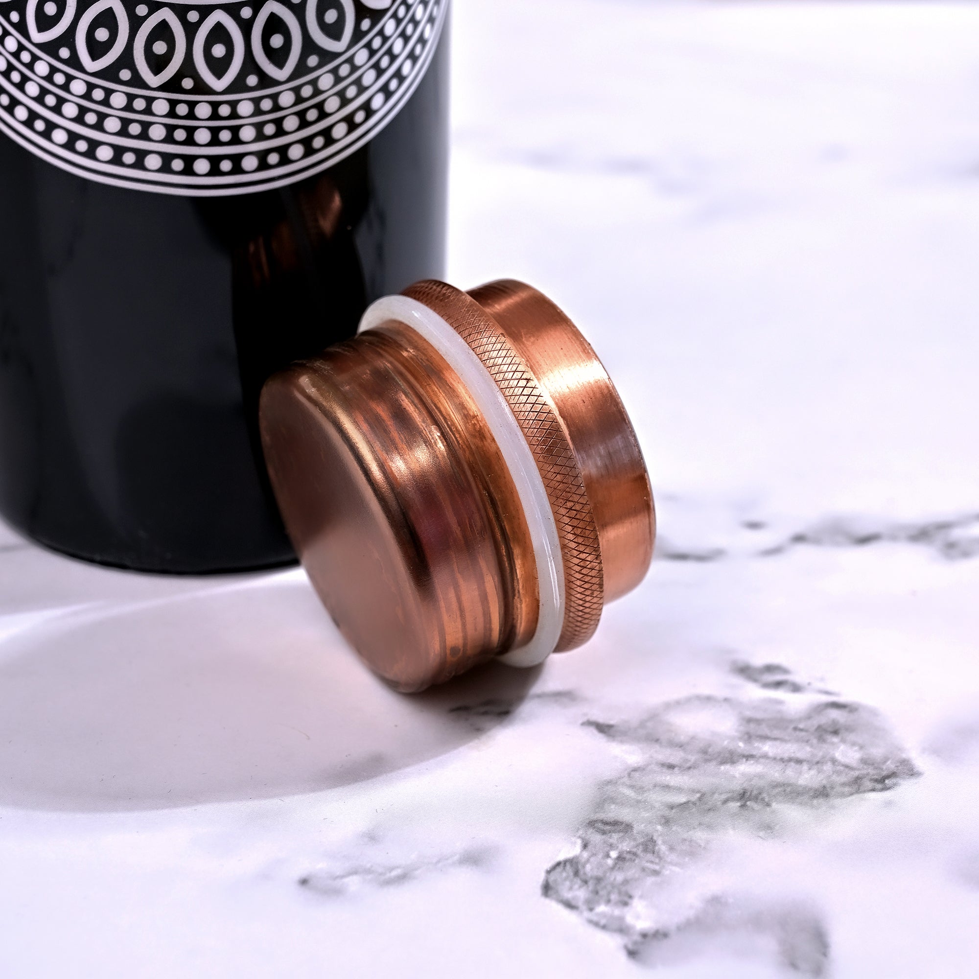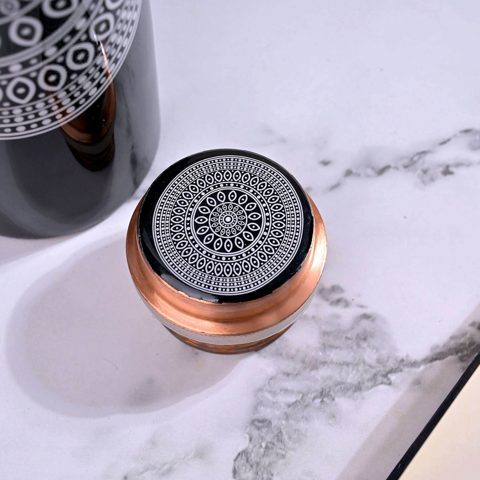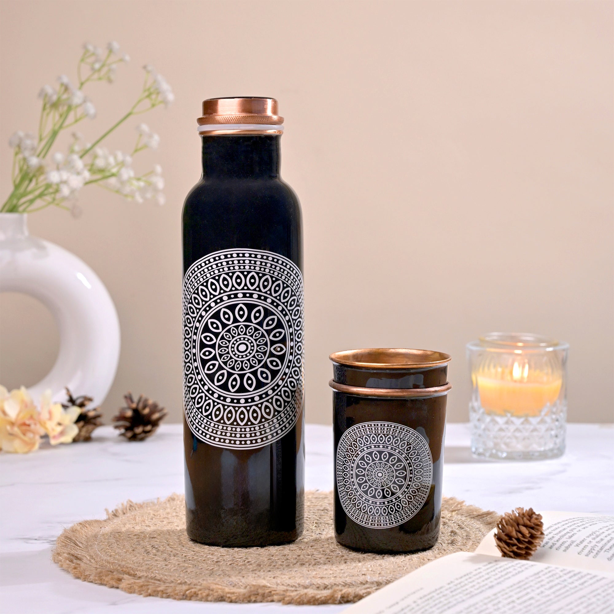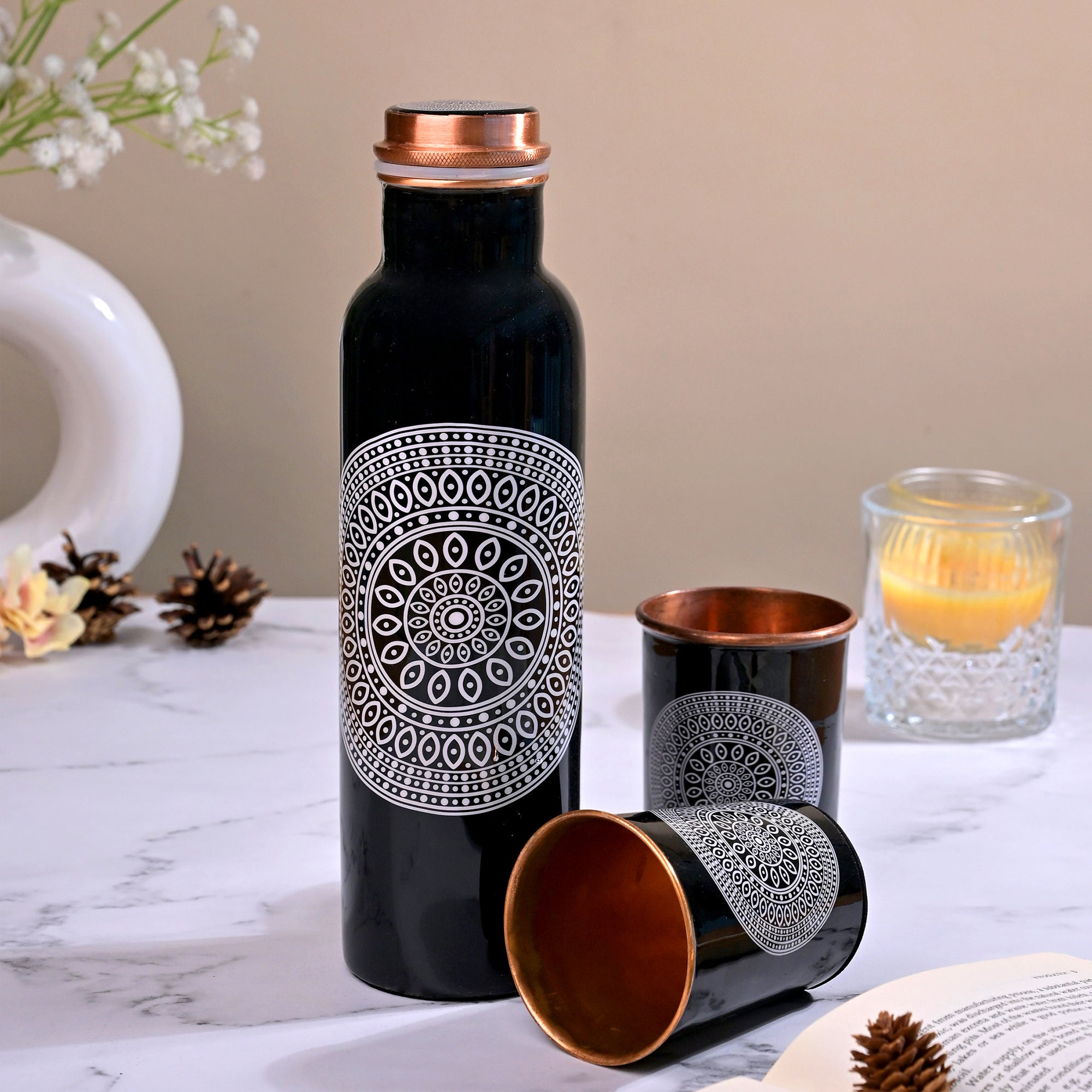 COD availableIndulge in elegant hydration with the Mandala Printed Copper Bottle With Glass Set. The intricate mandala design on the copper bottle and two matching glasses brings a touch of artistry to your daily routine. Crafted from high-quality copper, this set not only enhances the aesthetic of your space but also helps purify your drinking water.