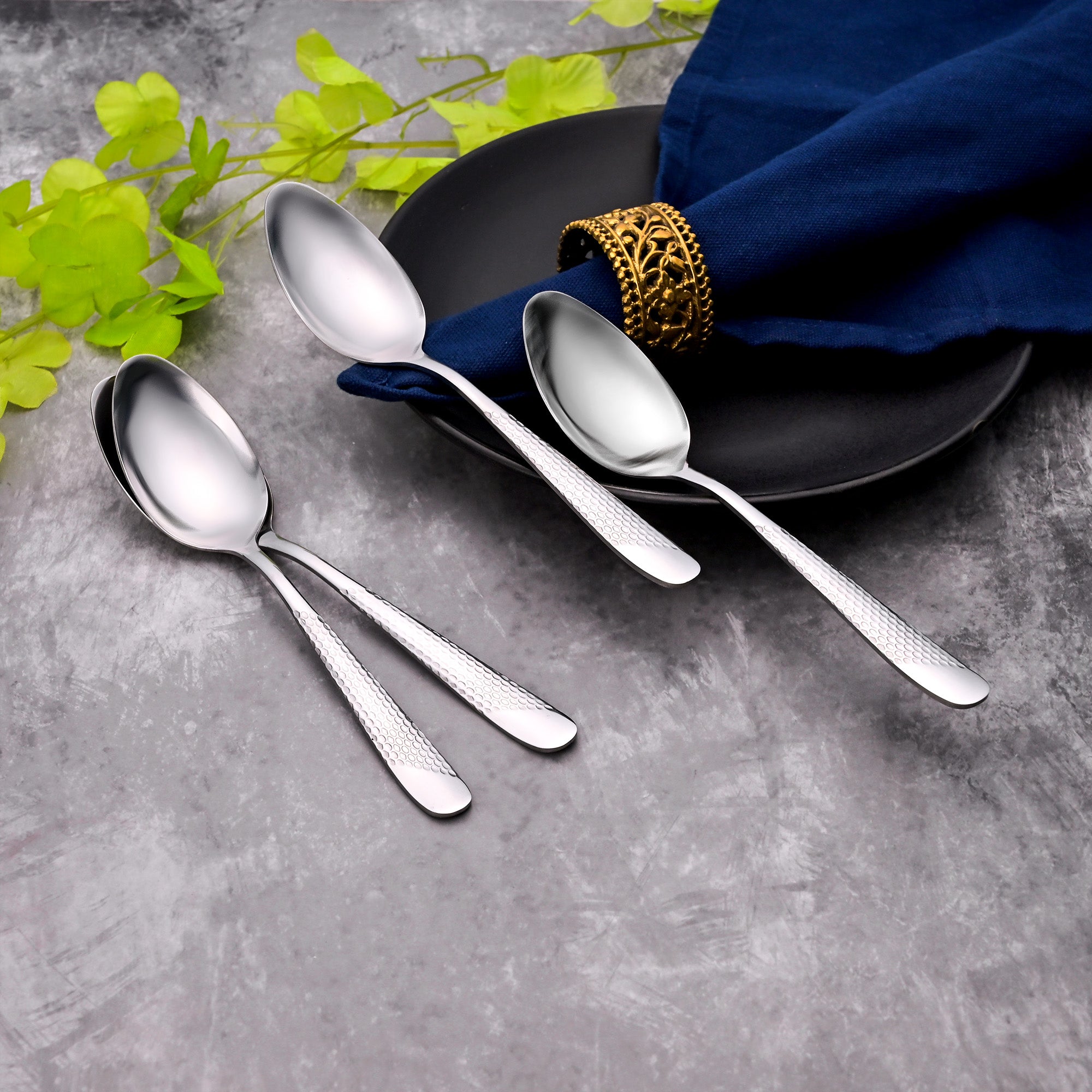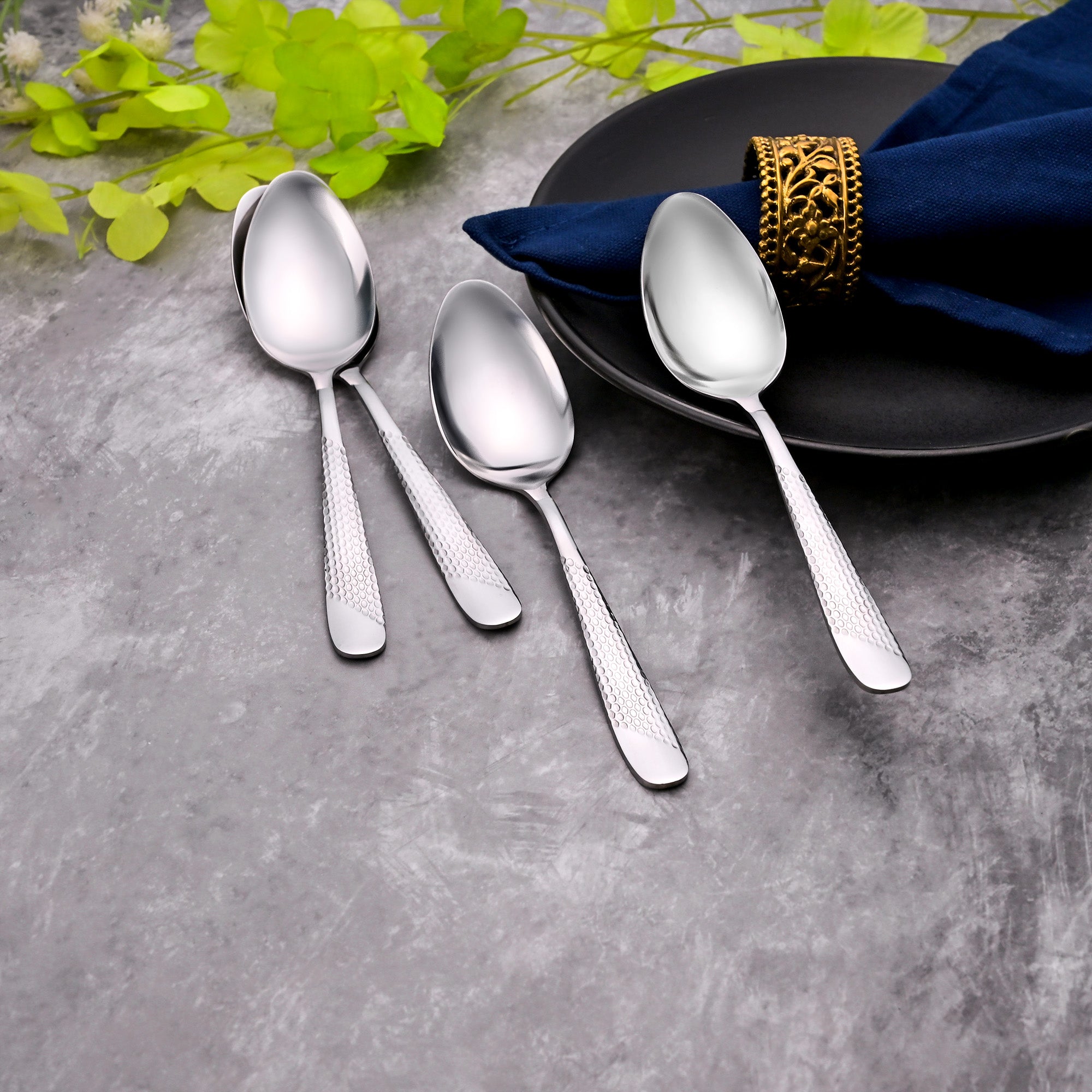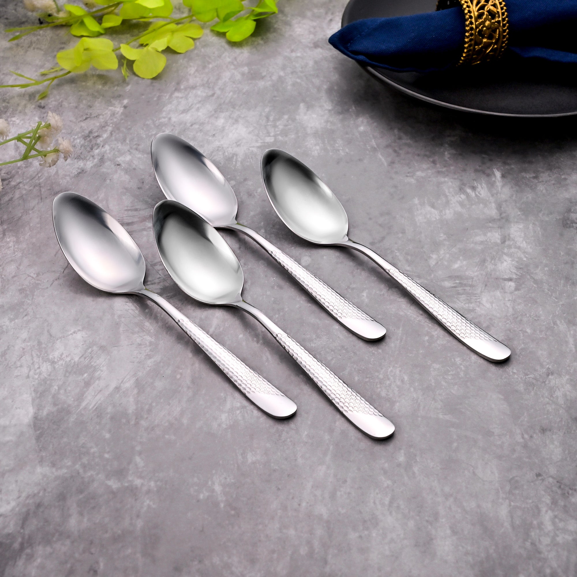 Crafted from high-quality stainless steel in a refined silver finish, the hammered texture on the handle adds a stylish and versatile charm. Ideal for stirring tea or coffee, scooping desserts, or enjoying small bites like yogurt or sauces.
