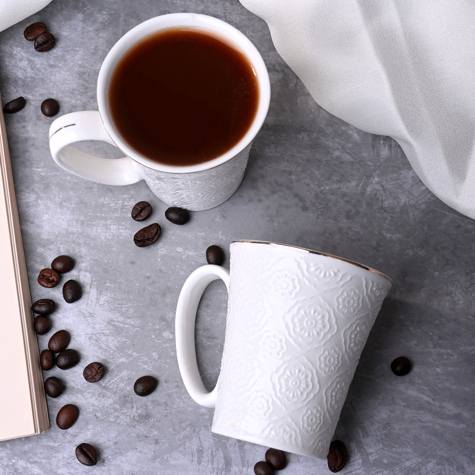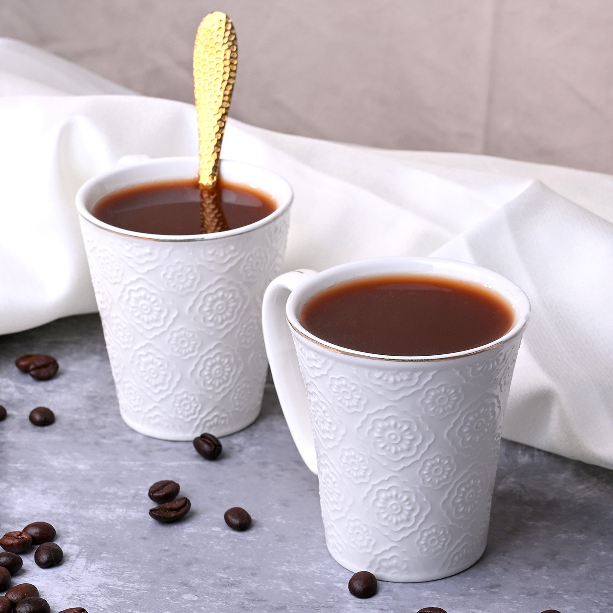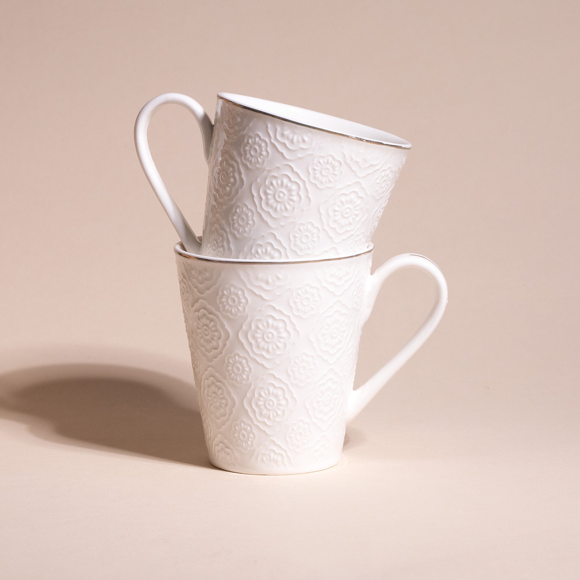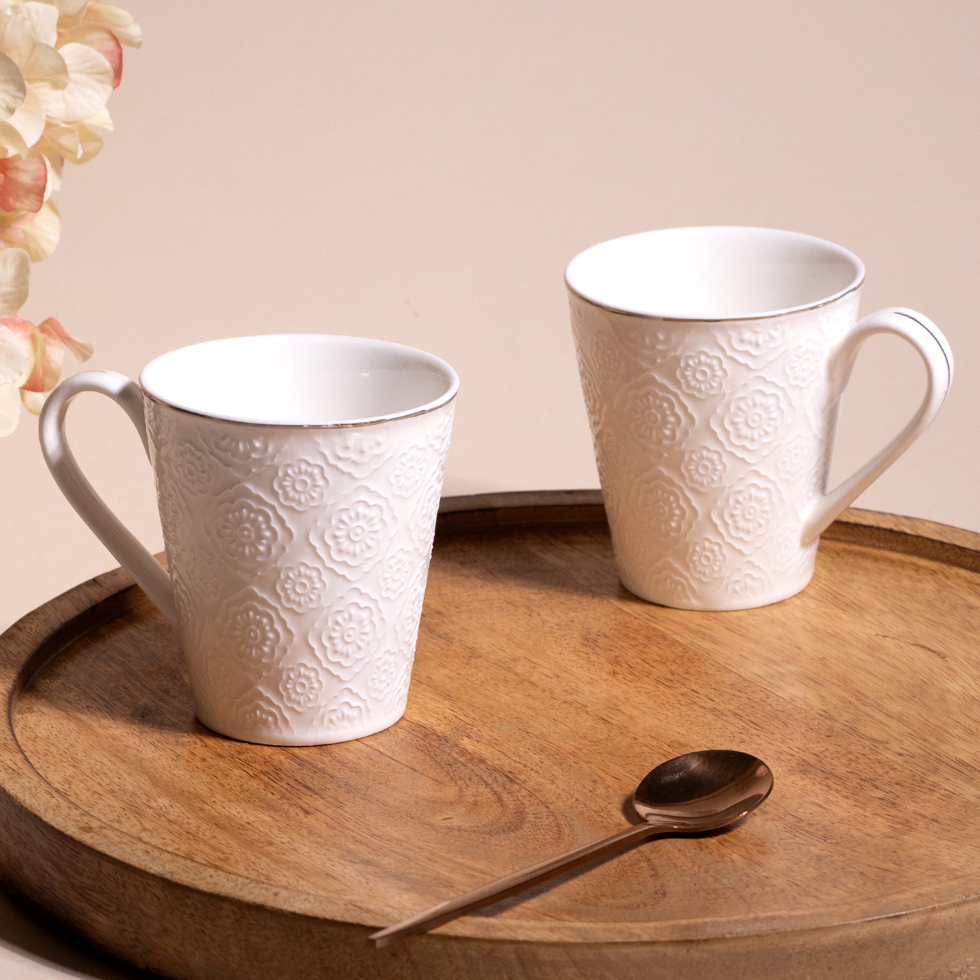 Minimalist White Floral Tea Cups (Set of 2)