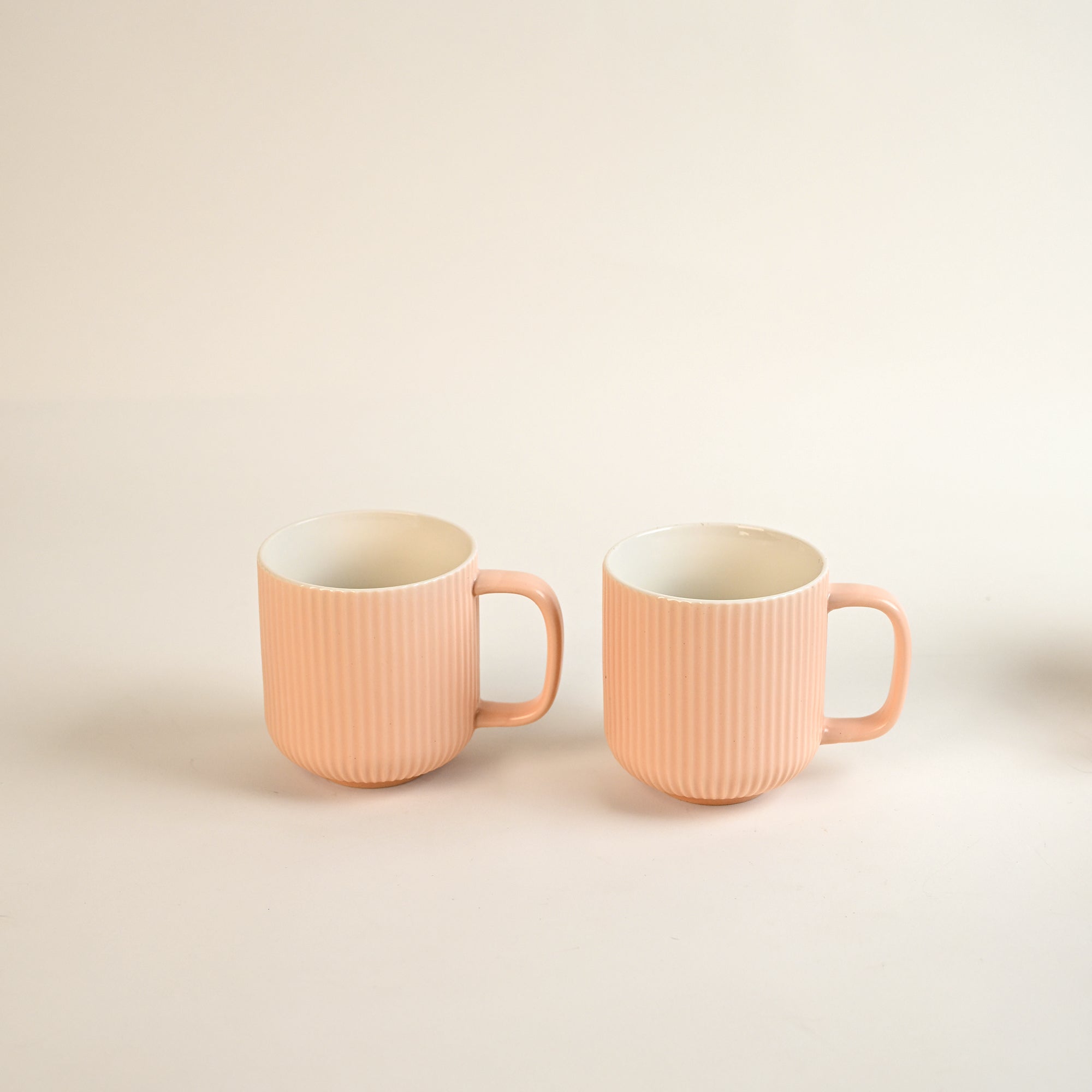 Misty Rose Ribbed New Bone China Coffee Mug (Set of 2)
